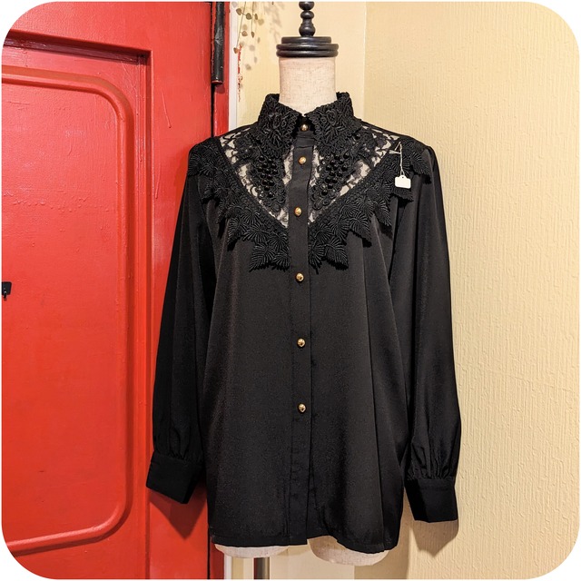 エレガントなブラックのカットワーク刺繍入りフレアスリーブブラウスです。 フロントにたっぷりとあしらわれた繊細なカットワーク刺繍と、動くたび美しく広がるフレアスリーブがとっても素敵。 パンツにもスカートにもコーディネートしやすいおすすめブラウスです。 〇素材 : ポリエステル100% 刺繍 レーヨン100% 〇サイズ表記 : 無し 〇実寸サイズ 肩幅 : 約36㎝ 身幅 : 約51㎝ 袖丈 : 約23㎝ 着丈 : 約64㎝ ※着用ボディサイズは9号=Mサイズでございます。 〇コンディション : 目立ったダメージもなく綺麗な状態ですが、なにぶん古着のため多少の使用感はございます。 〇ご利用可能な配送方法 ①レターパックライト ¥430 ( ※単品でのご注文 ) ②ゆうパック60サイズ ( ※単品でのご注文 ) ③おまとめ便B ¥430 ( ※複数点でのご注文 ) ※古着商品という性質上、到着後の色 · イメージが違うなどのお客様都合の返品は一切お断りしております。 サイズやコンディションをよくご確認の上お買い求めください。 また、ご使用の端末や画面設定、ご自宅の照明等により実際のお色味と多少異なって見える場合がございます。どうかご了承くださいませ。 ご不明な点は、お電話やメールにてお気軽にお問い合わせくださいませ♪
