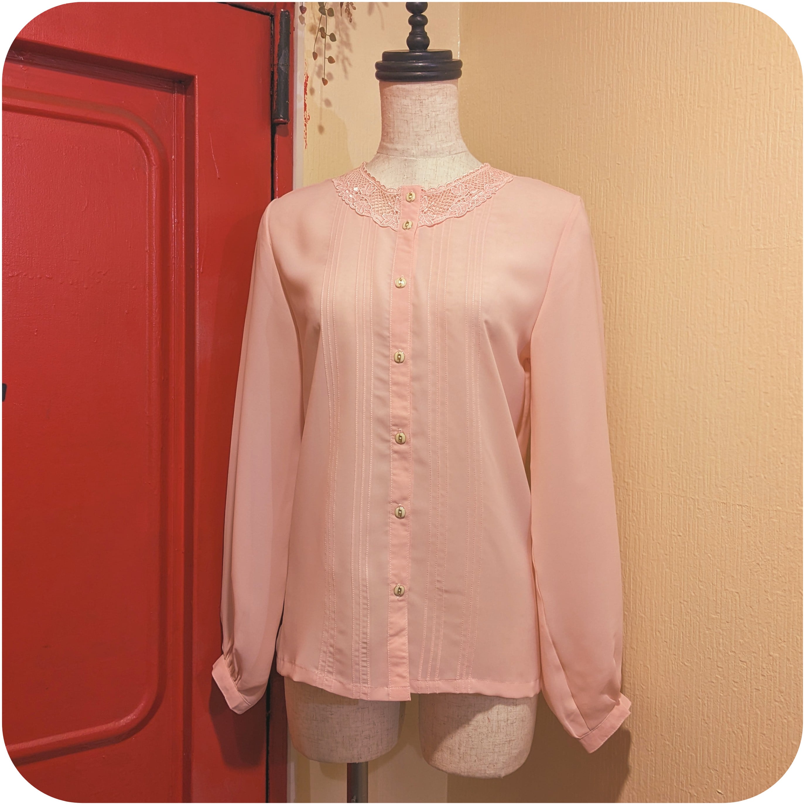 クラシカルなシュガーピンクのフルーツモチーフレースブラウス