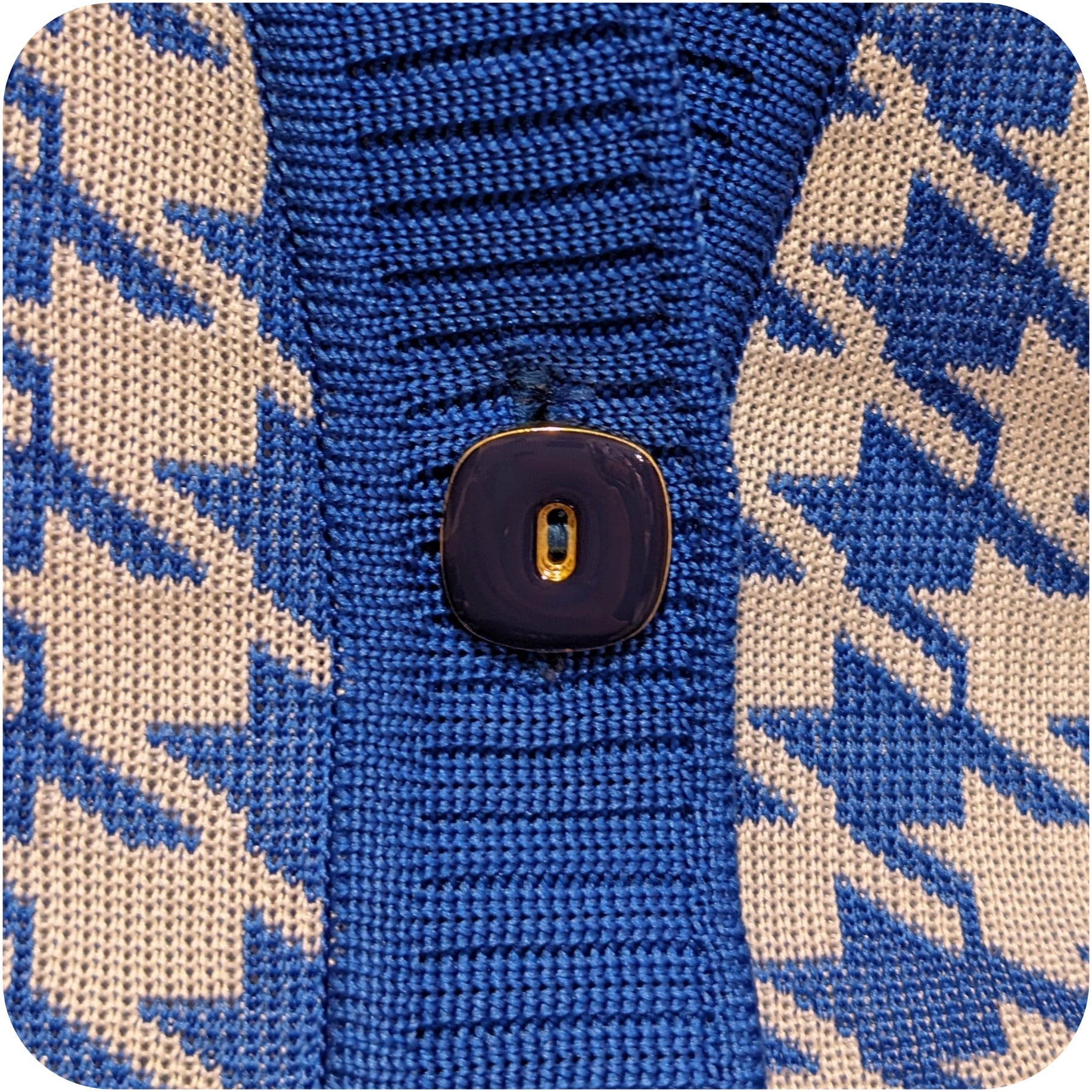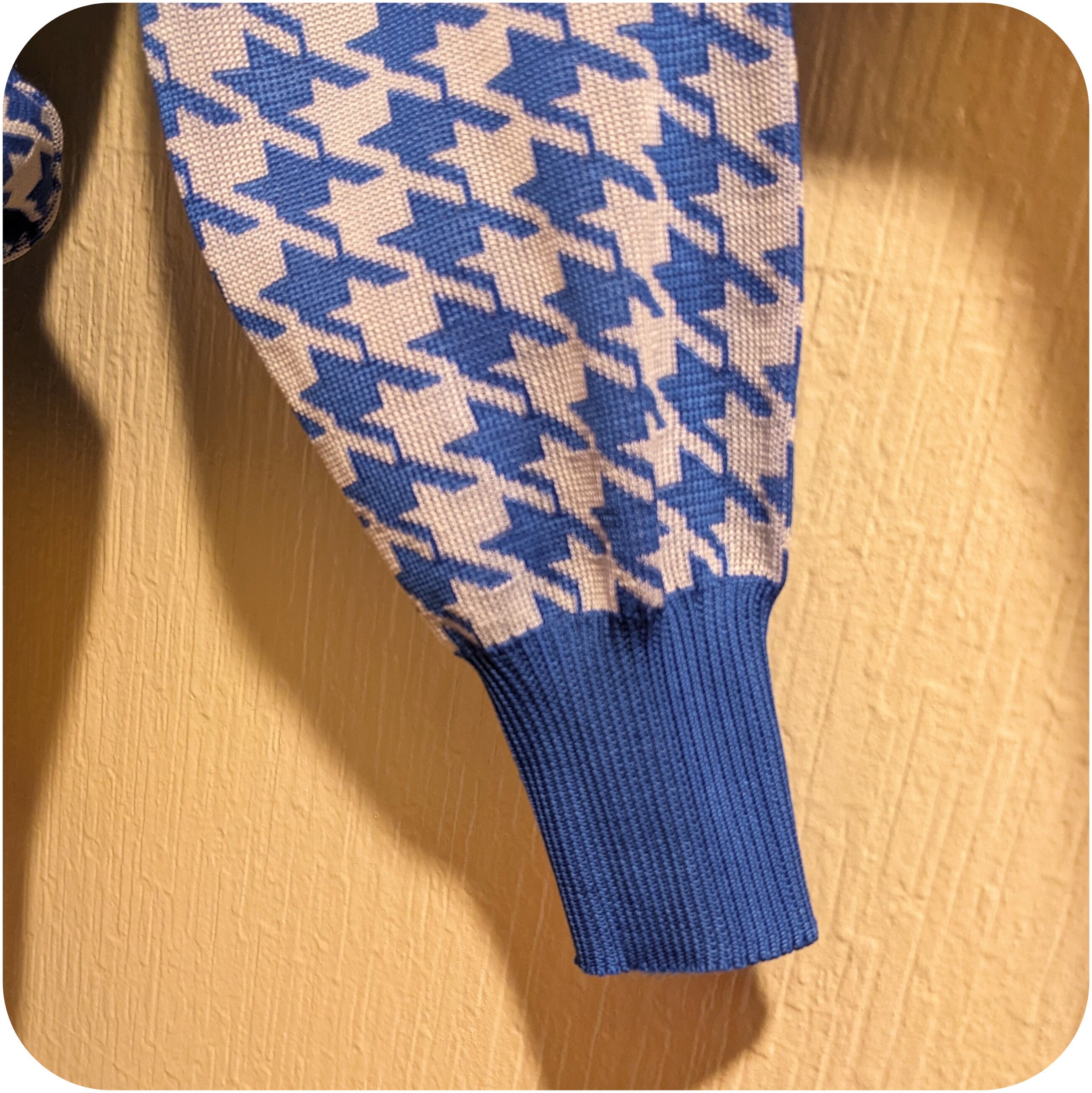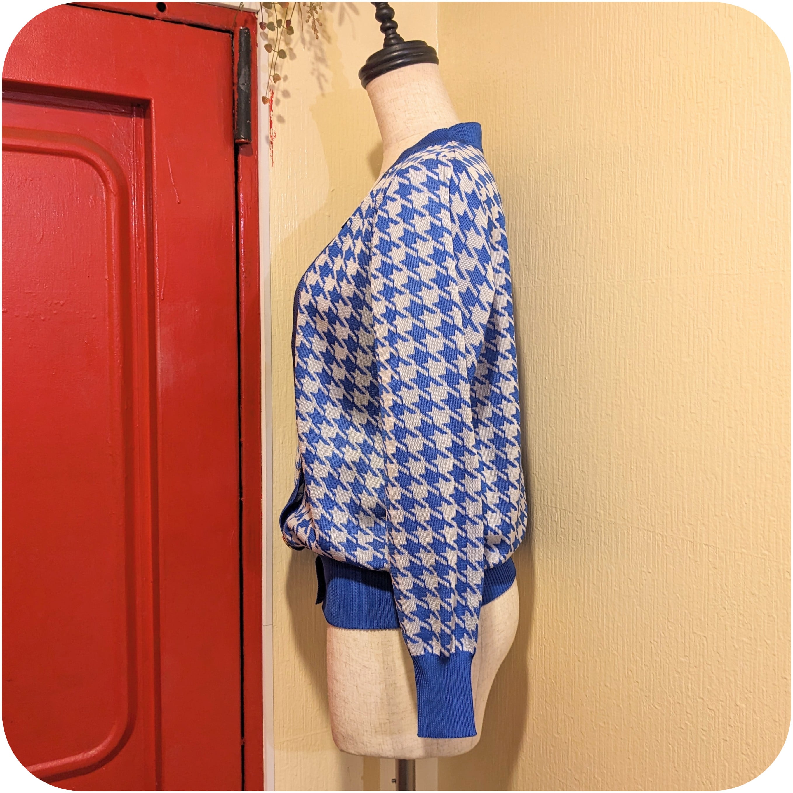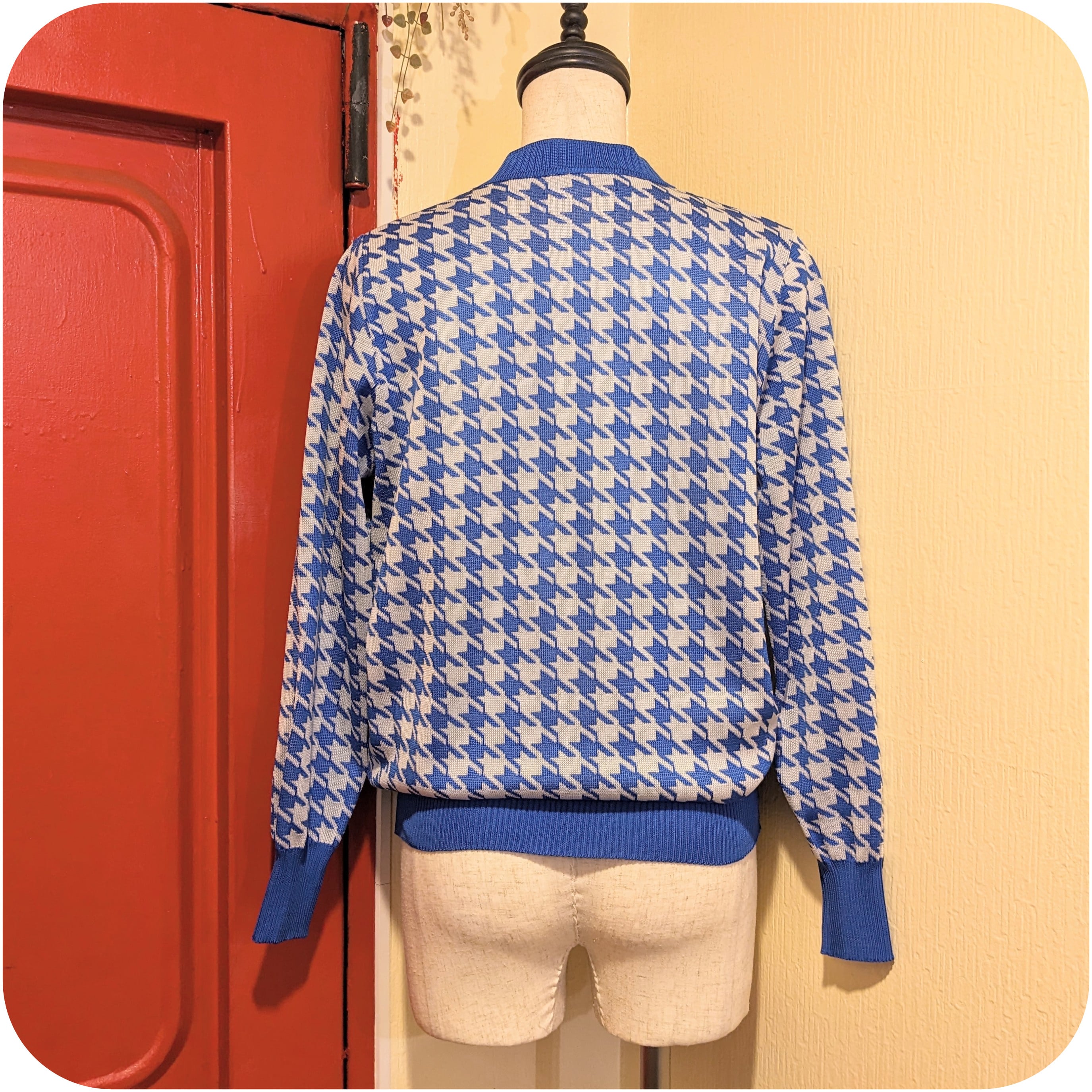 レトロなサワーブルー×ホワイトの千鳥格子柄カーディガン