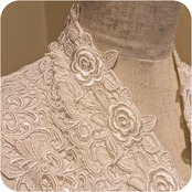 フロントにたっぷりとあしらわれたゴージャスなフラワーレースと、ユニークなバルーンスリーブデザインがとっても素敵。