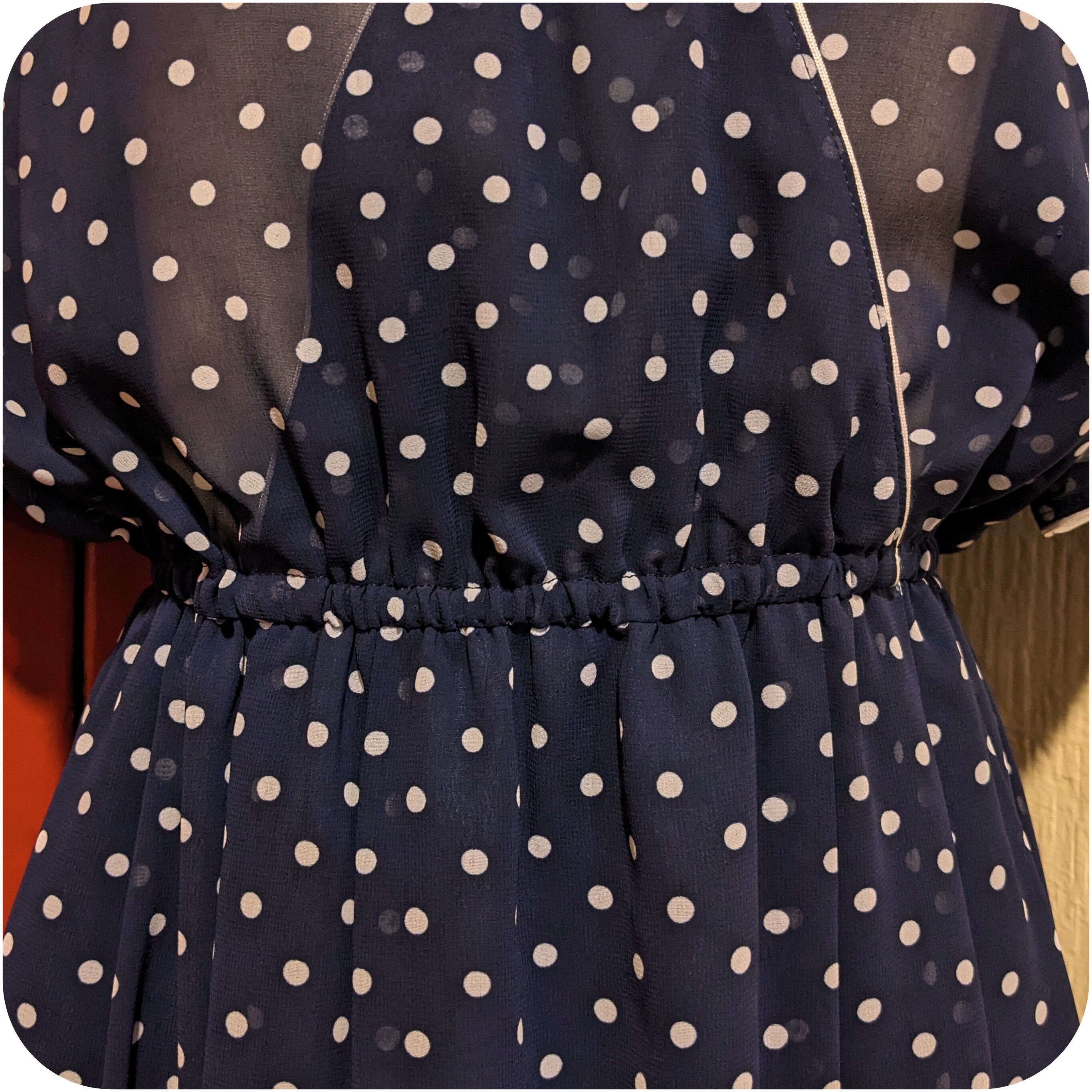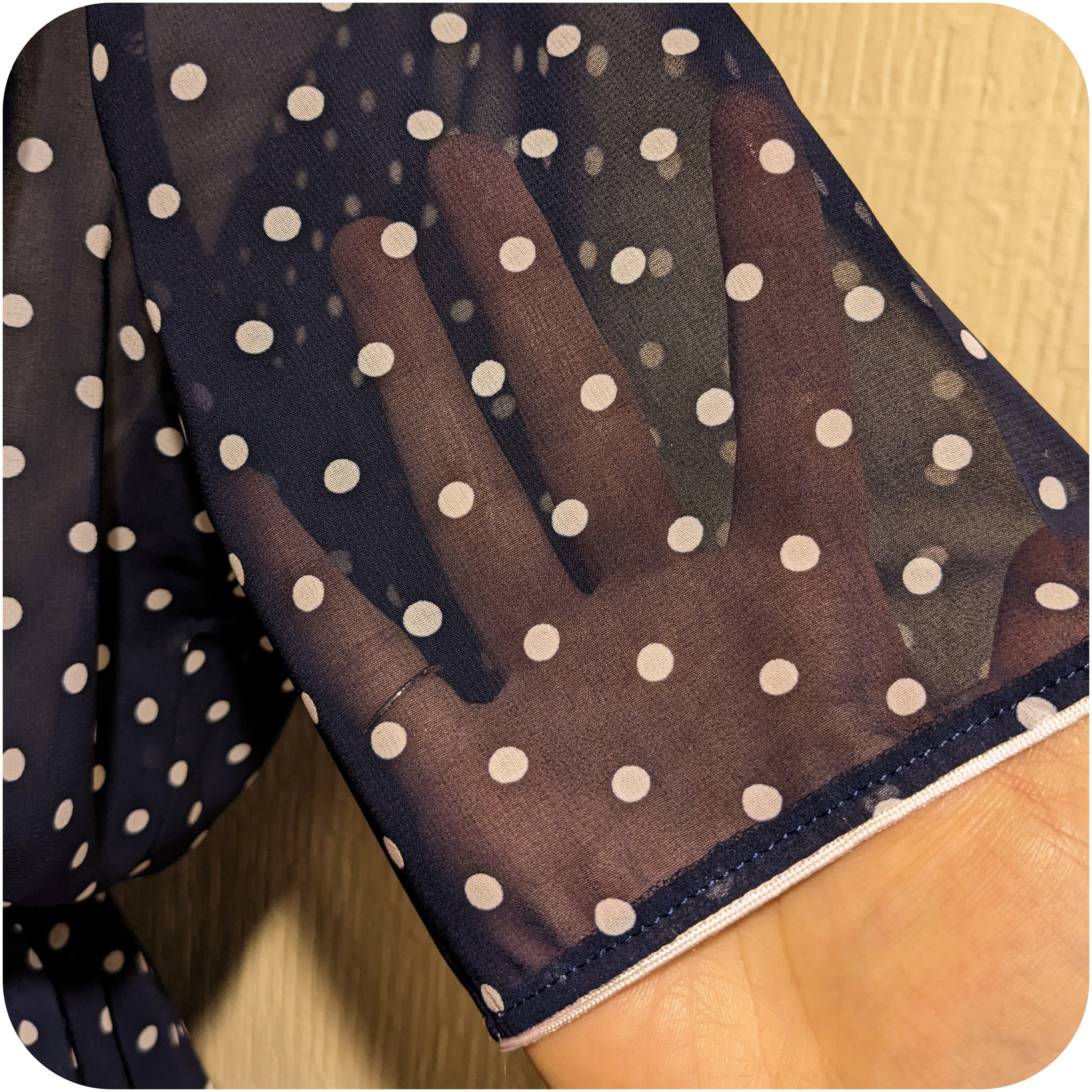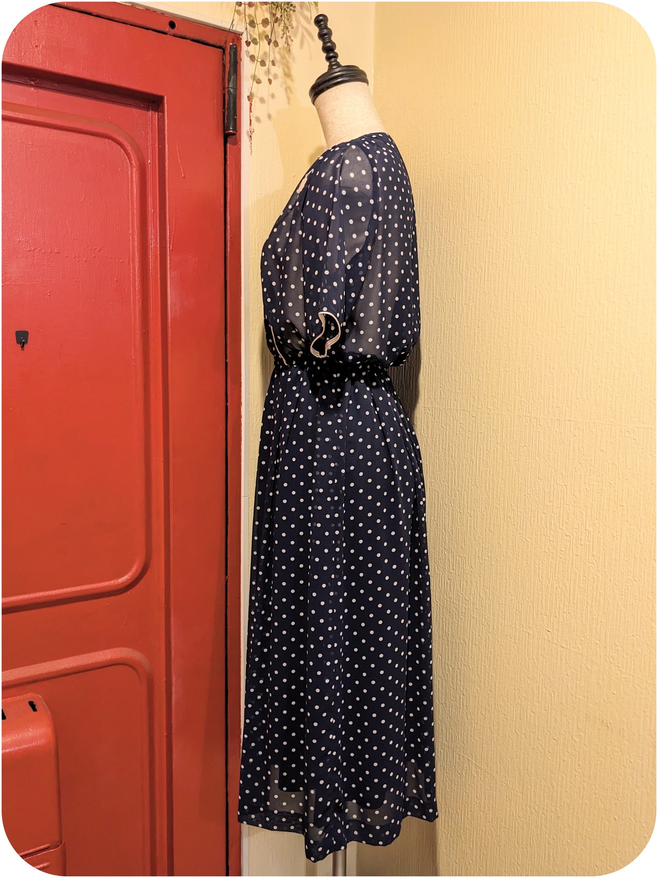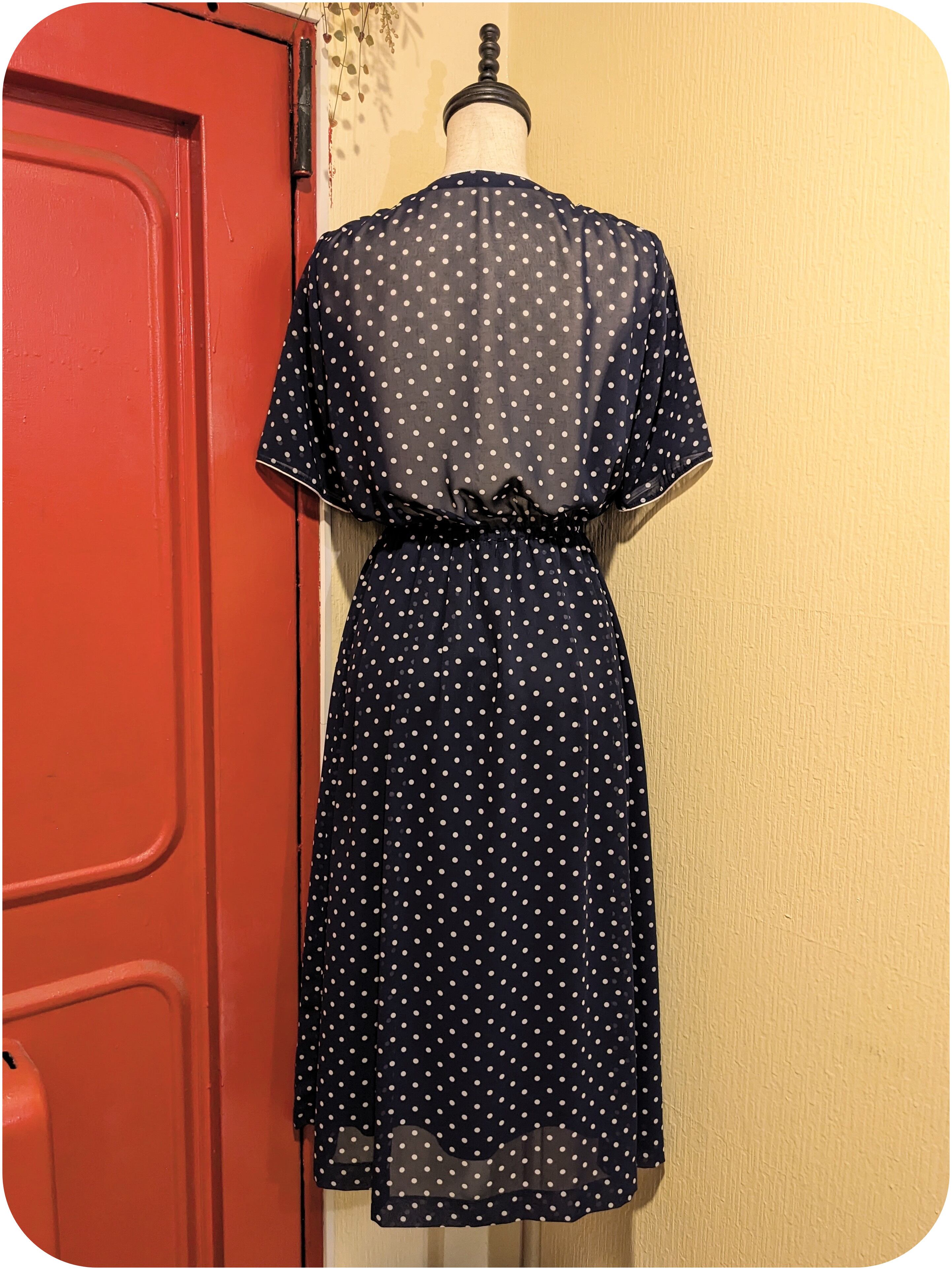 クラシカルなネイビー×ホワイトのドット柄カシュクールワンピース