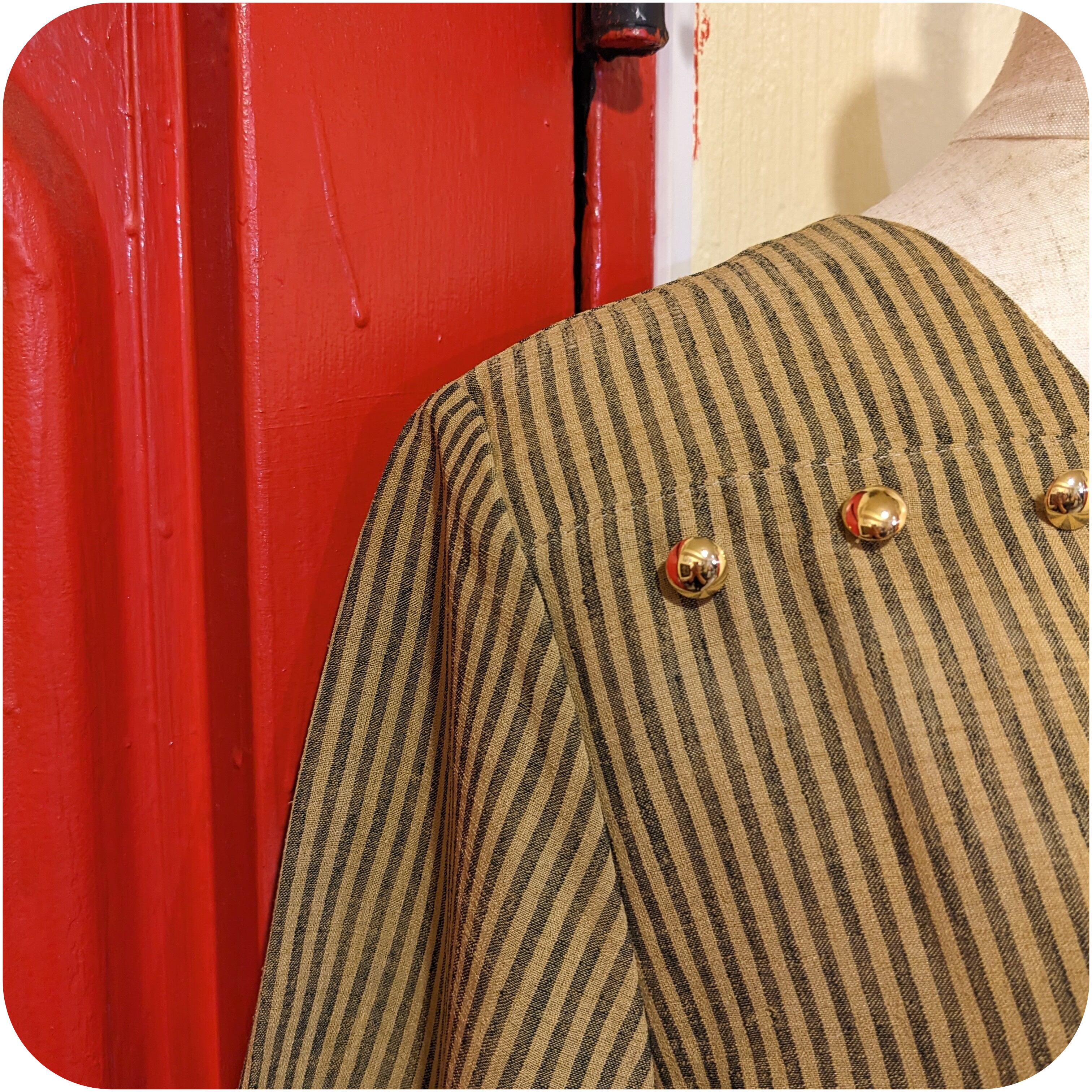 大人っぽい落ち着いた色合いのストライプ柄と、ふんわりとしたほどよいサイズ感のシルエットがとっても素敵。