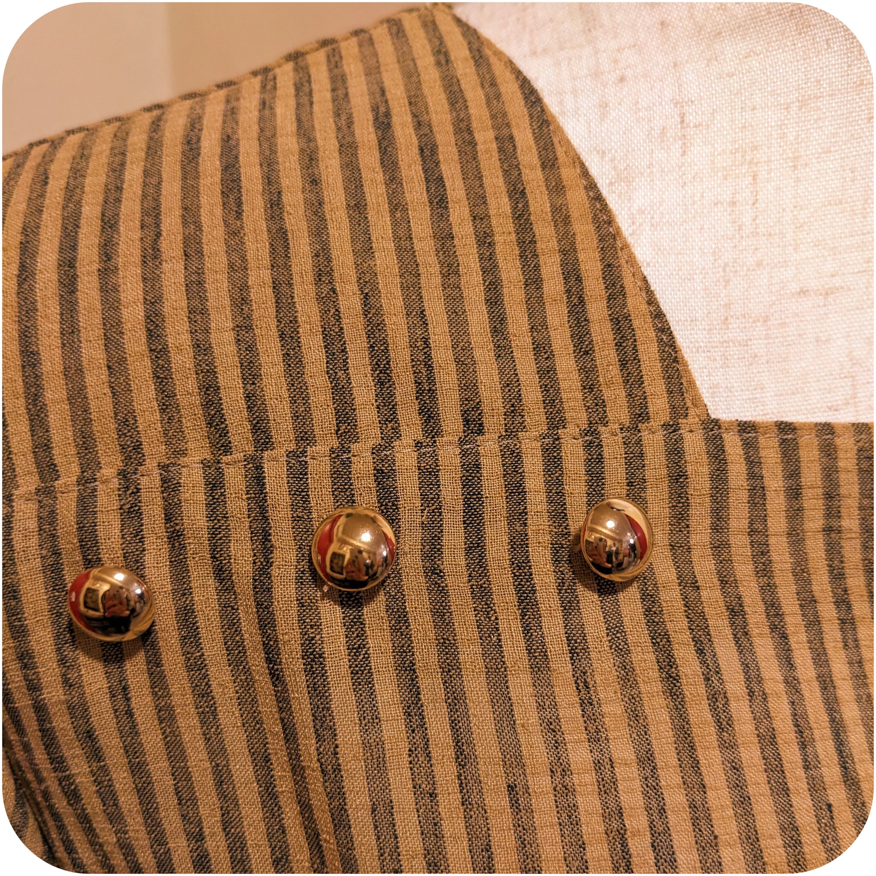 シックなマスタード×ダークグレーのストライプ柄ワンピース