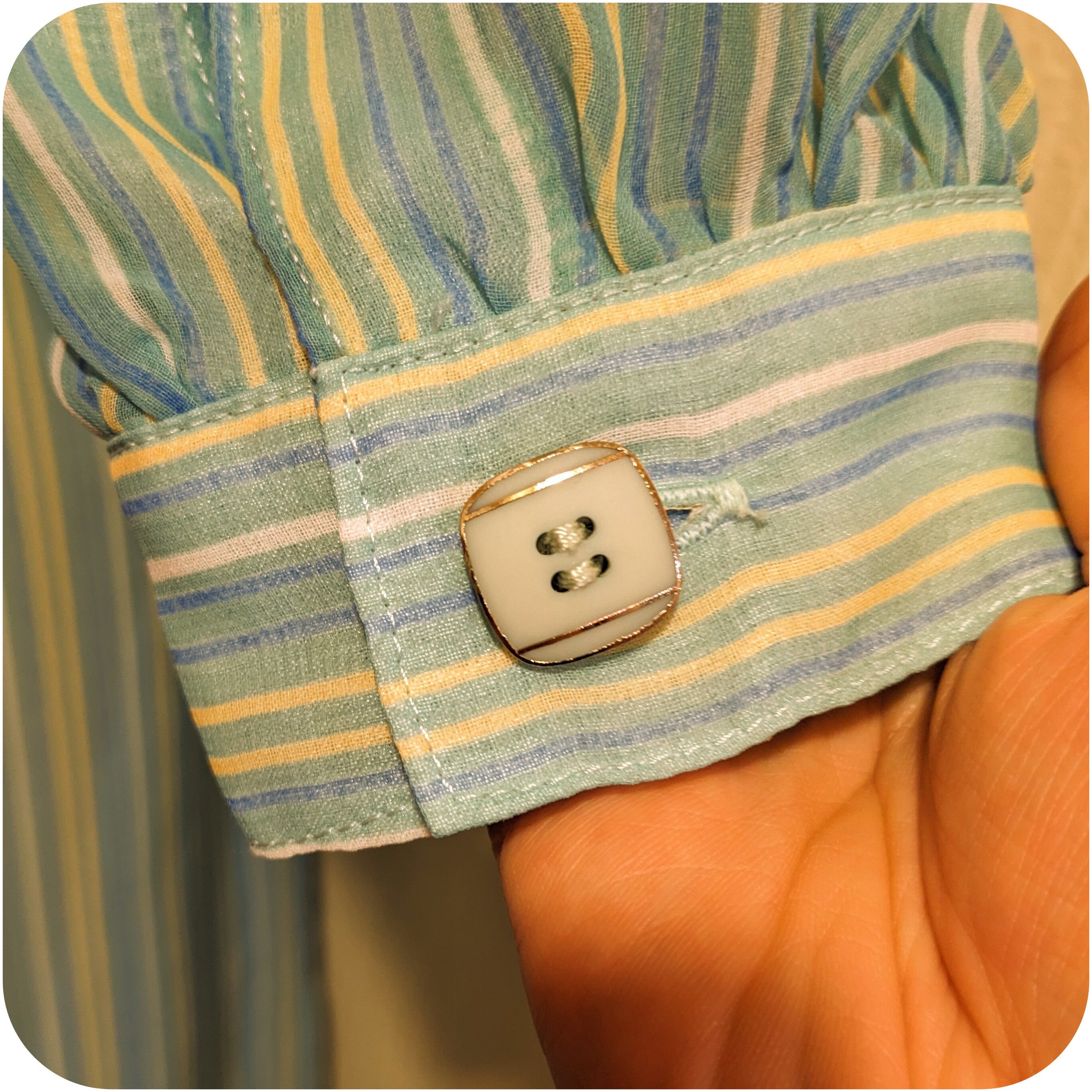 古着ならではのキュートな色合いのストライプ柄と、ふんわりとしたほどよいサイズ感のシルエットがとっても素敵。