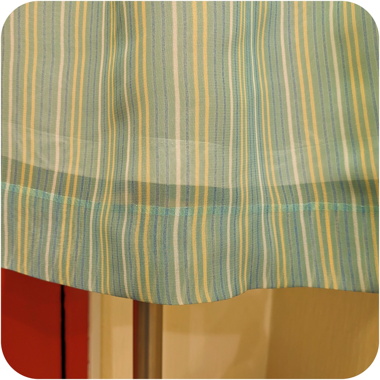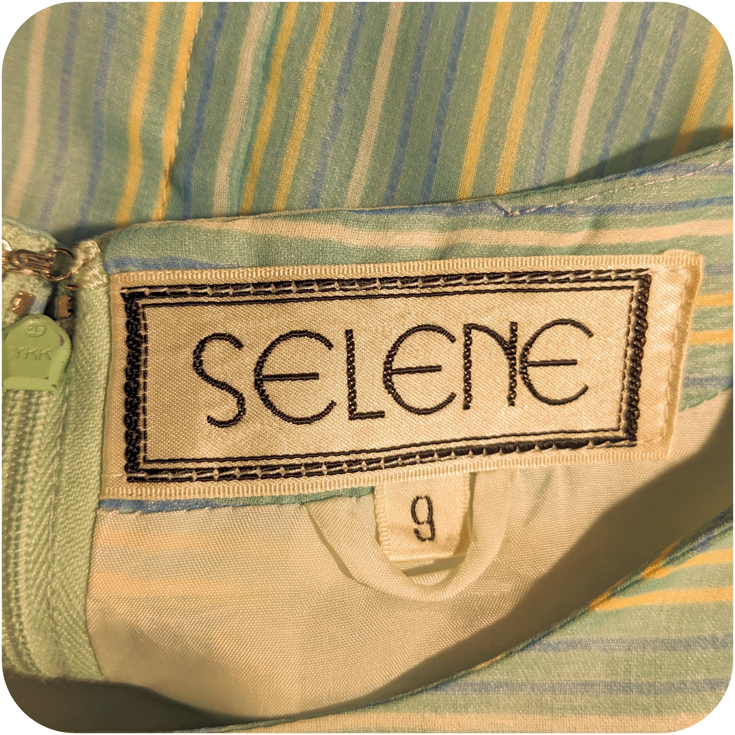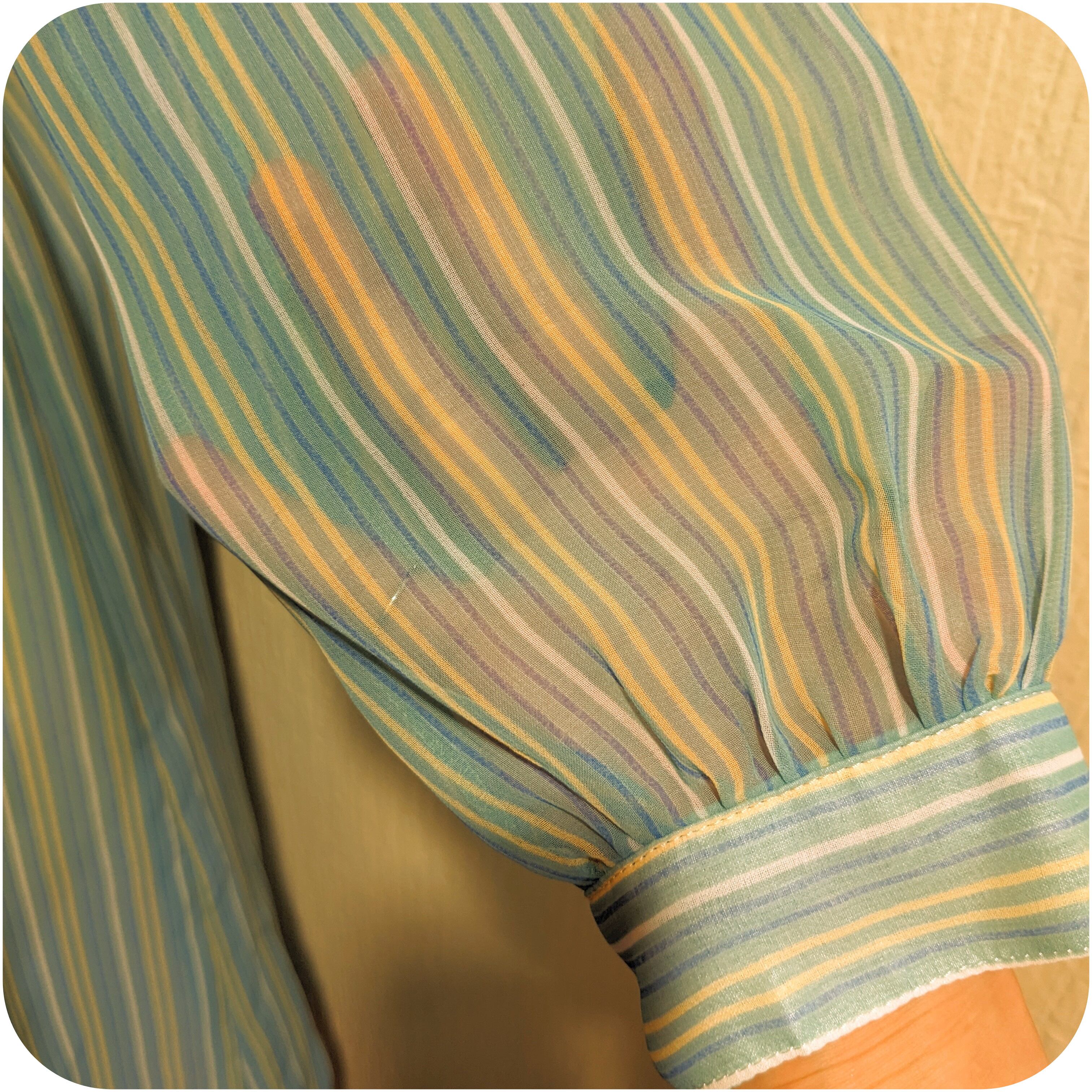 レトロなアイスグリーン×イエロー×ホワイトのストライプ柄シアーワンピース