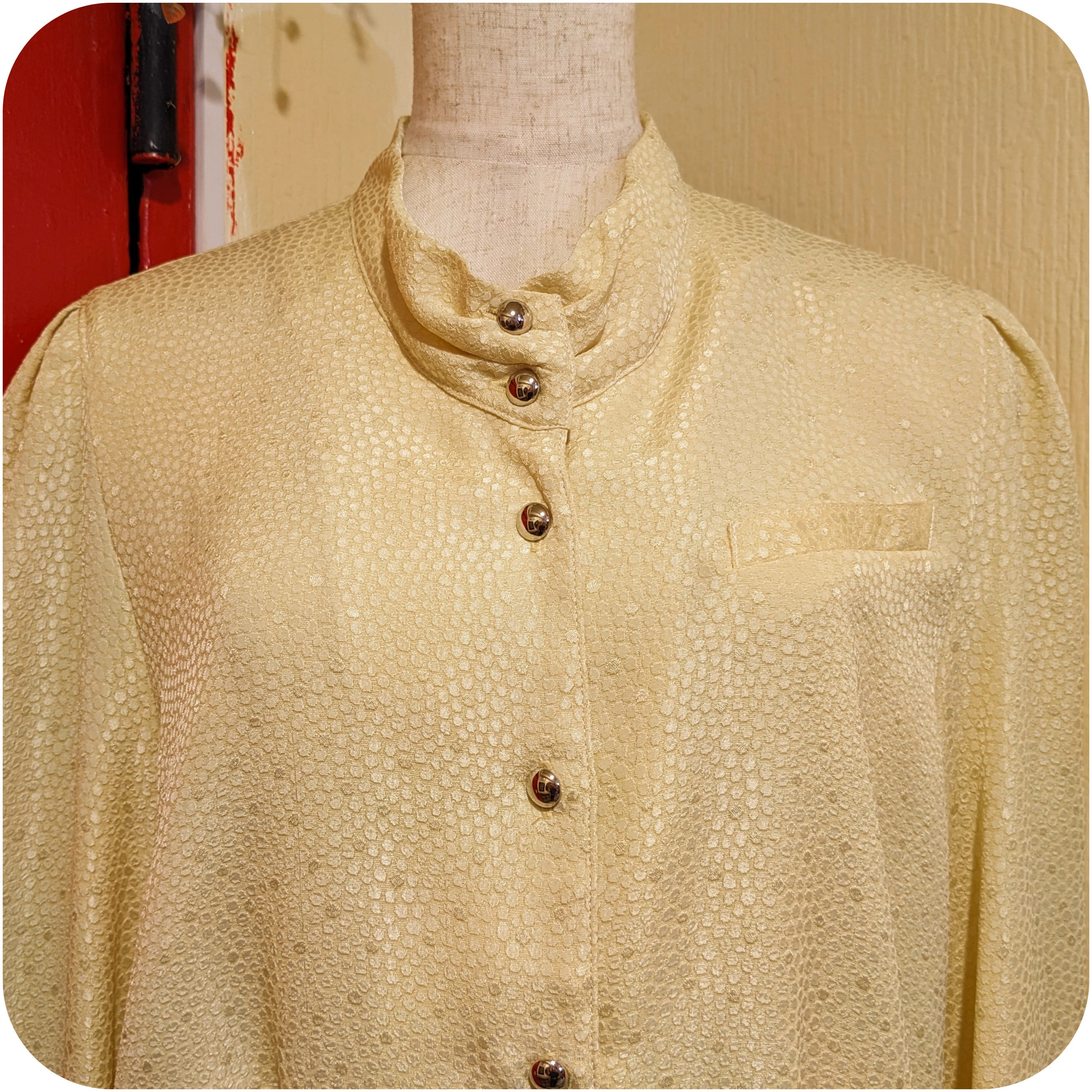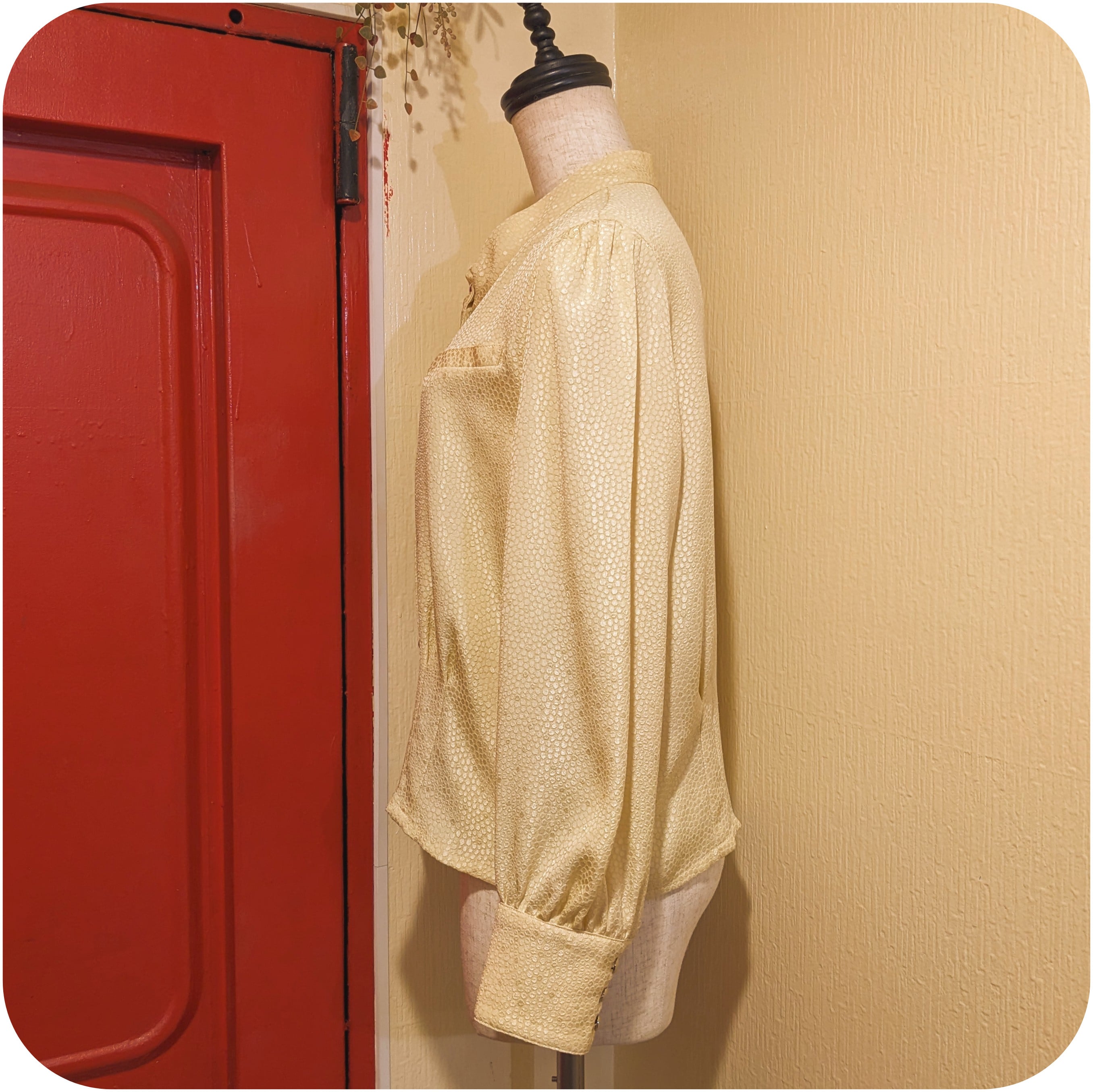 モードなクリームイエローのタックデザインブラウスです。