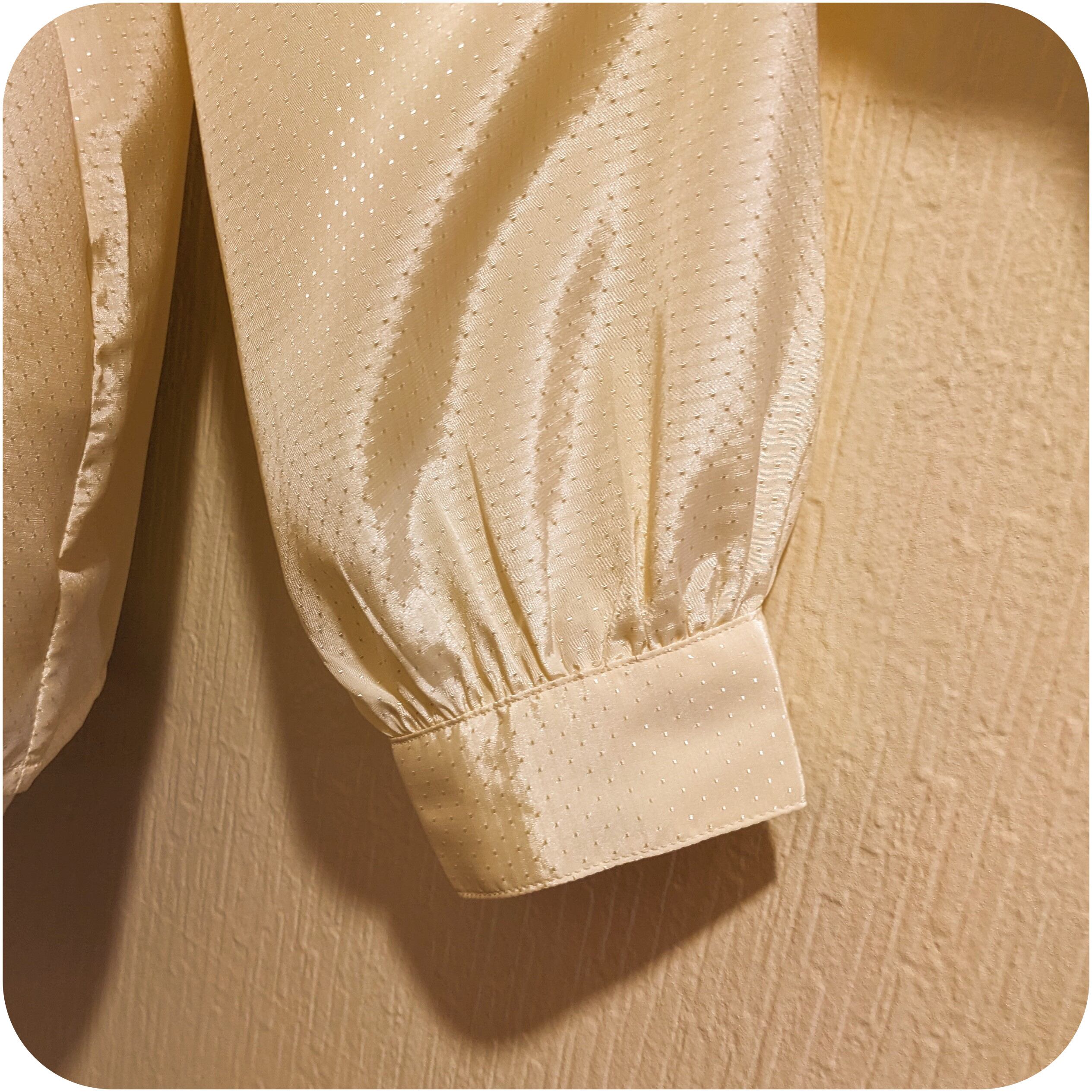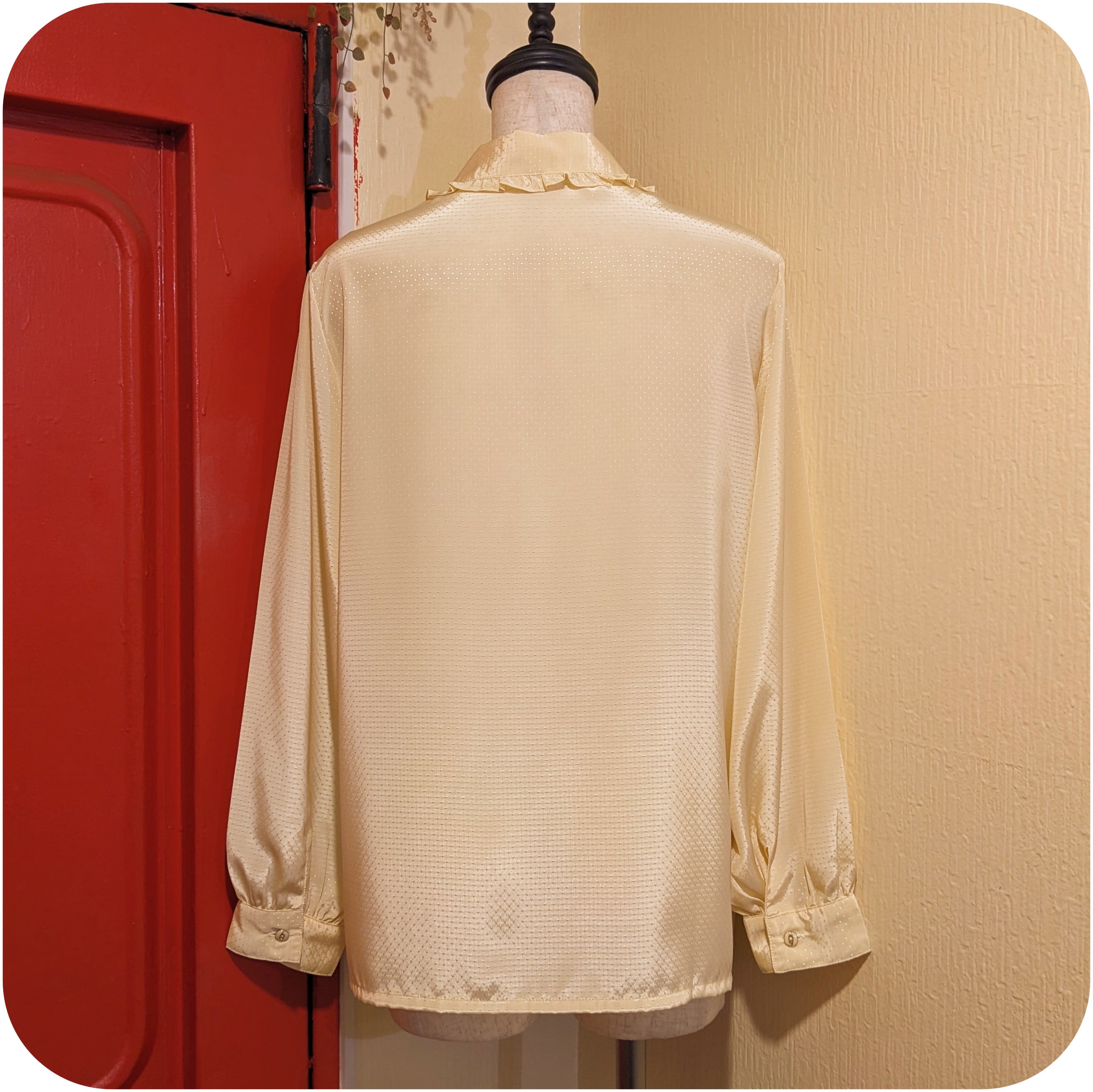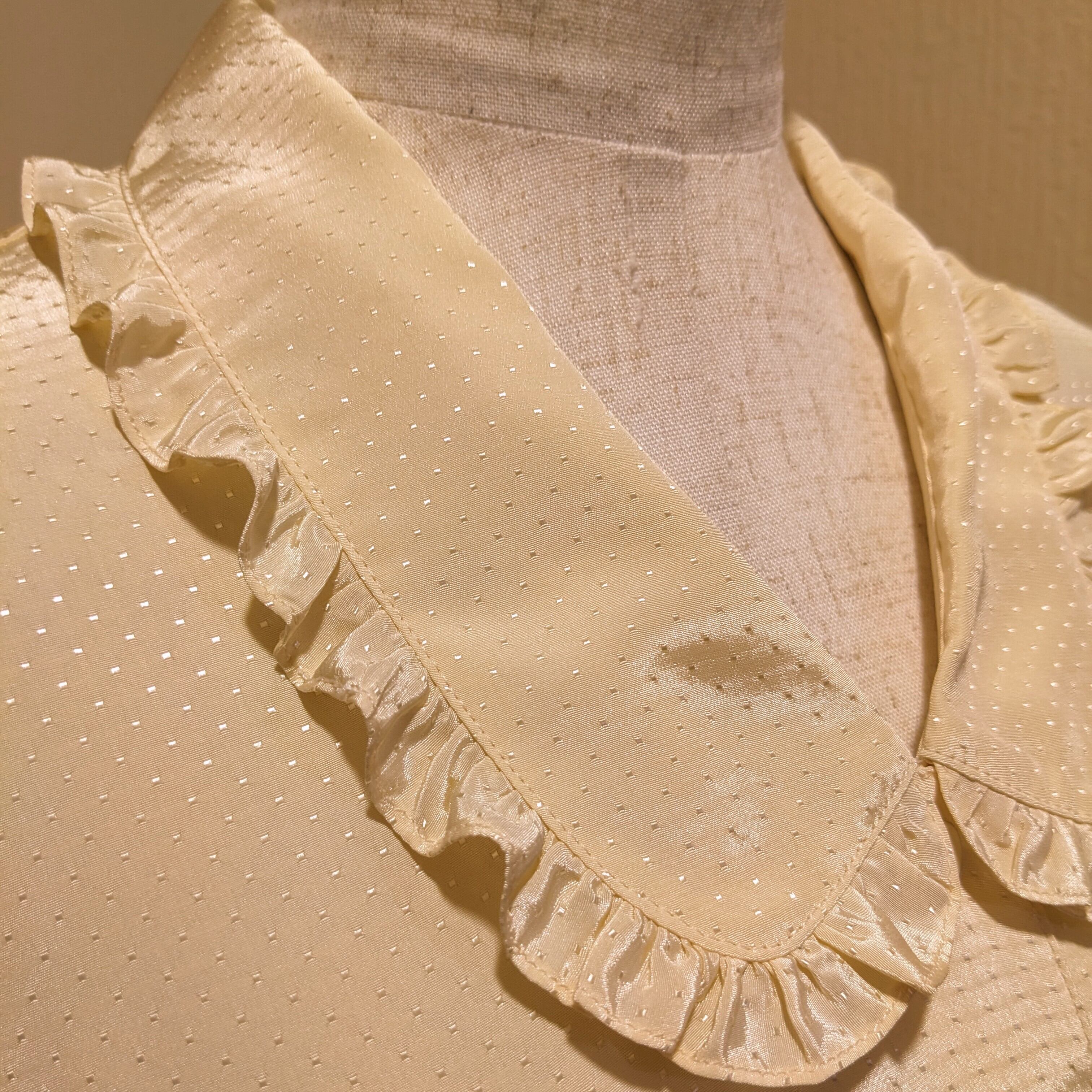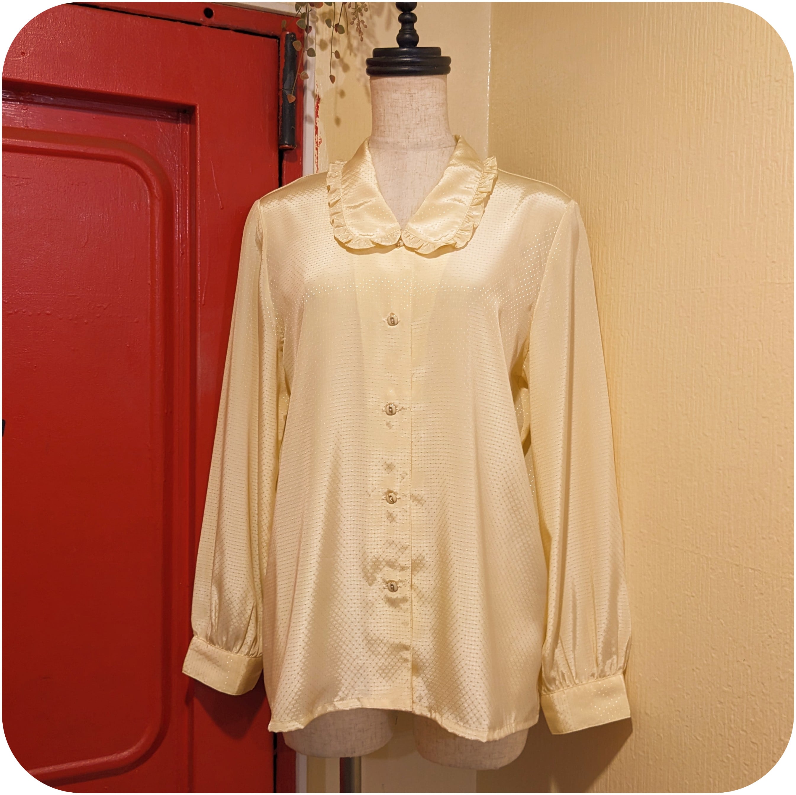 クラシカルなクリームイエローのフリルカラーデザインブラウスです。