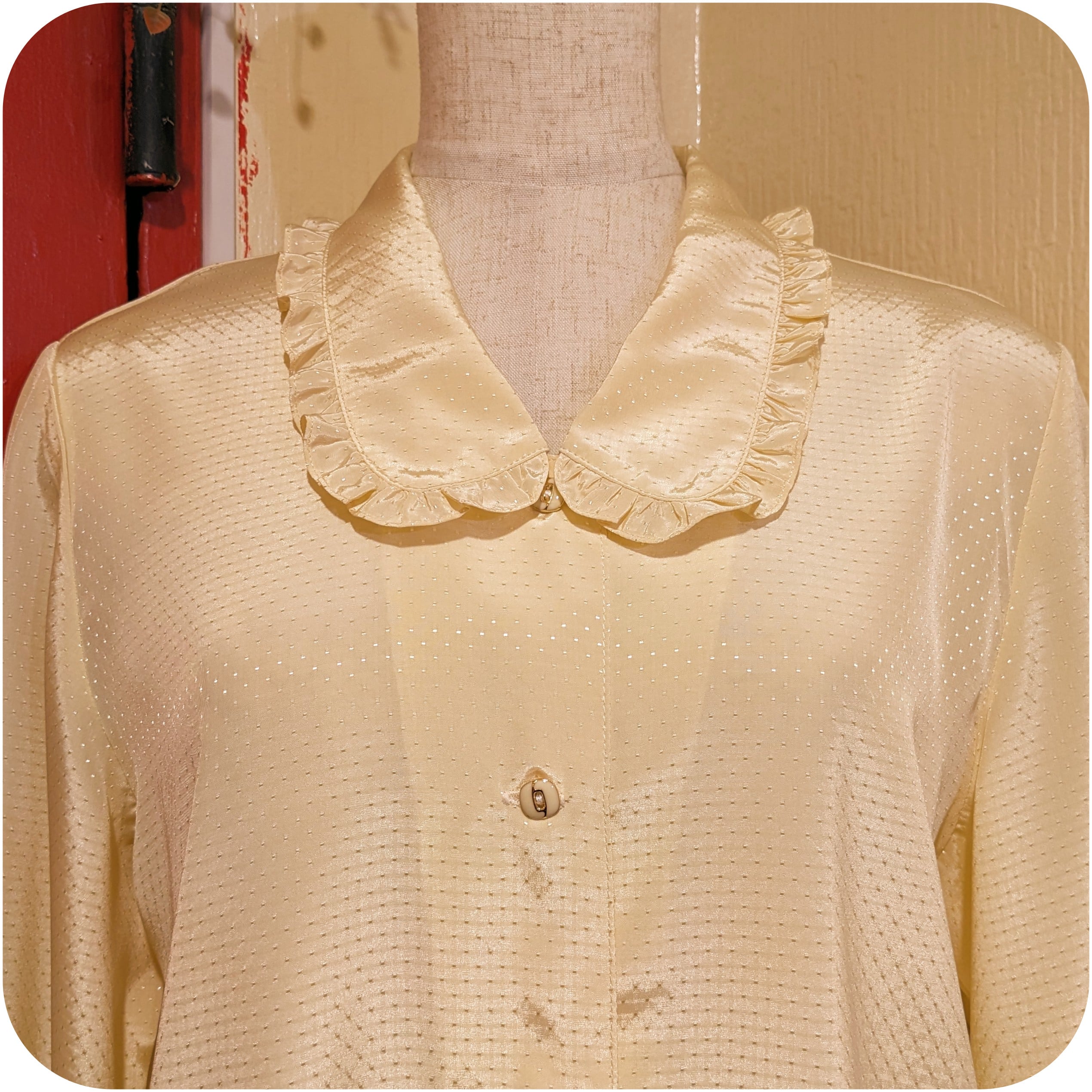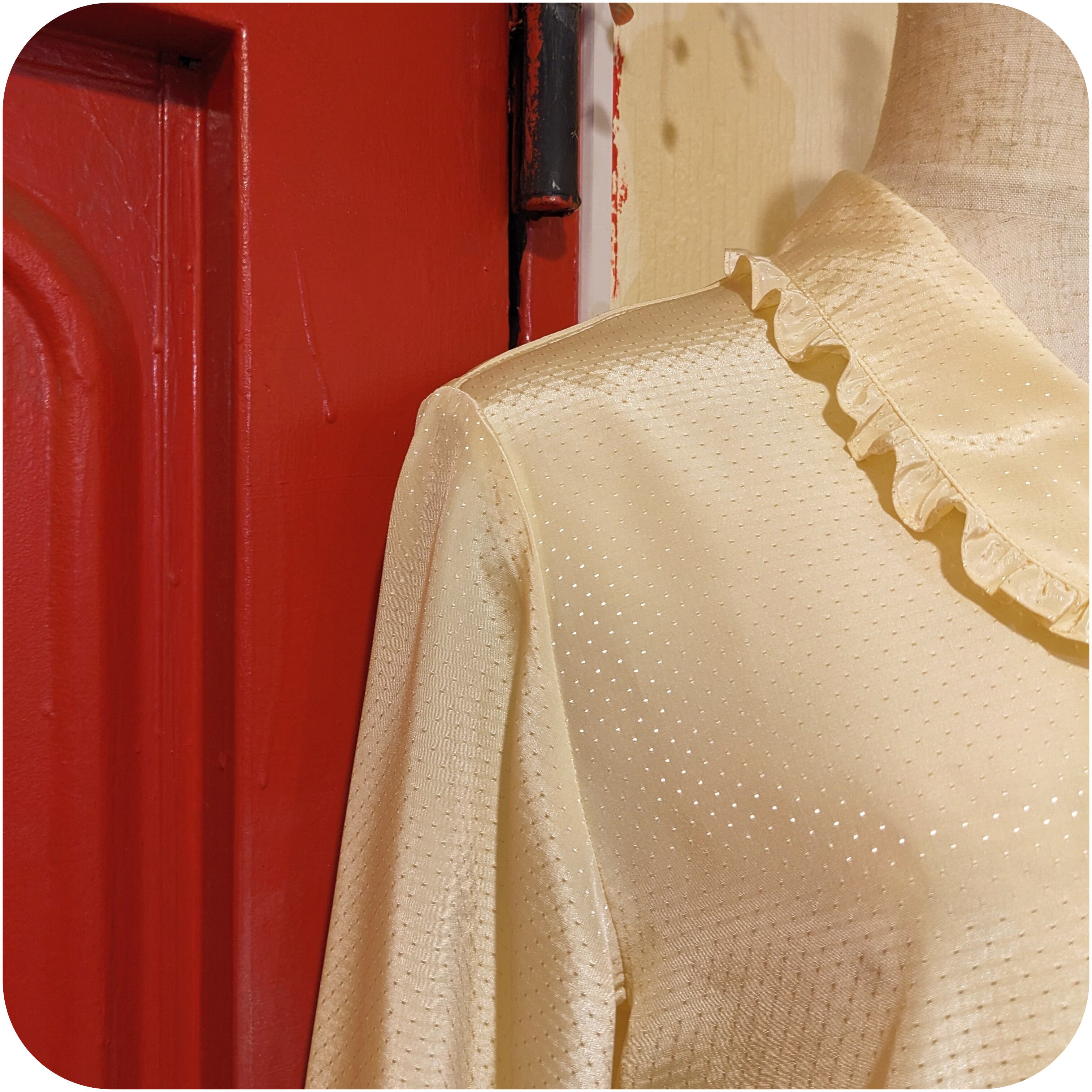 クラシカルなクリームイエローのフリルカラーデザインブラウス