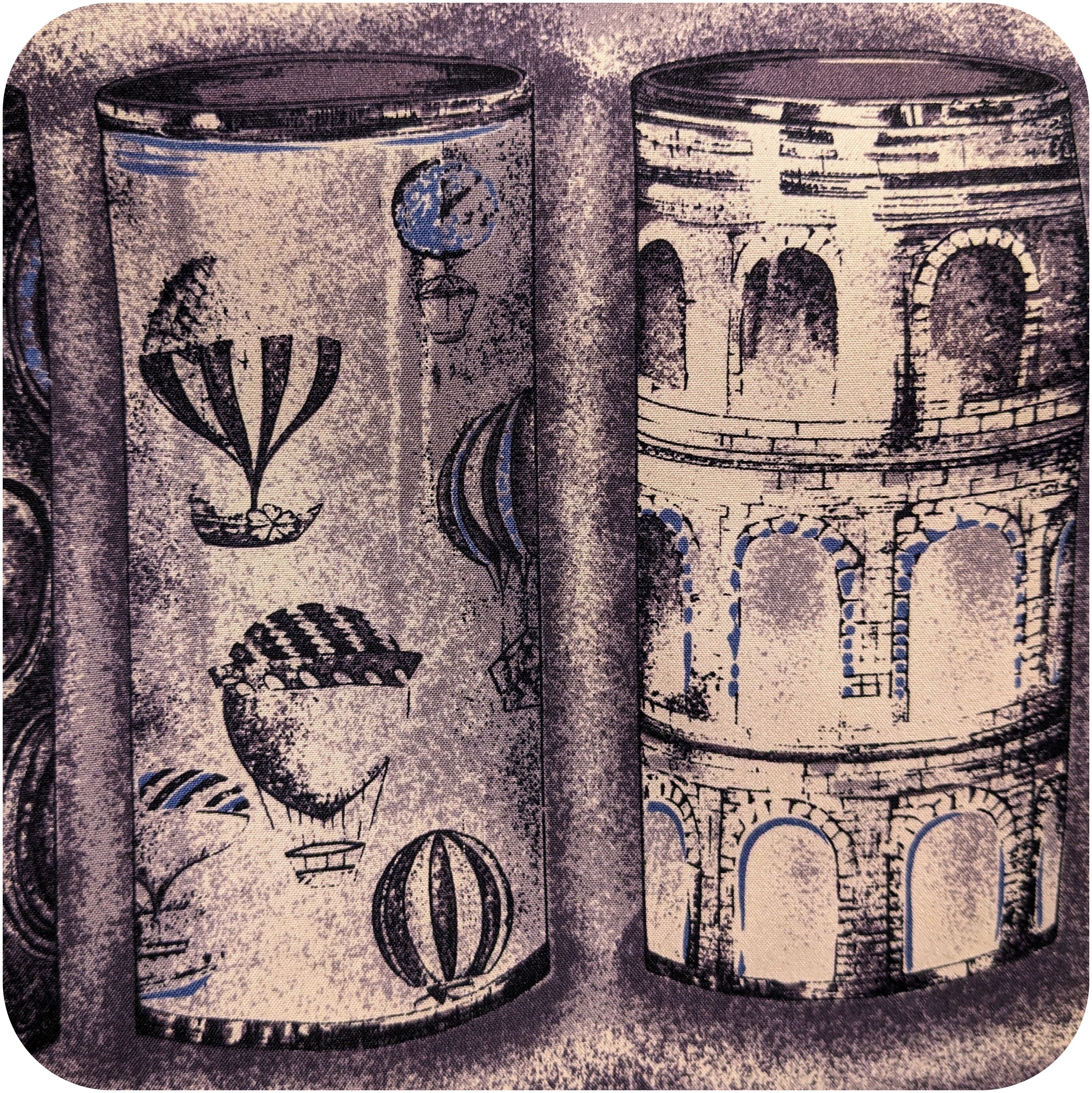 モードなラベンダーグレー×ブラックの気球柄ブラウスです。