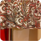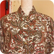 エレガントなホワイト×ダークベージュ×レッドのペイズリー柄パフスリーブブラウスです。