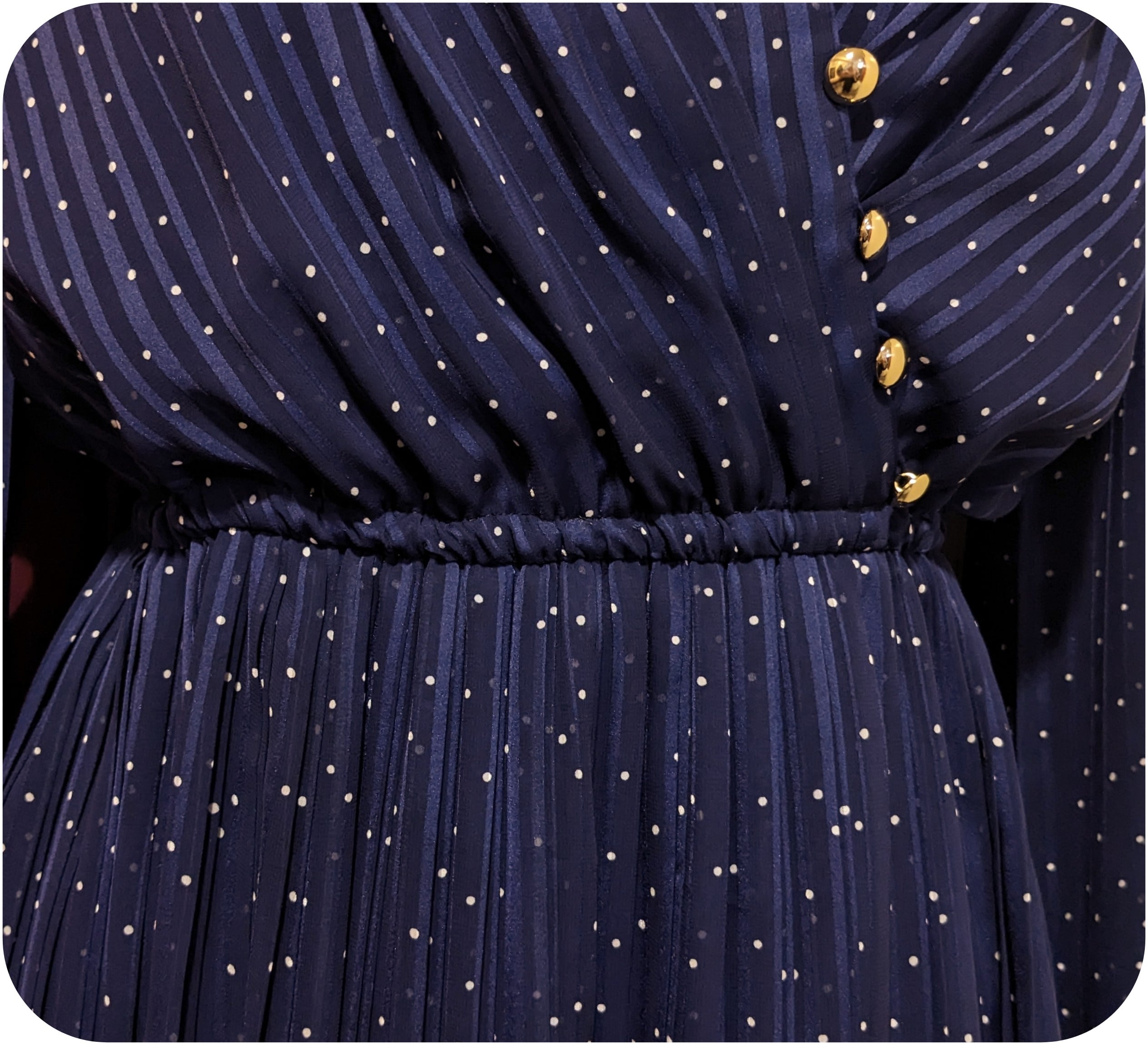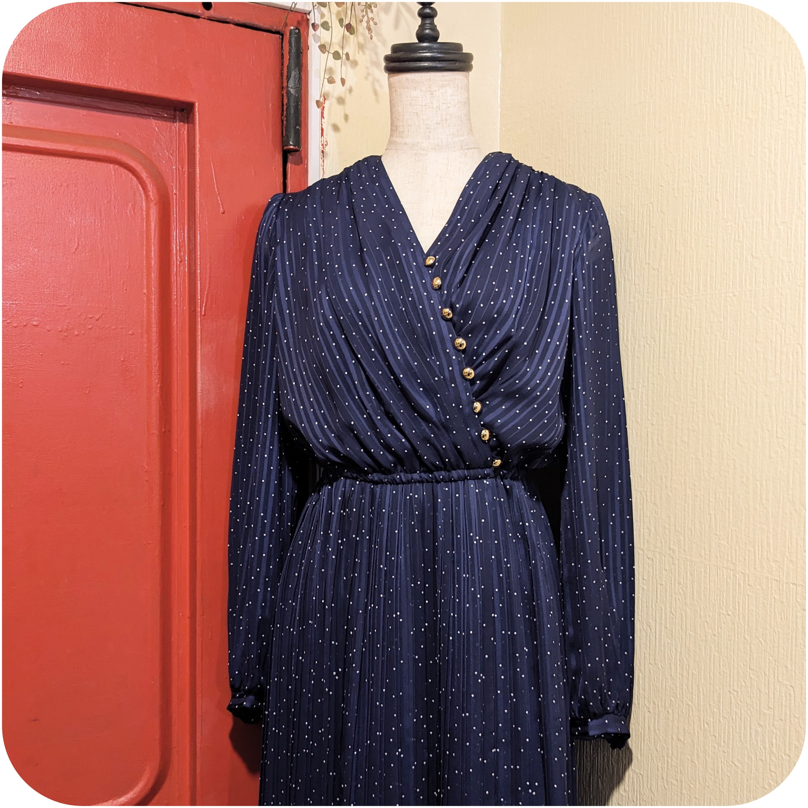 クラシカルなネイビー×ホワイトのドット柄カシュクールワンピース