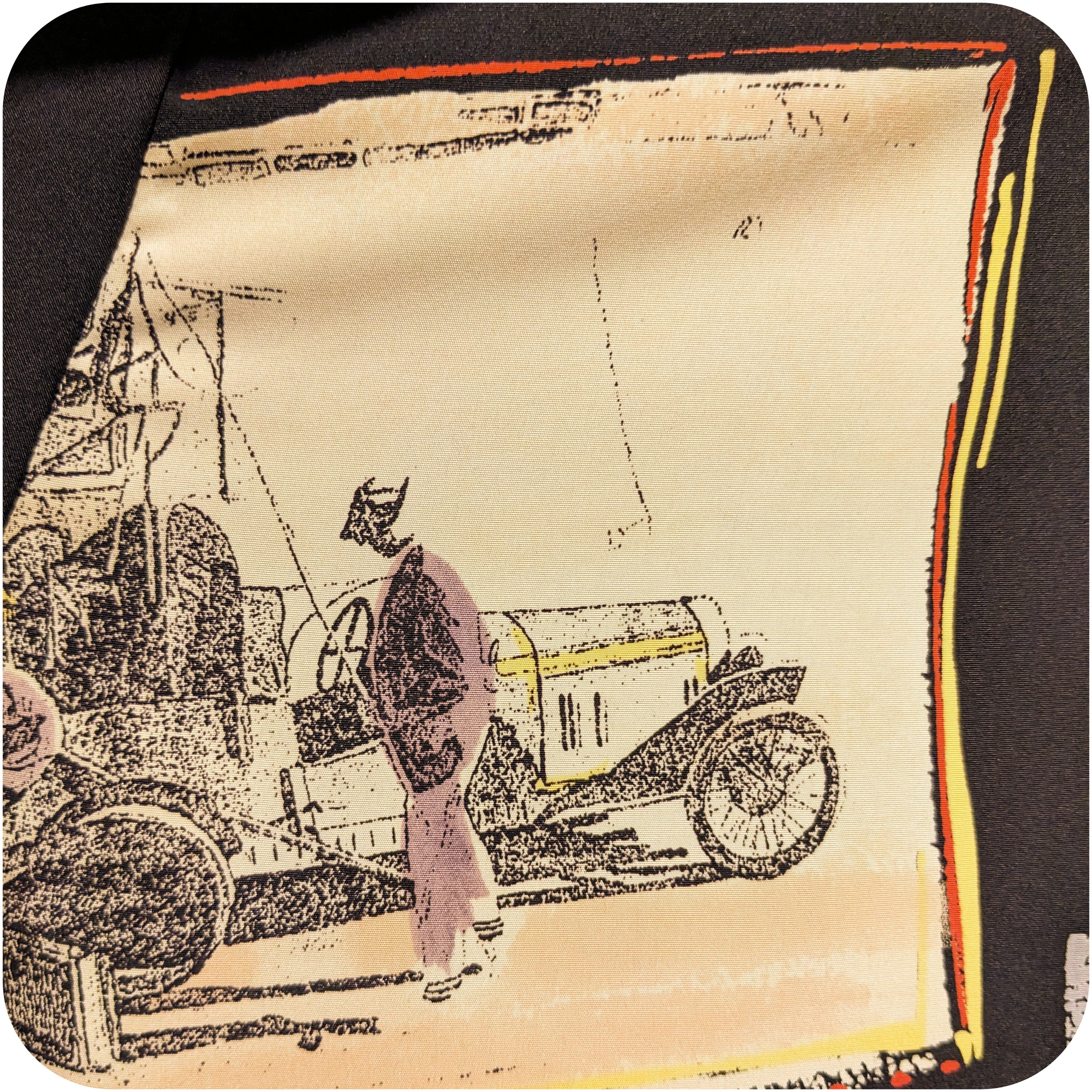 古着ならではのユニークなプリント柄と、やや肩の落ちたほどよいルーズ感のあるシルエットがとっても素敵。