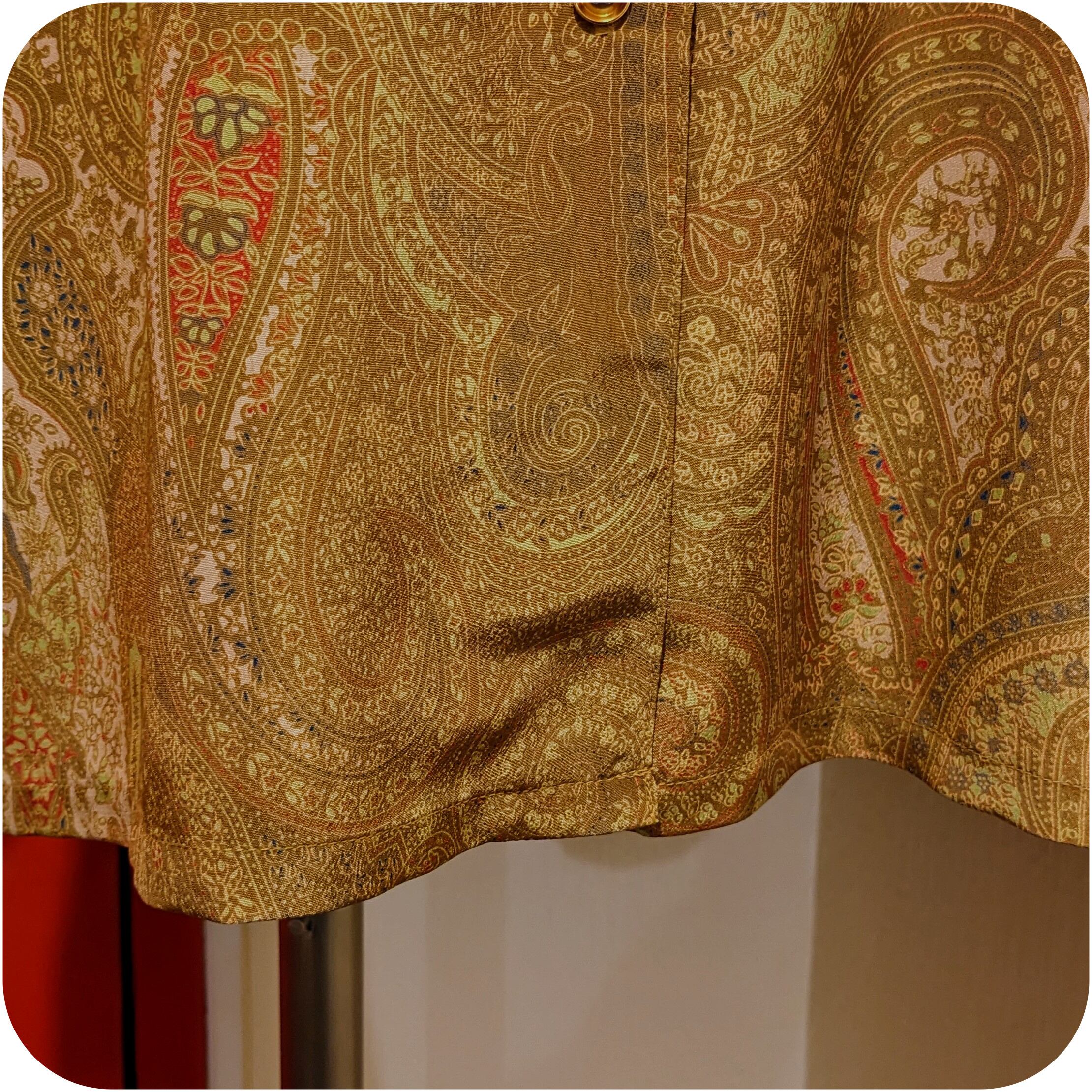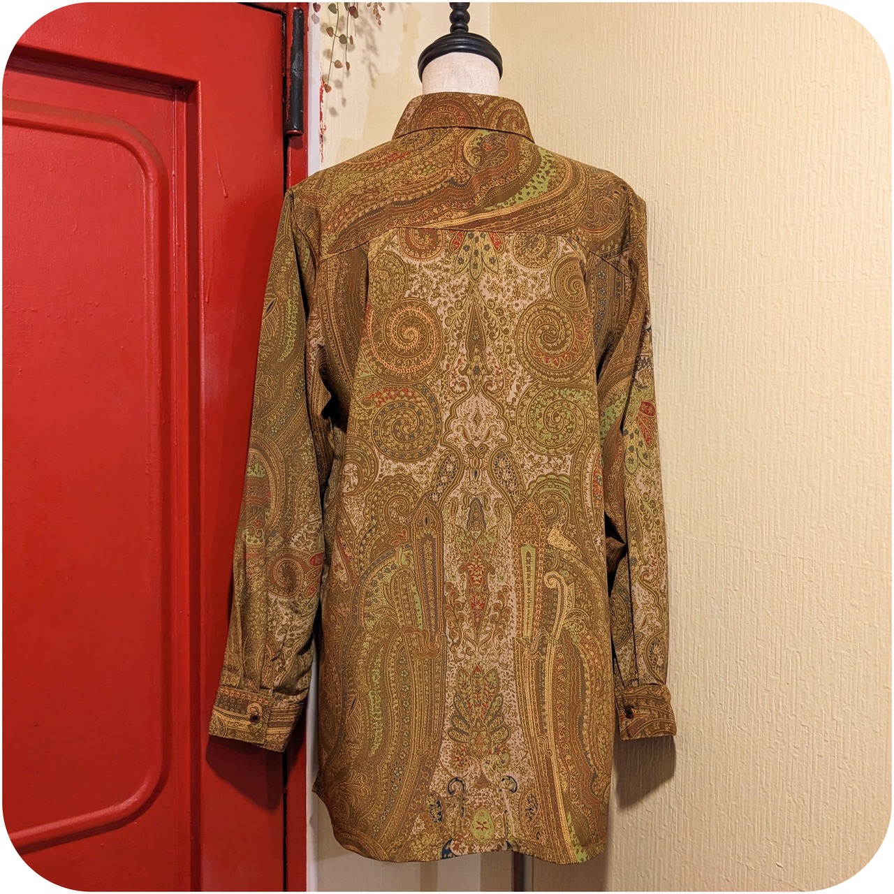 シックなマスタード×メロングリーン×ライトブラウンのペイズリー柄ブラウスです。