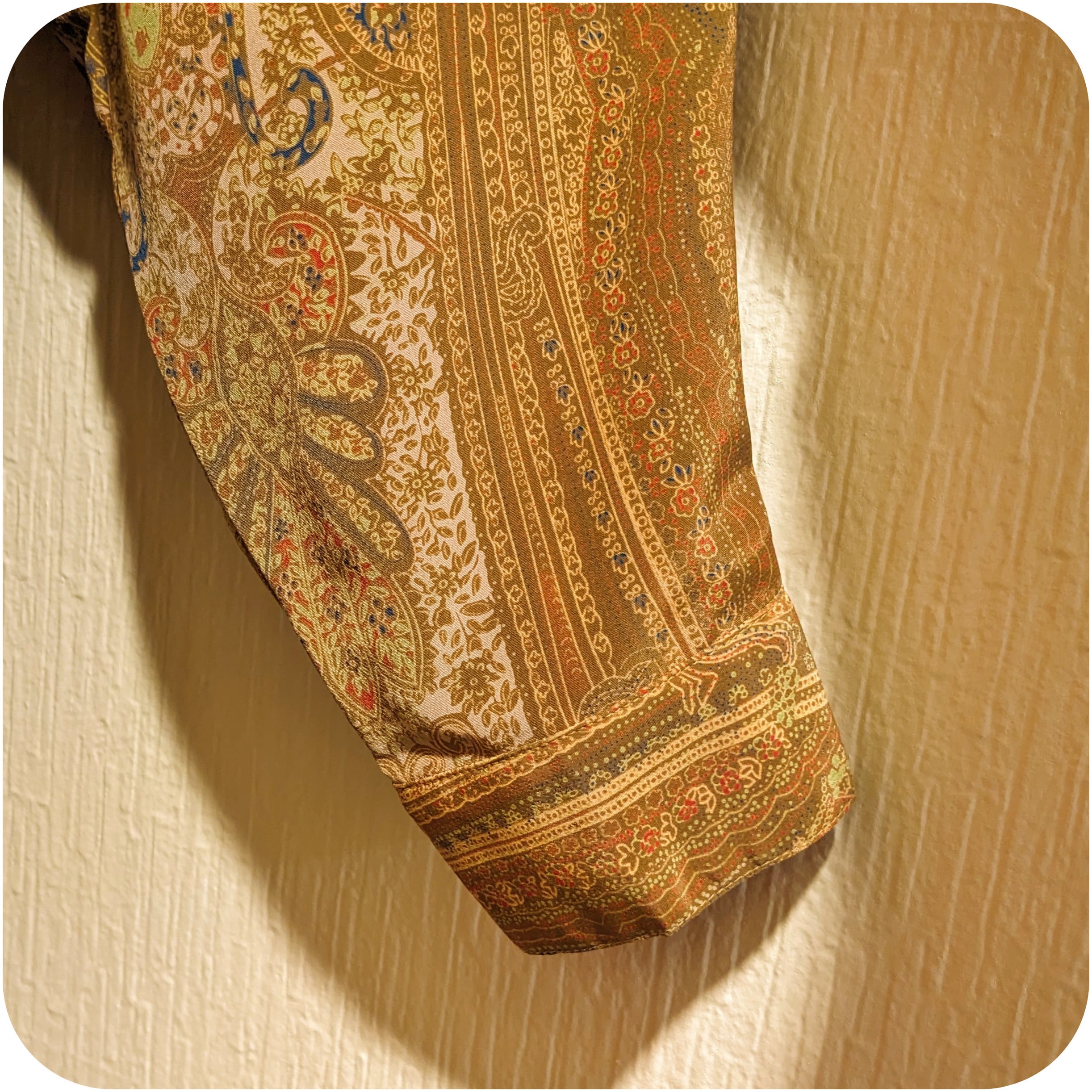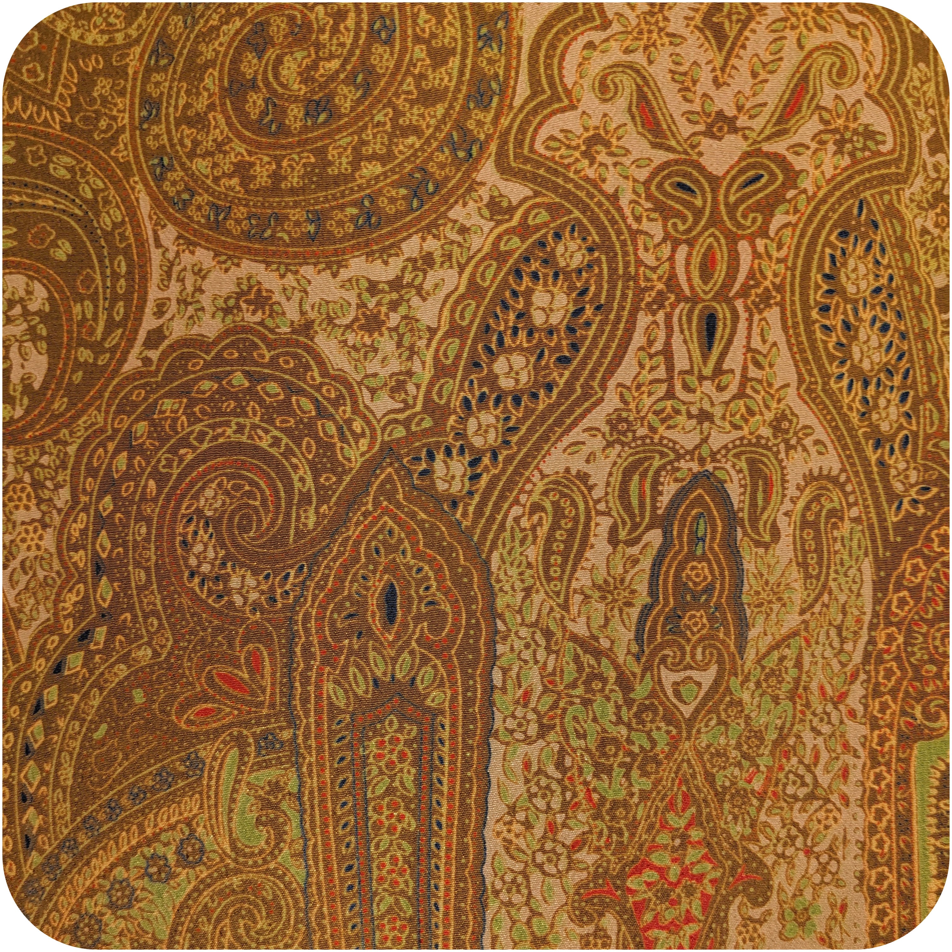 シックなマスタード×メロングリーン×ライトブラウンのペイズリー柄ブラウス