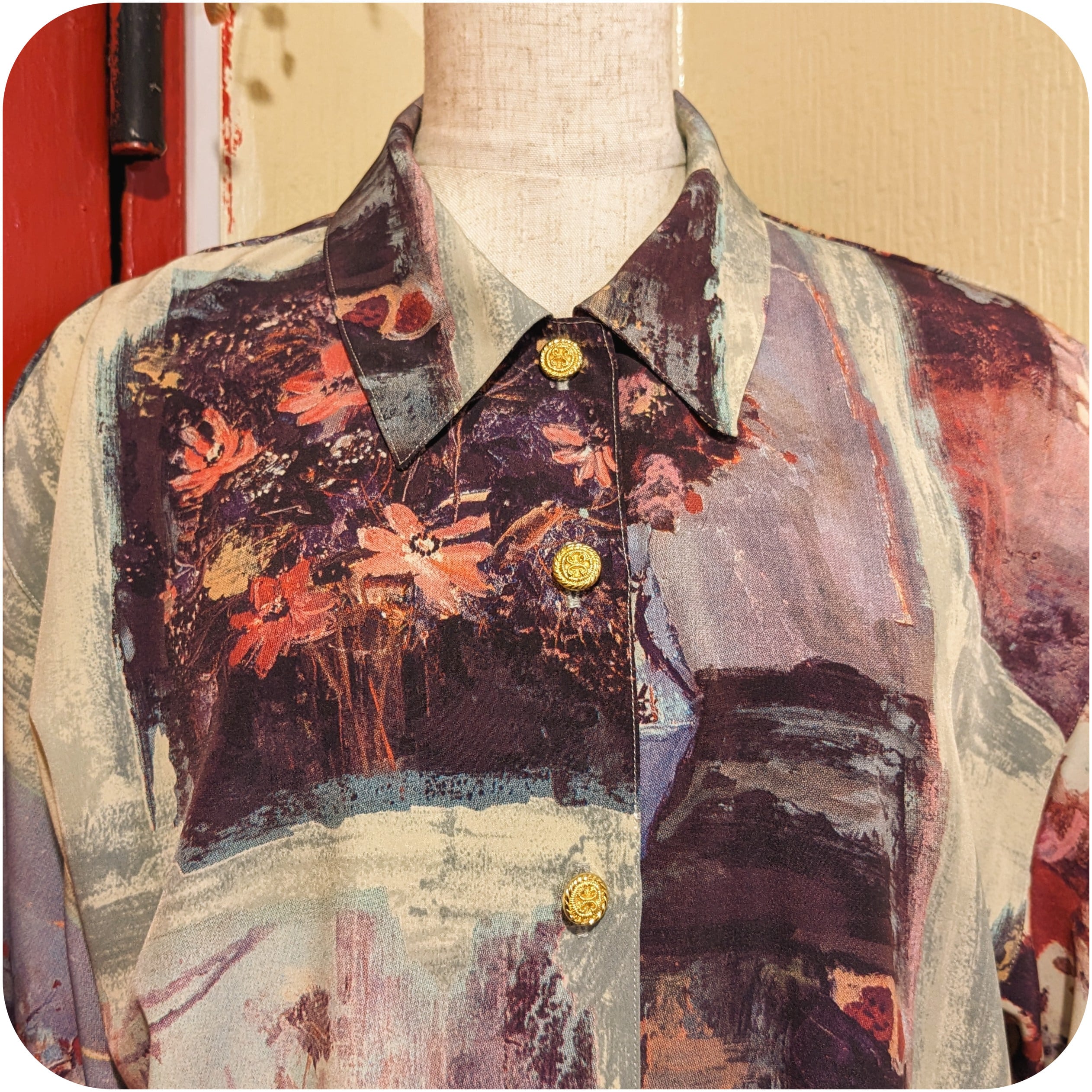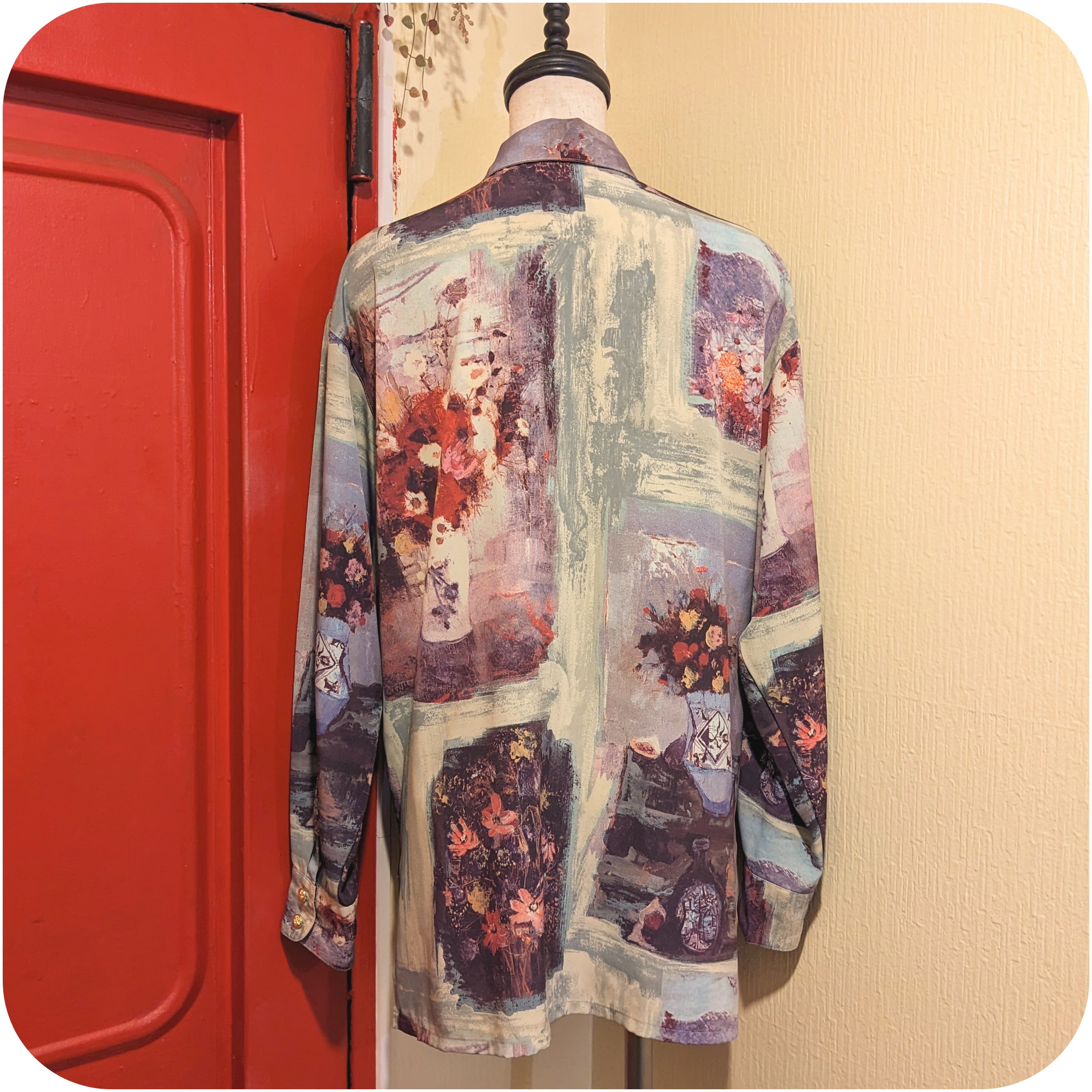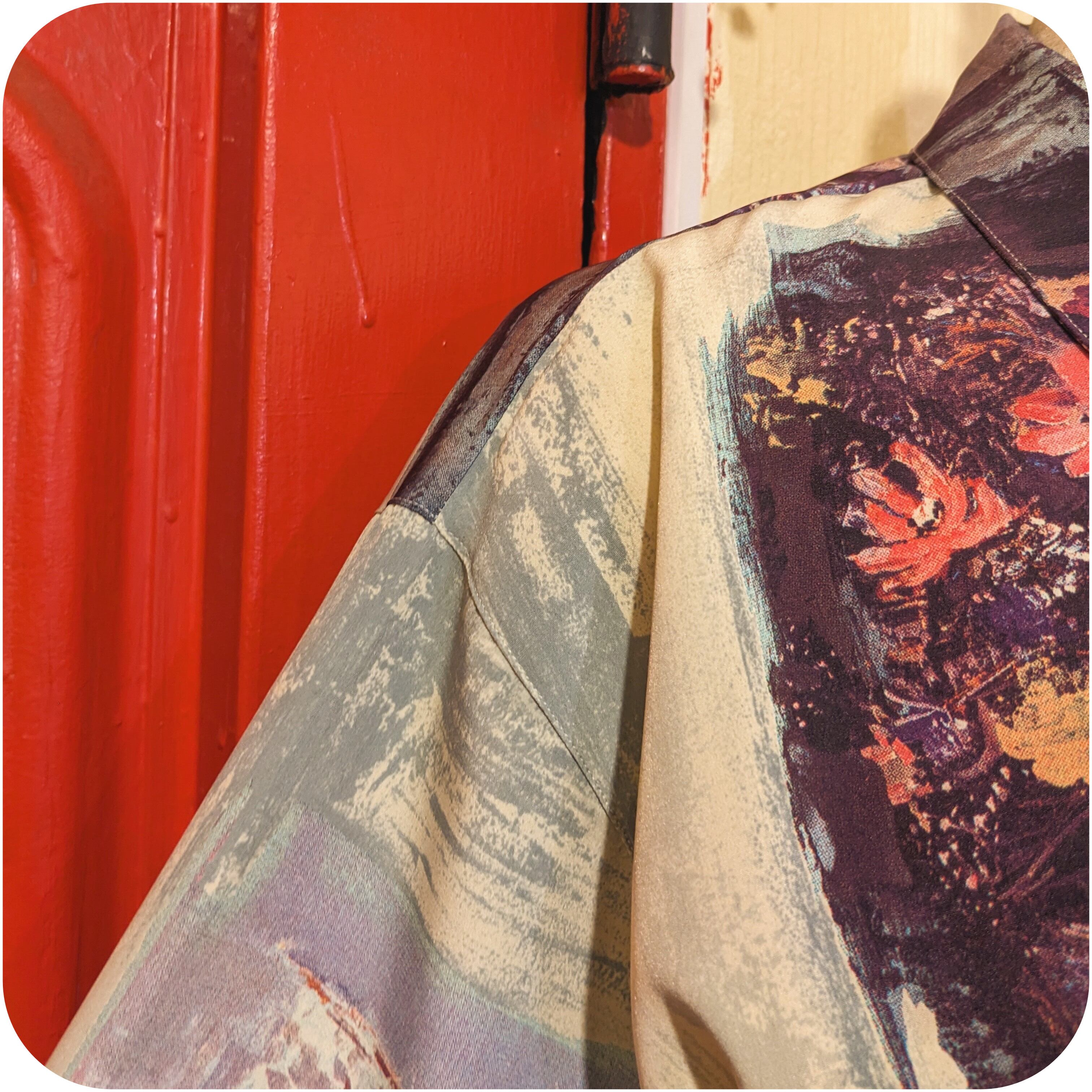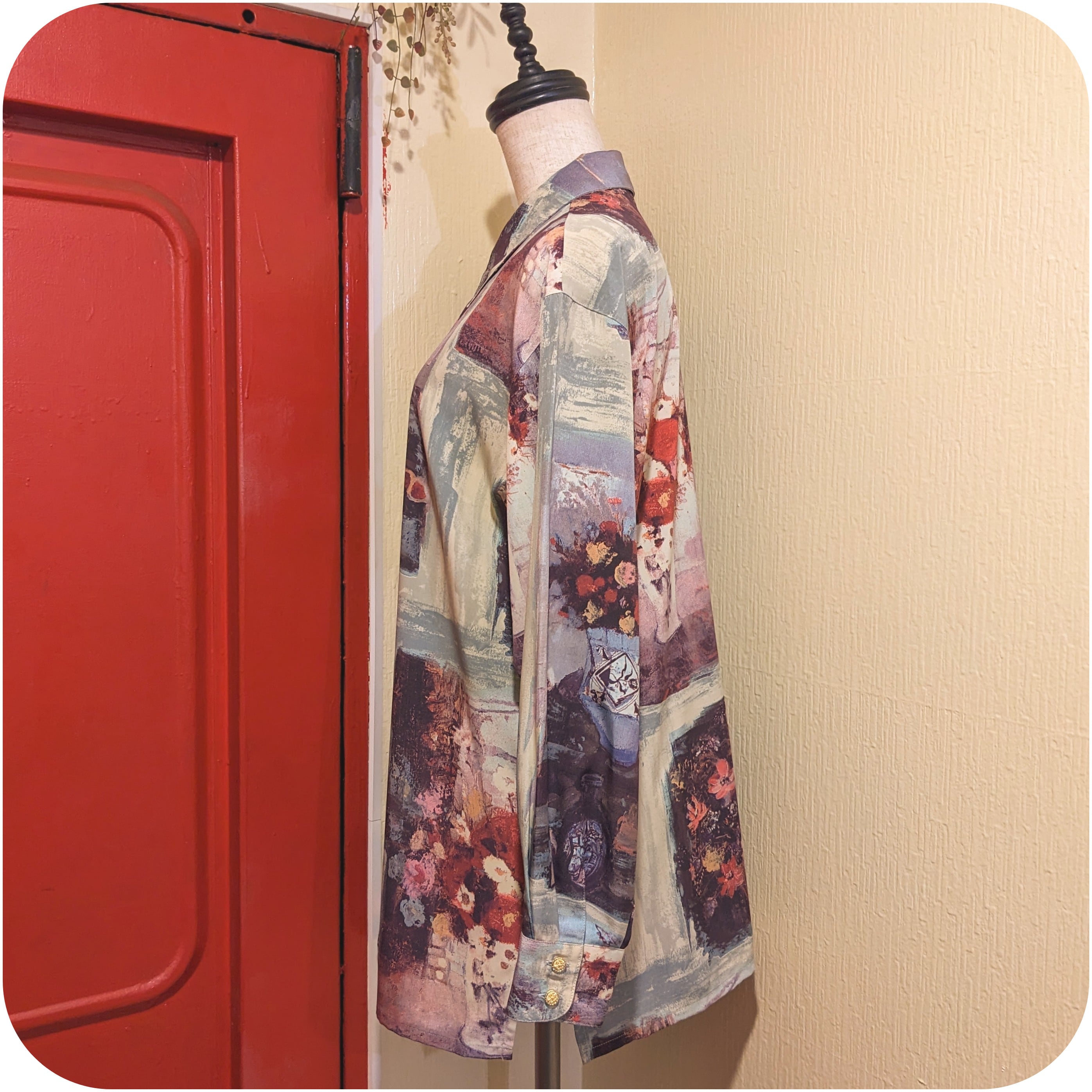 まるで絵画のようなユニークなプリント柄と、肩の落ちたほどよルーズ感のあるシルエットがとっても素敵。