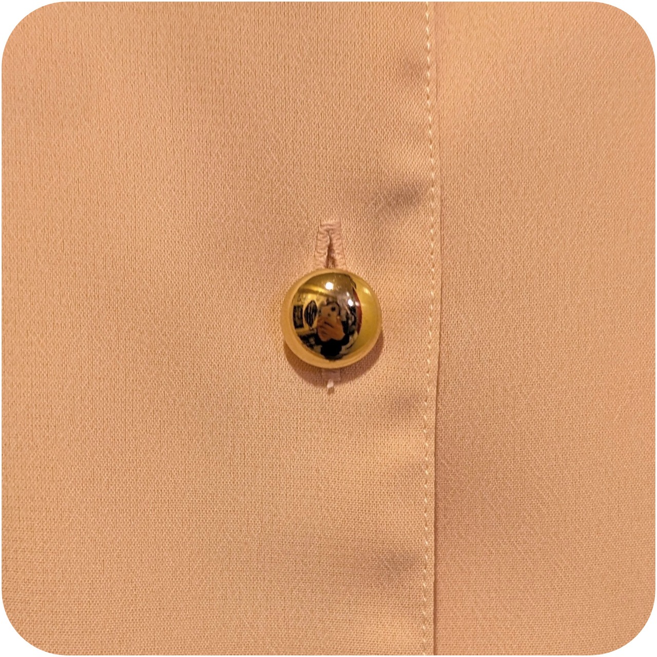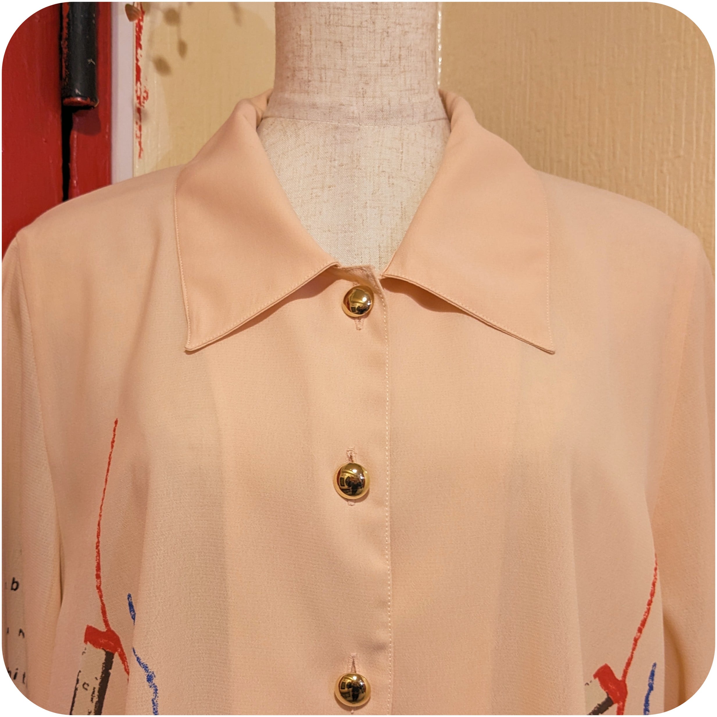 古着ならではのユニークなパネル柄と、エレガントなゴールドカラーのボタンがとっても素敵。