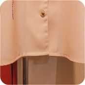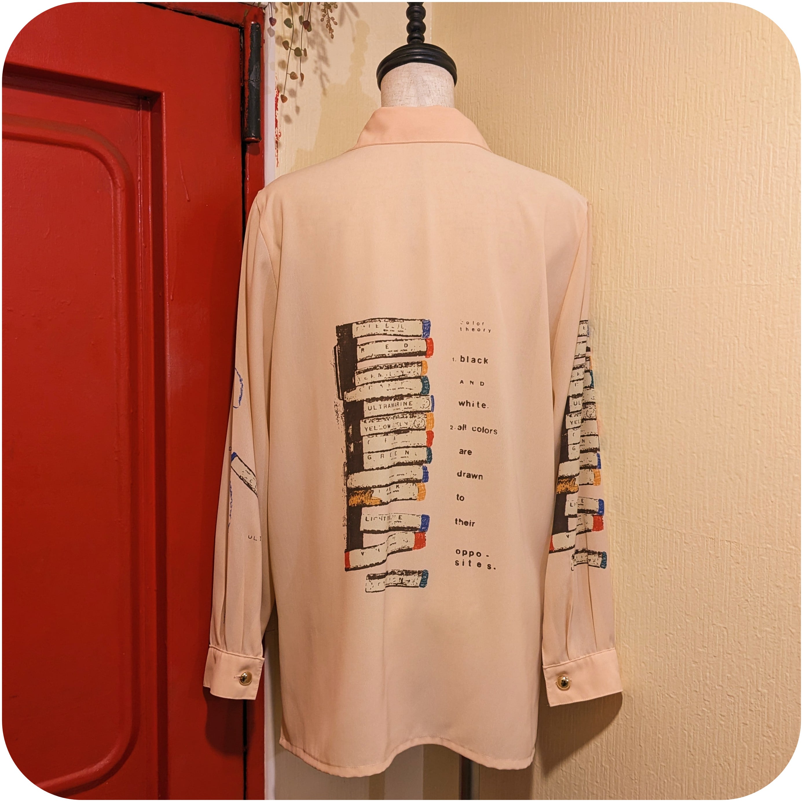 モードなシェルピンク×レッド×ブラウンのクレヨン柄ブラウスです。