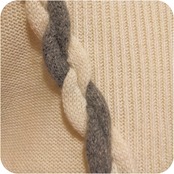 エレガントなオフホワイト×ライトグレーのフロントデザインニットです。