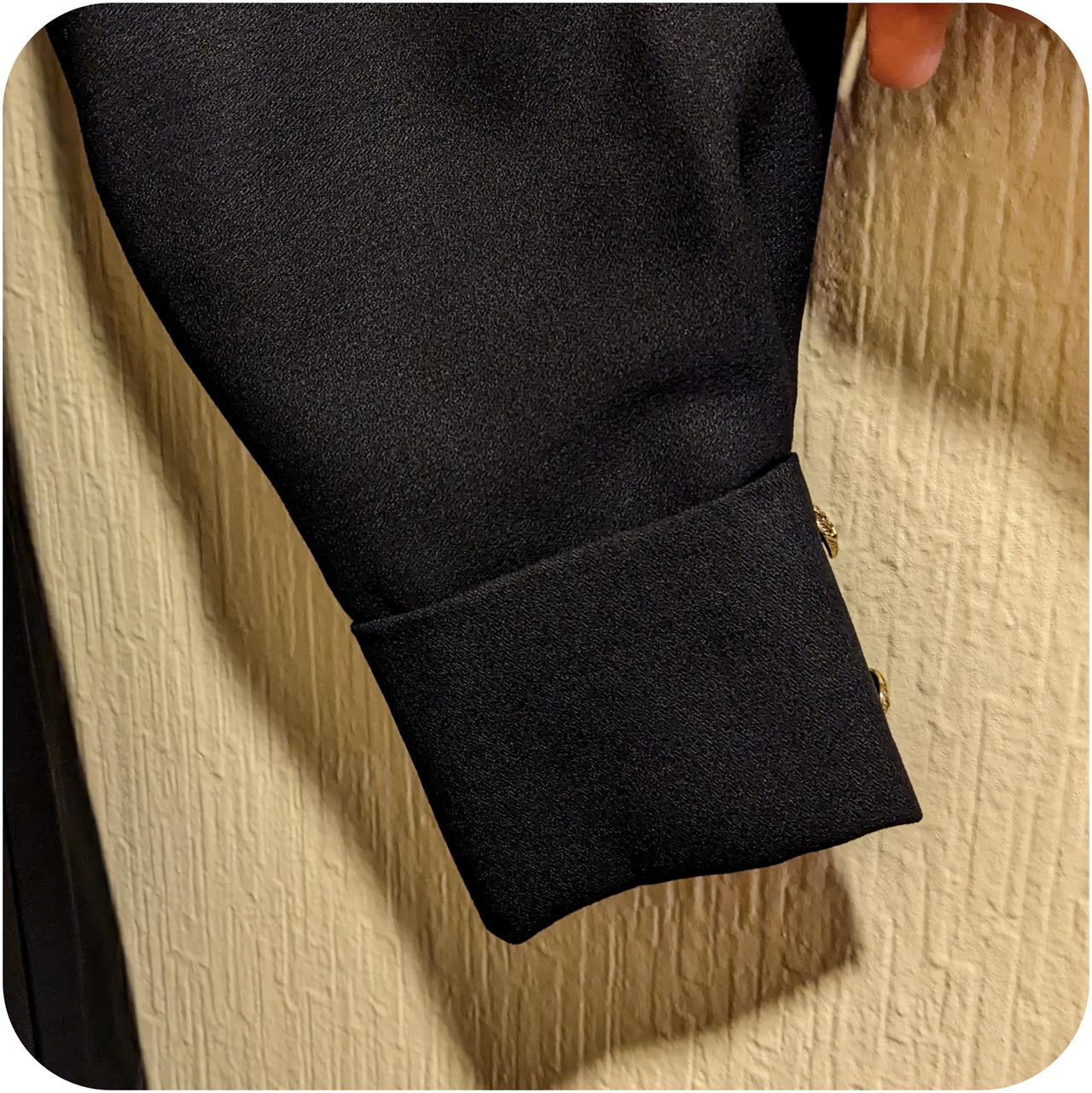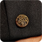 レトロな文様入りのゴールドボタンも◎