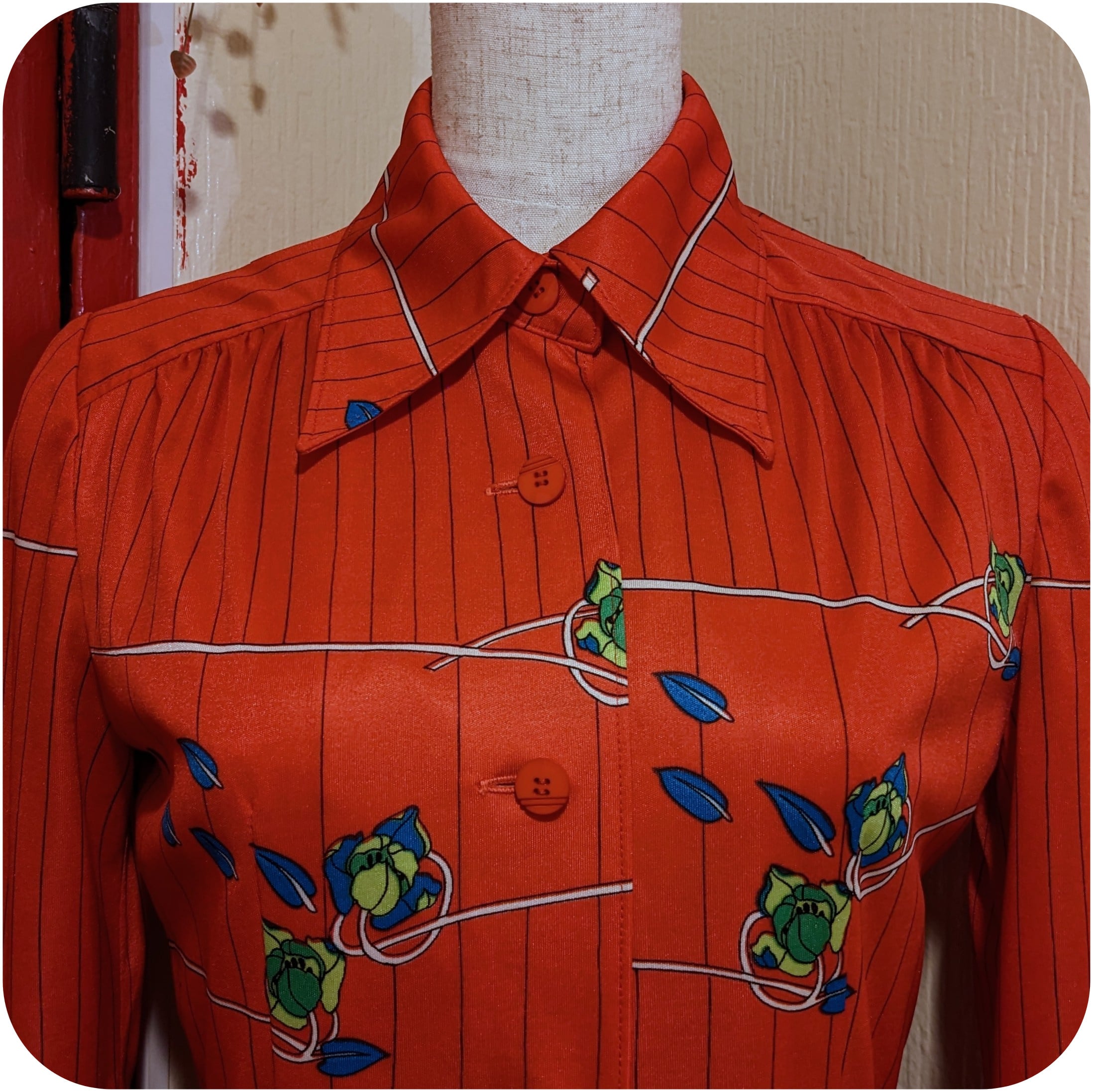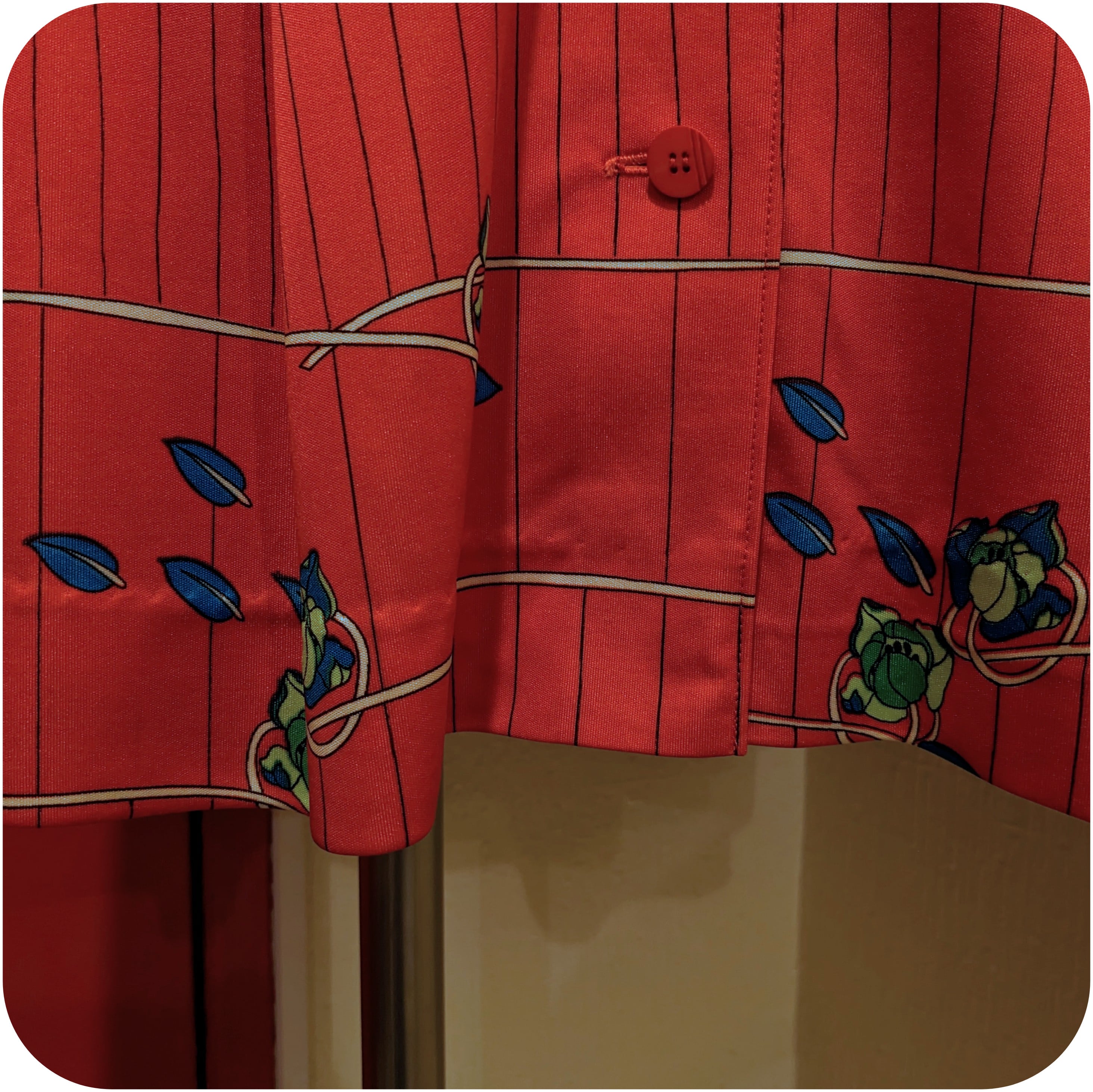 古着ならではの鮮やかな色合いのパネル柄と、ボディラインにフィットする美しいシルエットがとっても素敵。