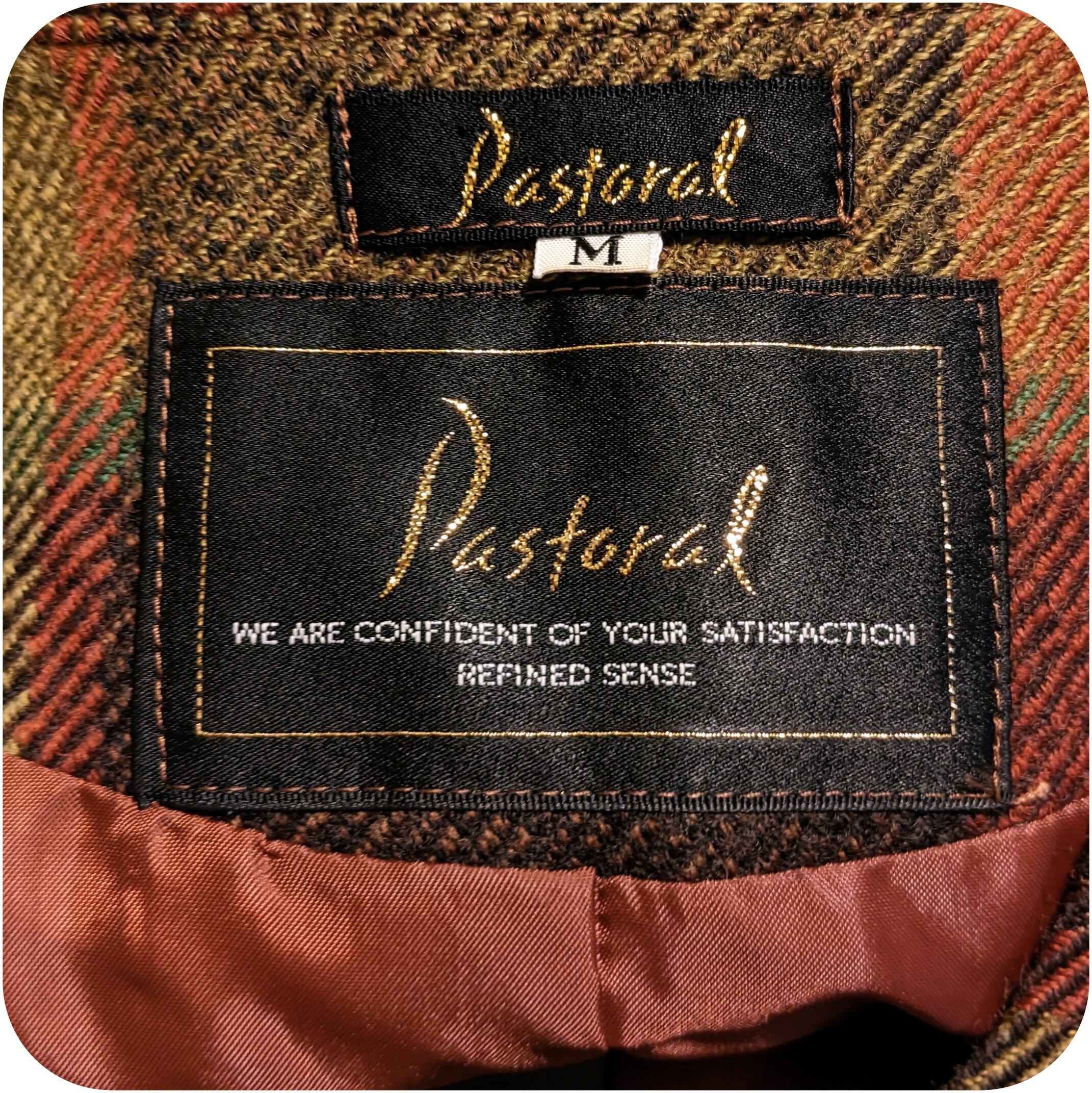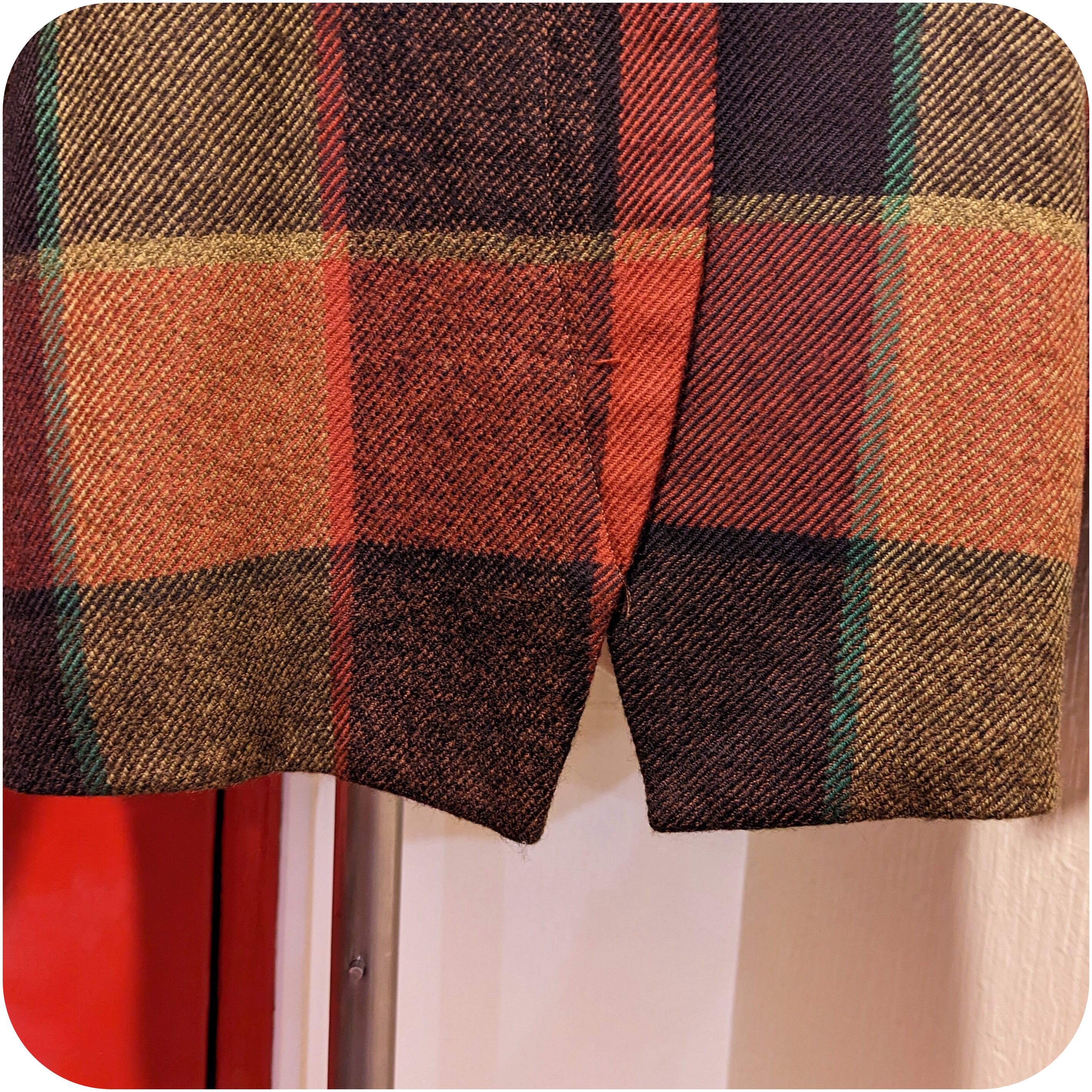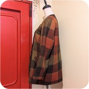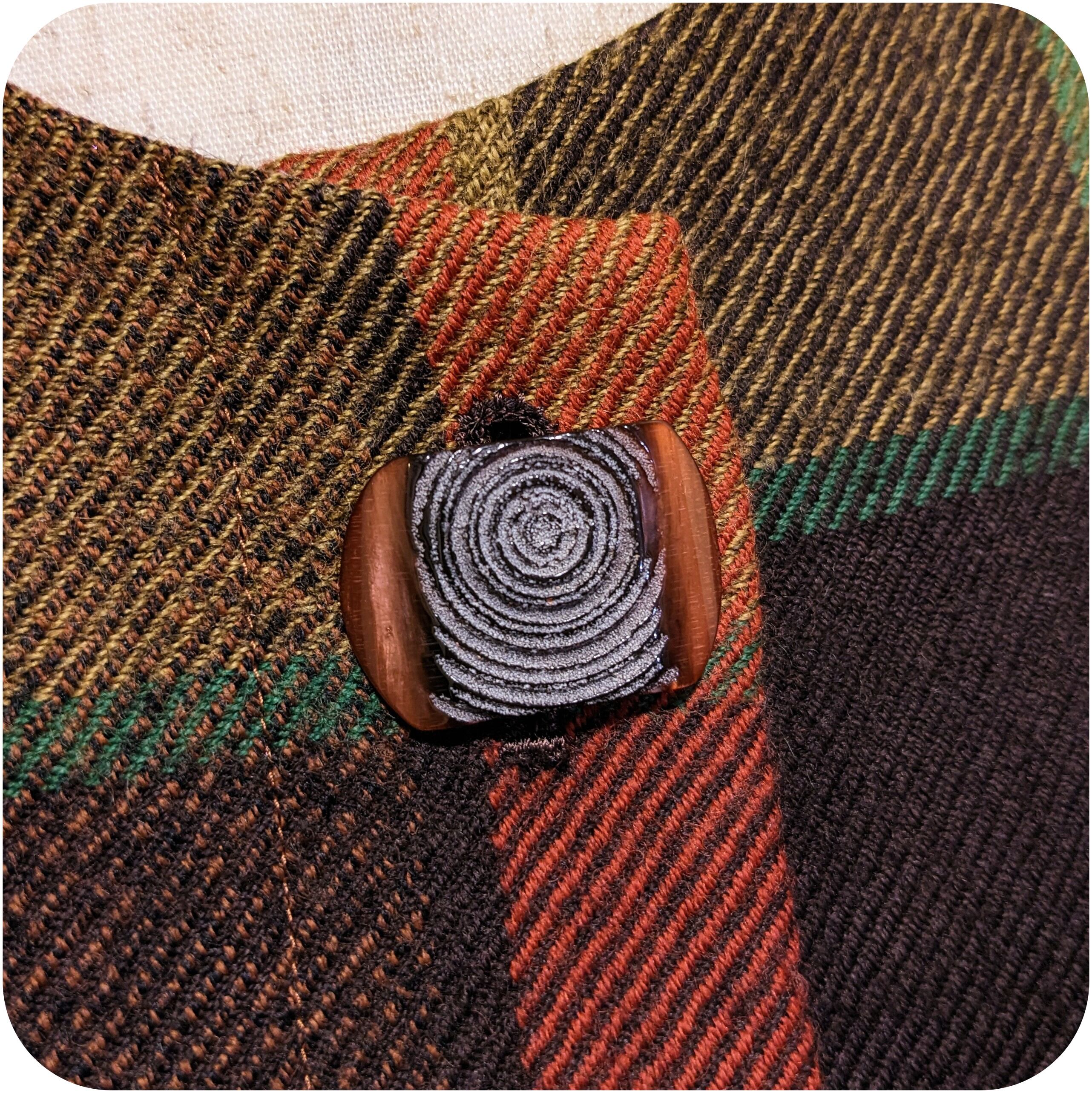 クラシカルなブラウン×スモーキーオレンジ×グリーンのチェック柄ショートコート