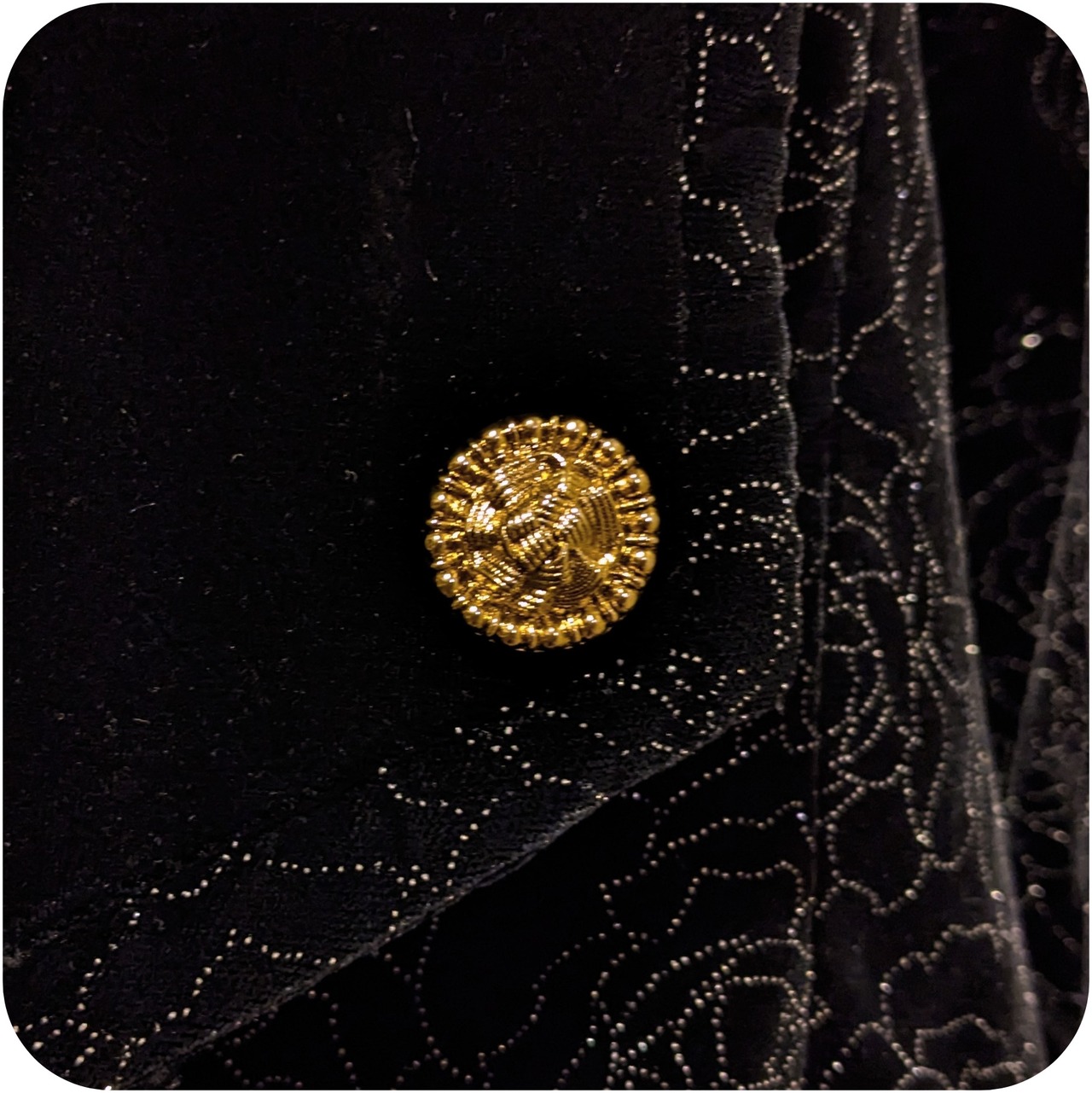 エレガントなブラック×シルバーの柄ベルベットジャケットです。