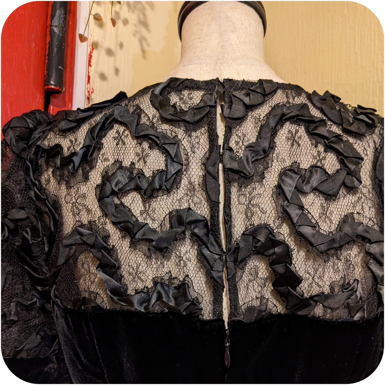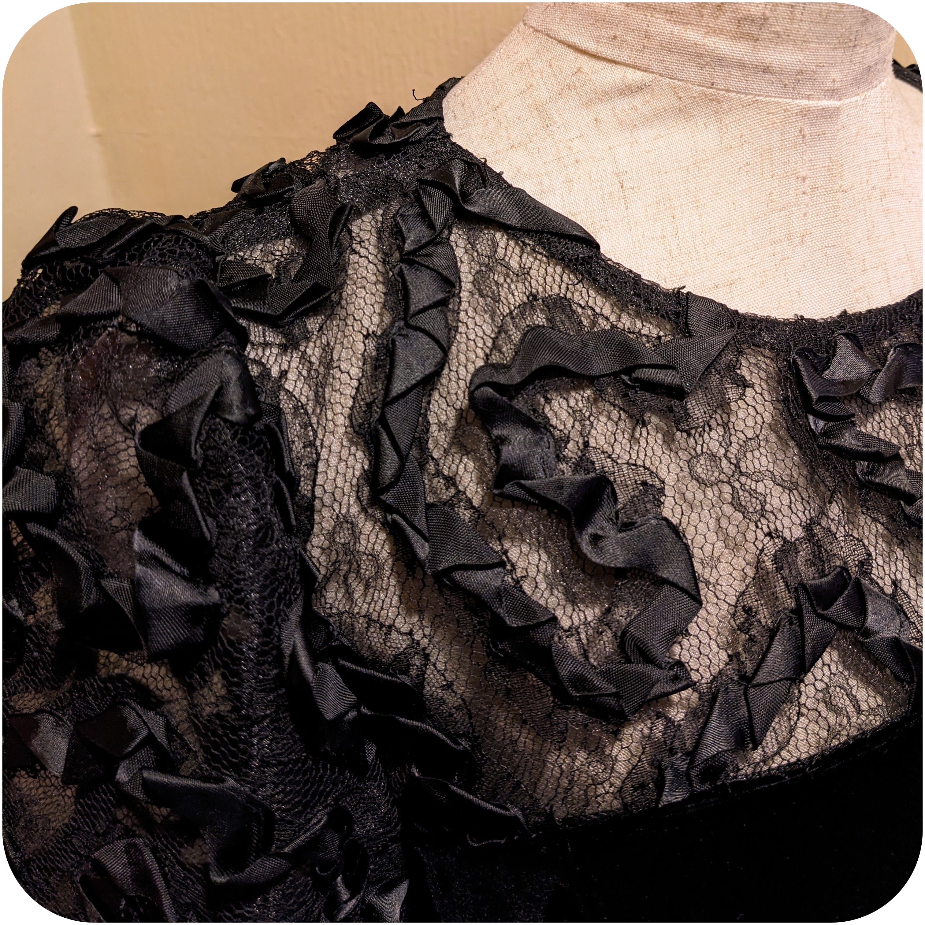 デコルテや肩部分にシアーな素材を用いたドレッシーなデザインと、ベルベットのなめらかな光沢感がとっても素敵。