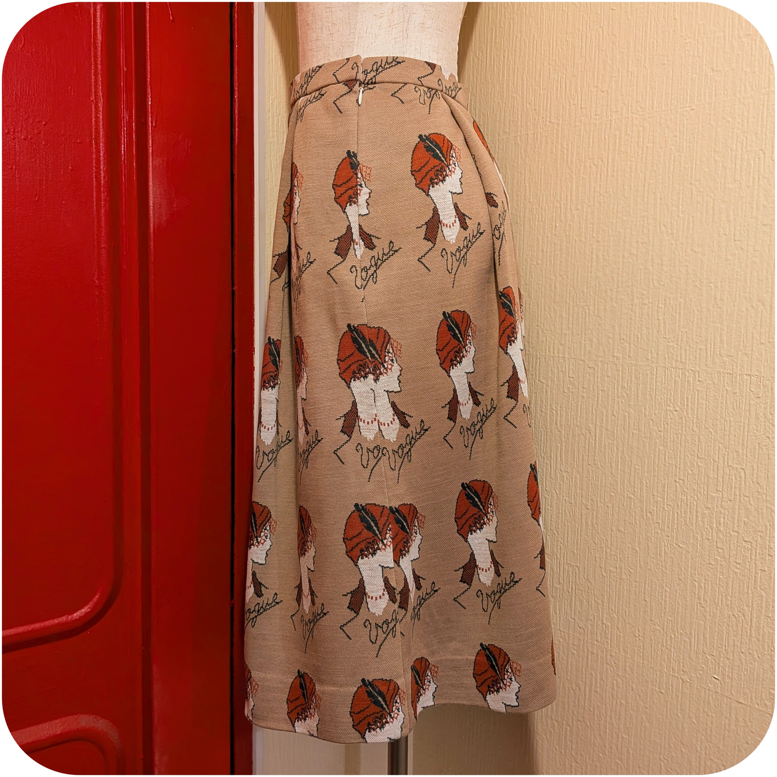 昭和レトロなベージュ×スモーキオレンジのモダンガール柄スカート