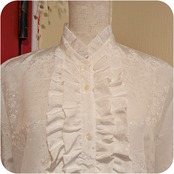 エレガントなホワイトのリーフ柄フリルデザインブラウス