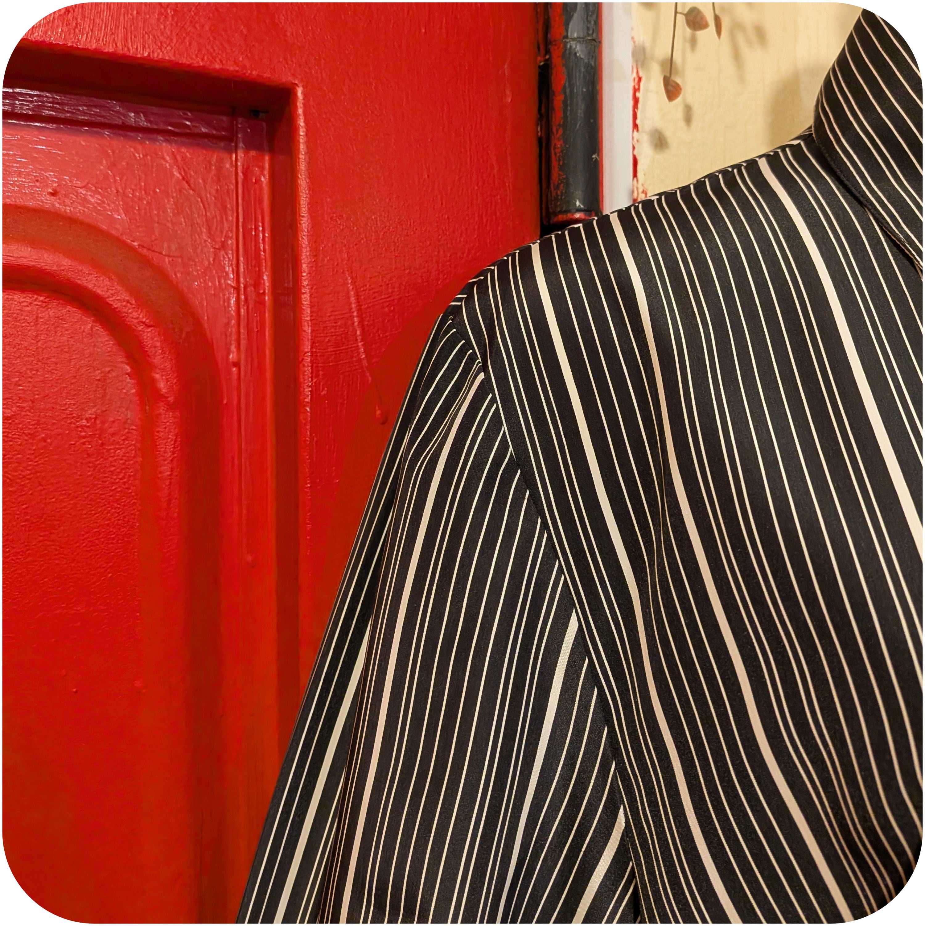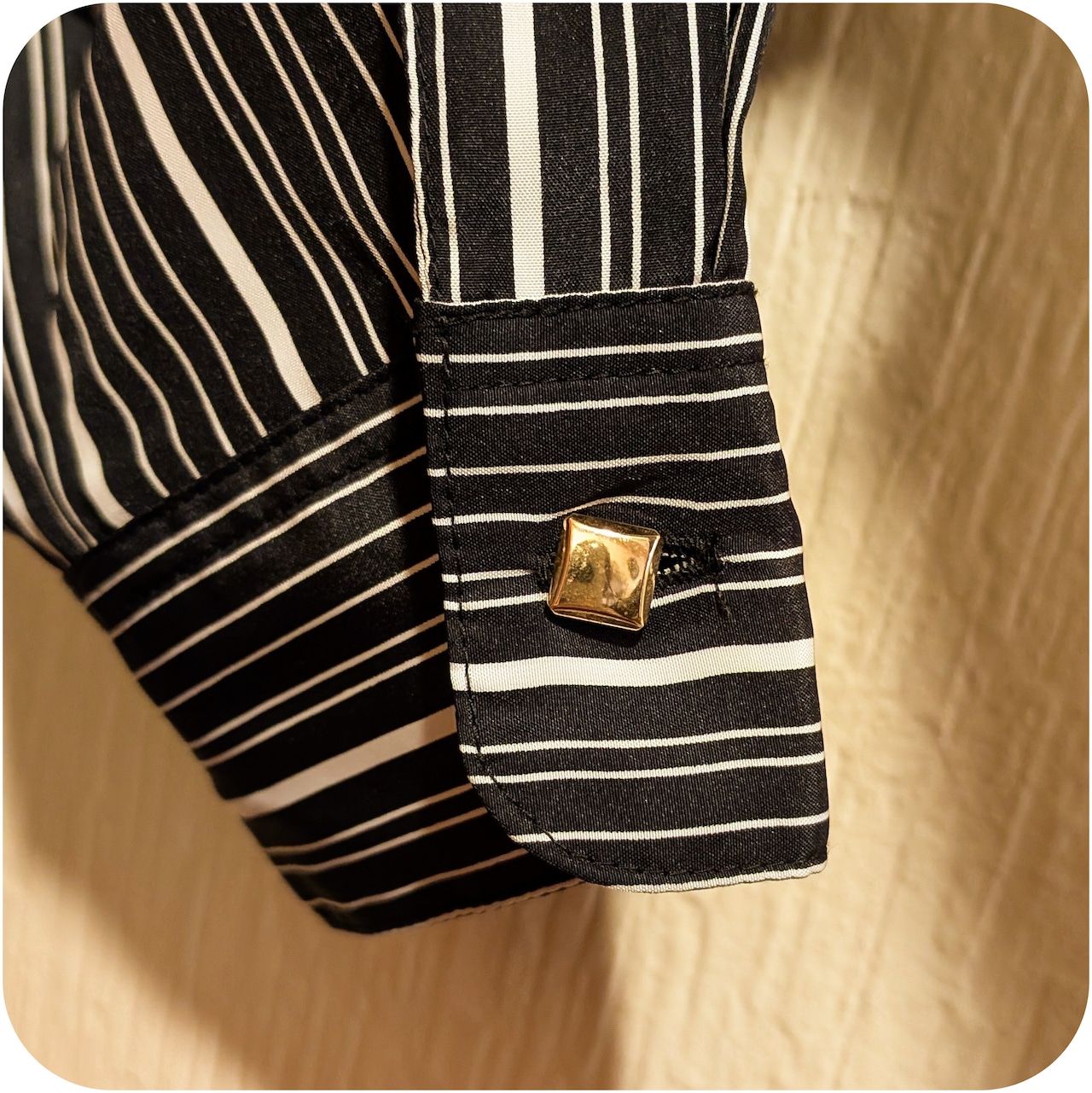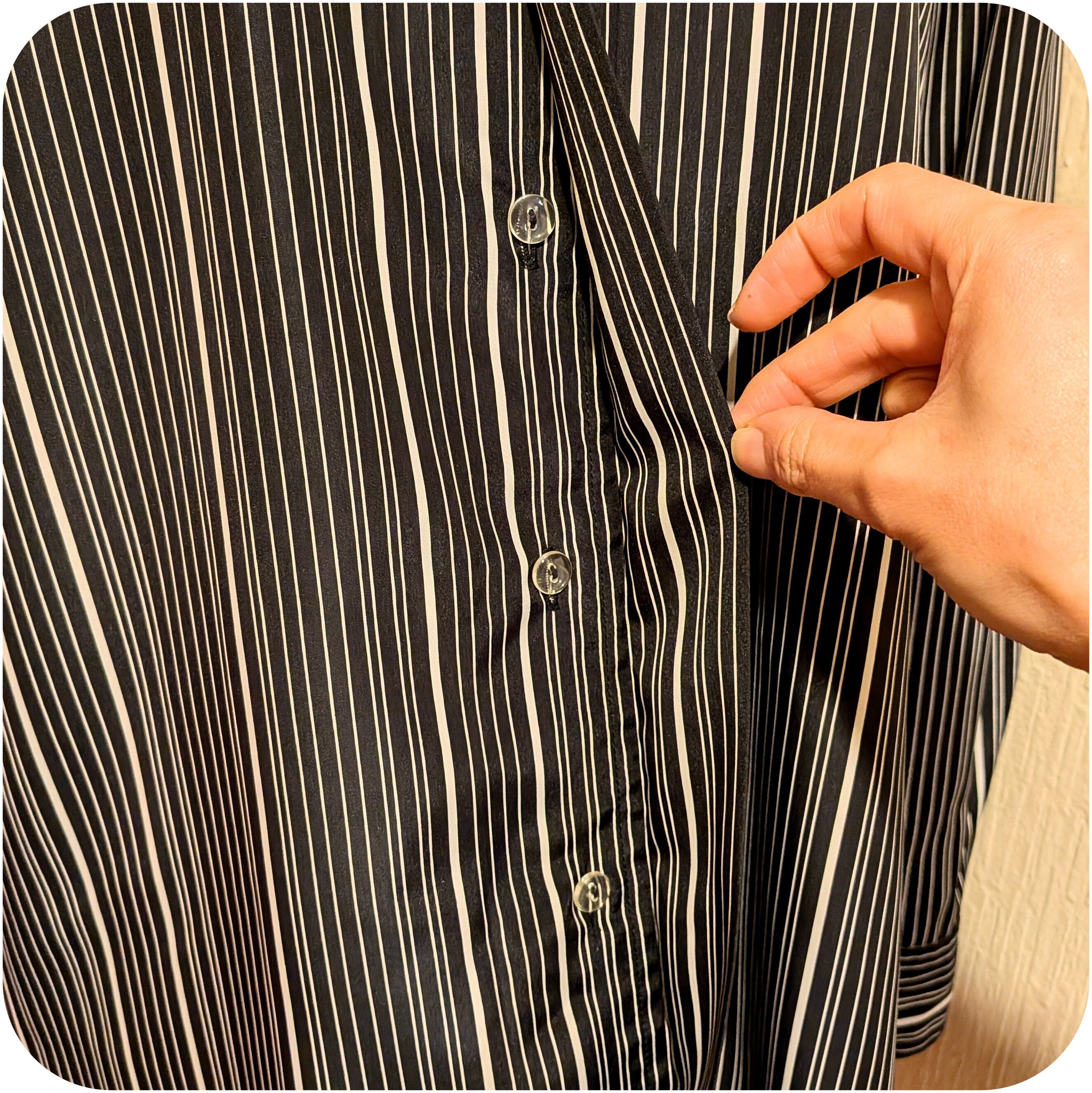 モードなブラック×ホワイトのストライプ柄ブラウス