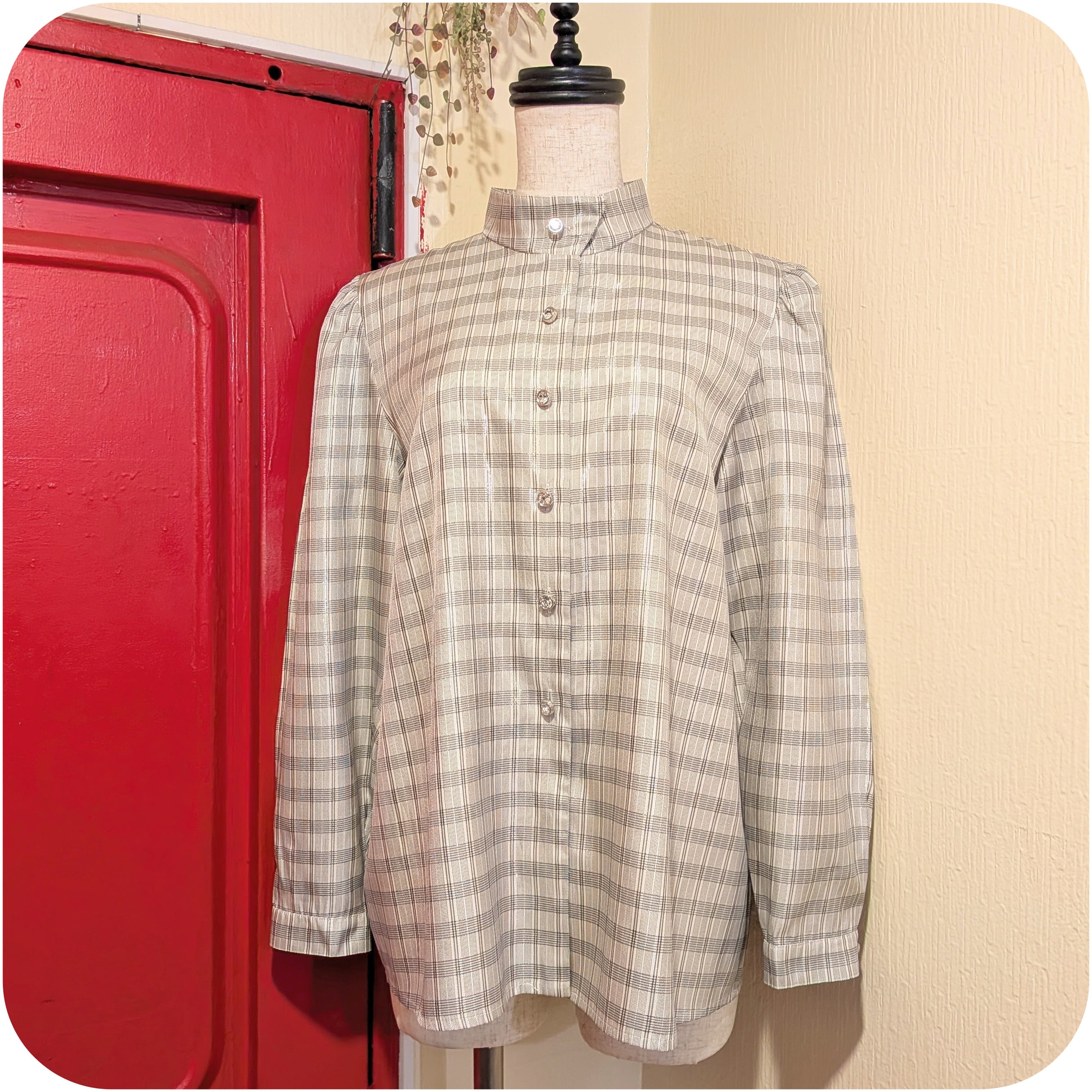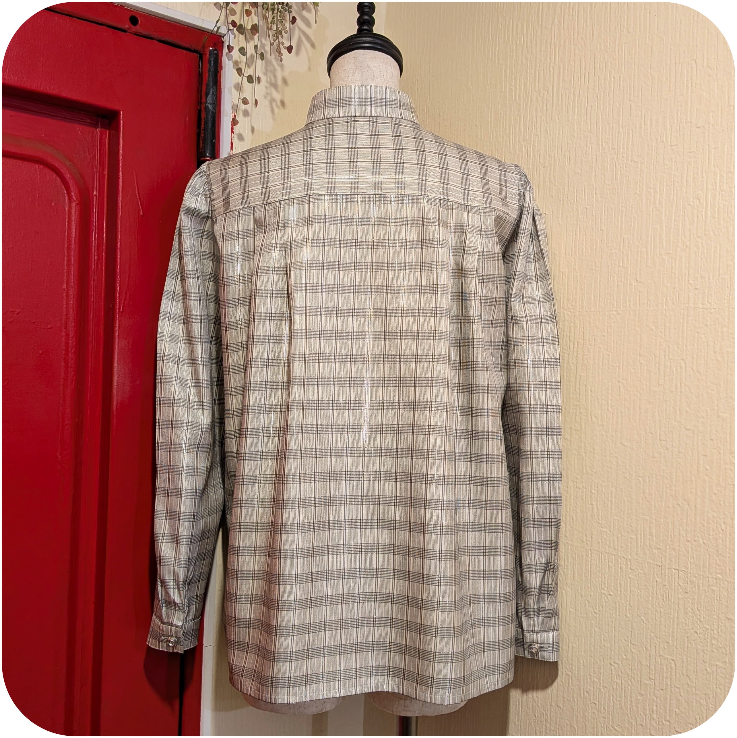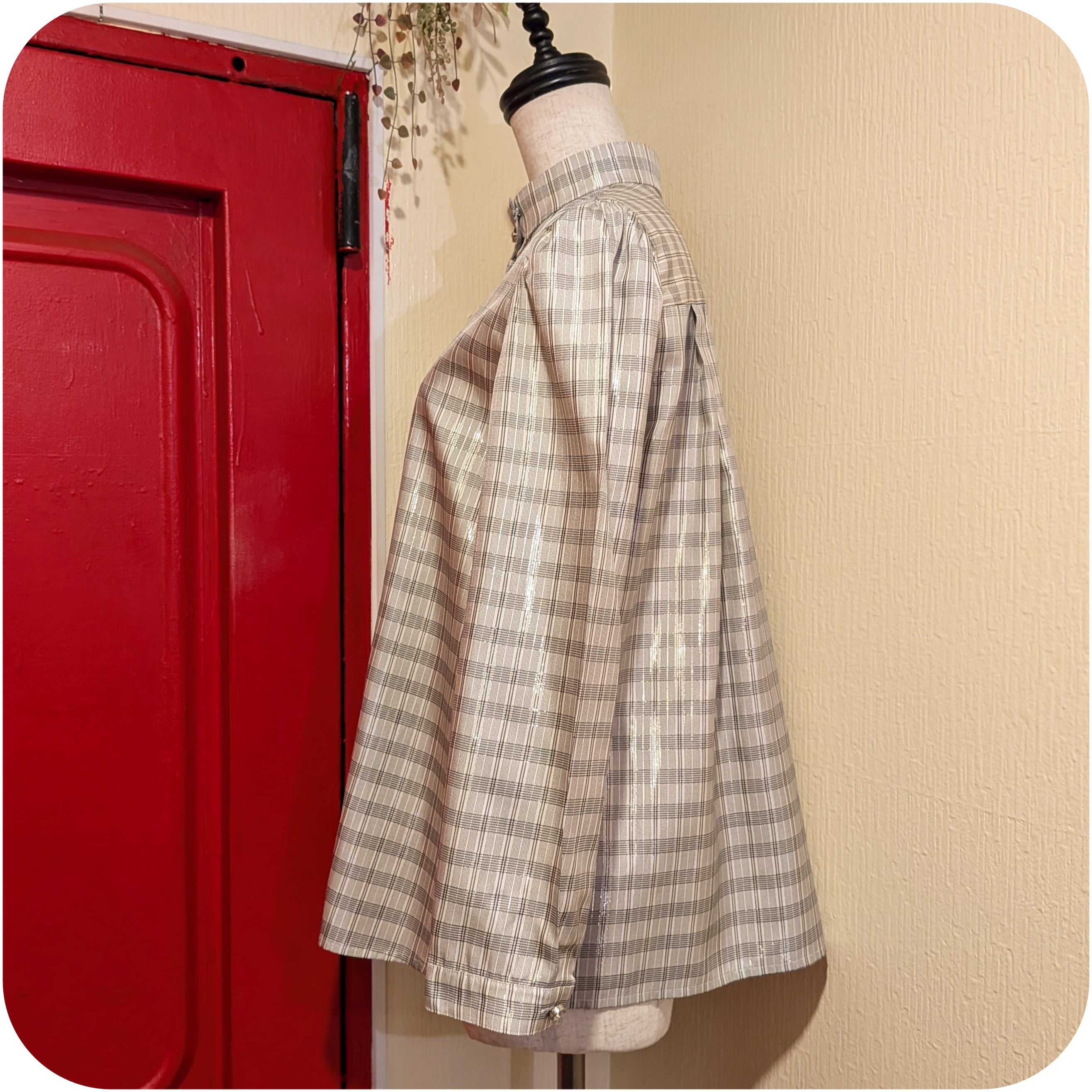 エレガントなホワイト×ブラック×ゴールドのチェック柄ブラウスです。
