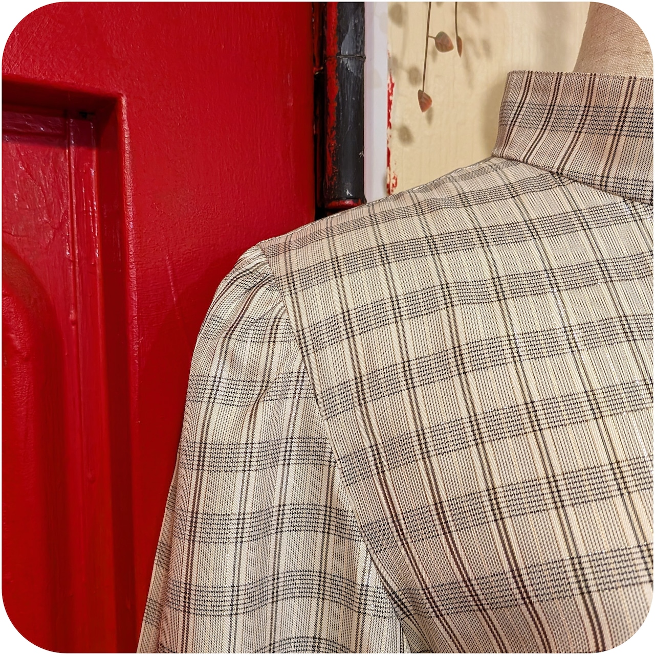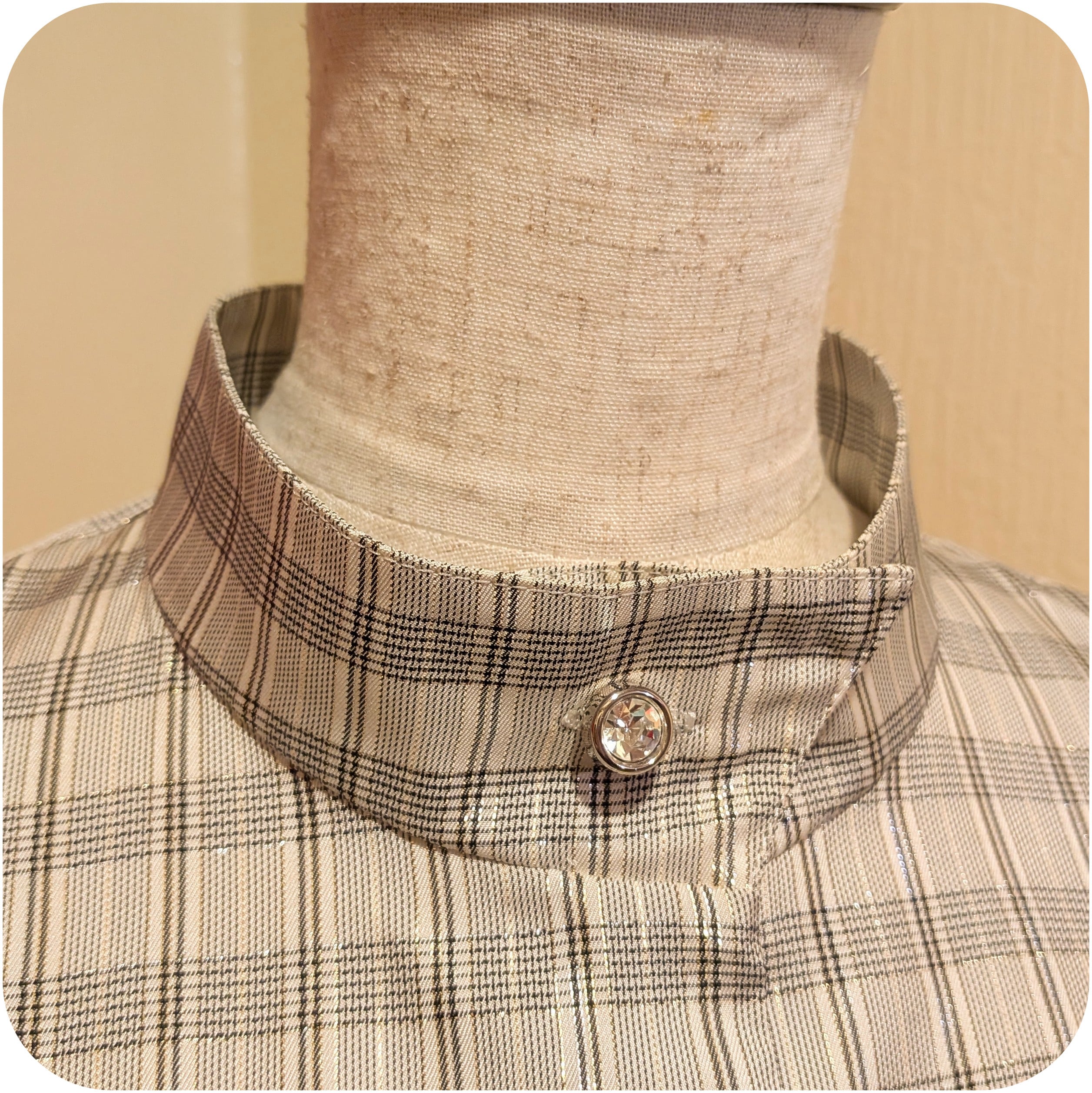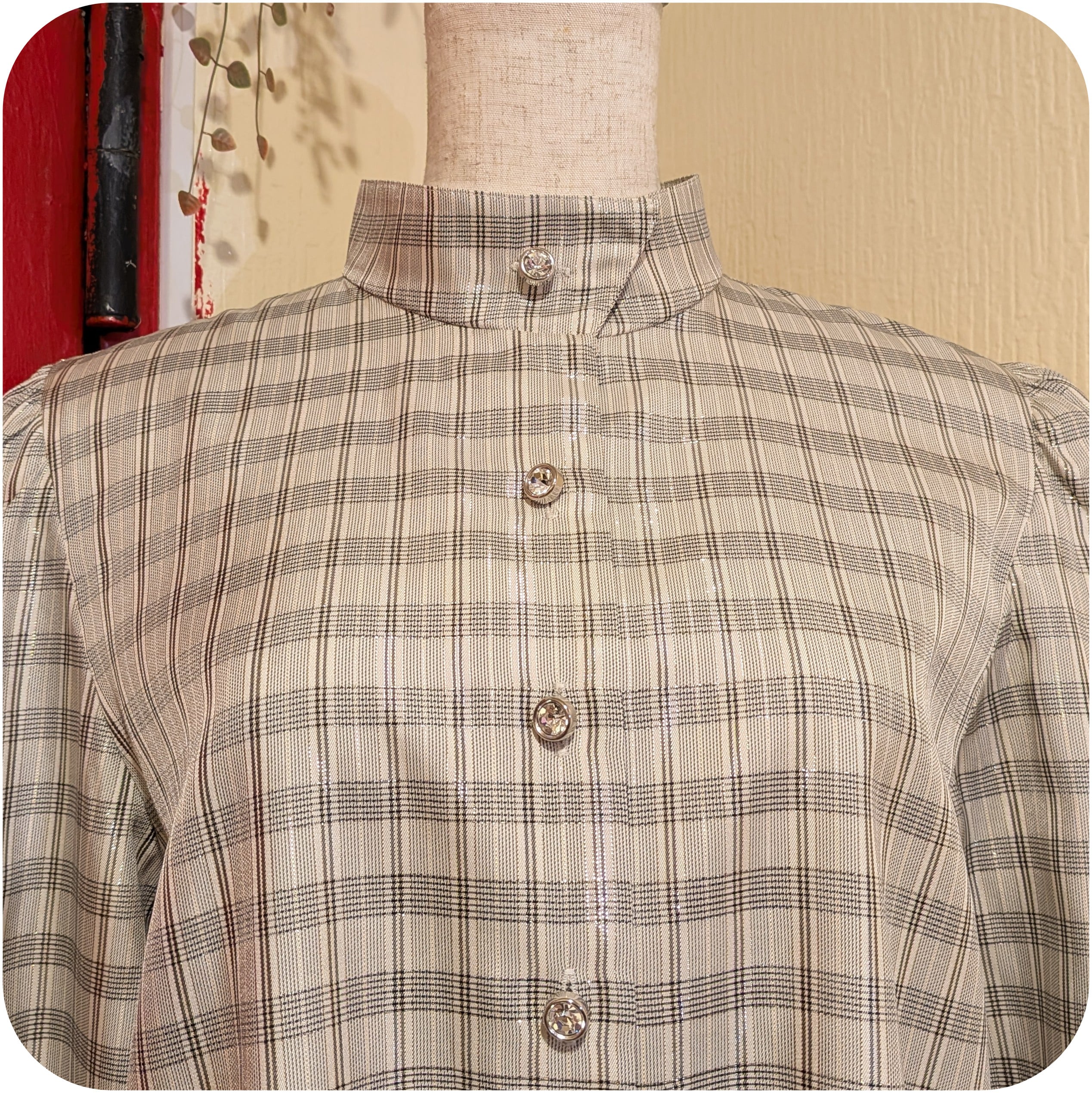 エレガントなホワイト×ブラック×ゴールドのチェック柄ブラウスです。