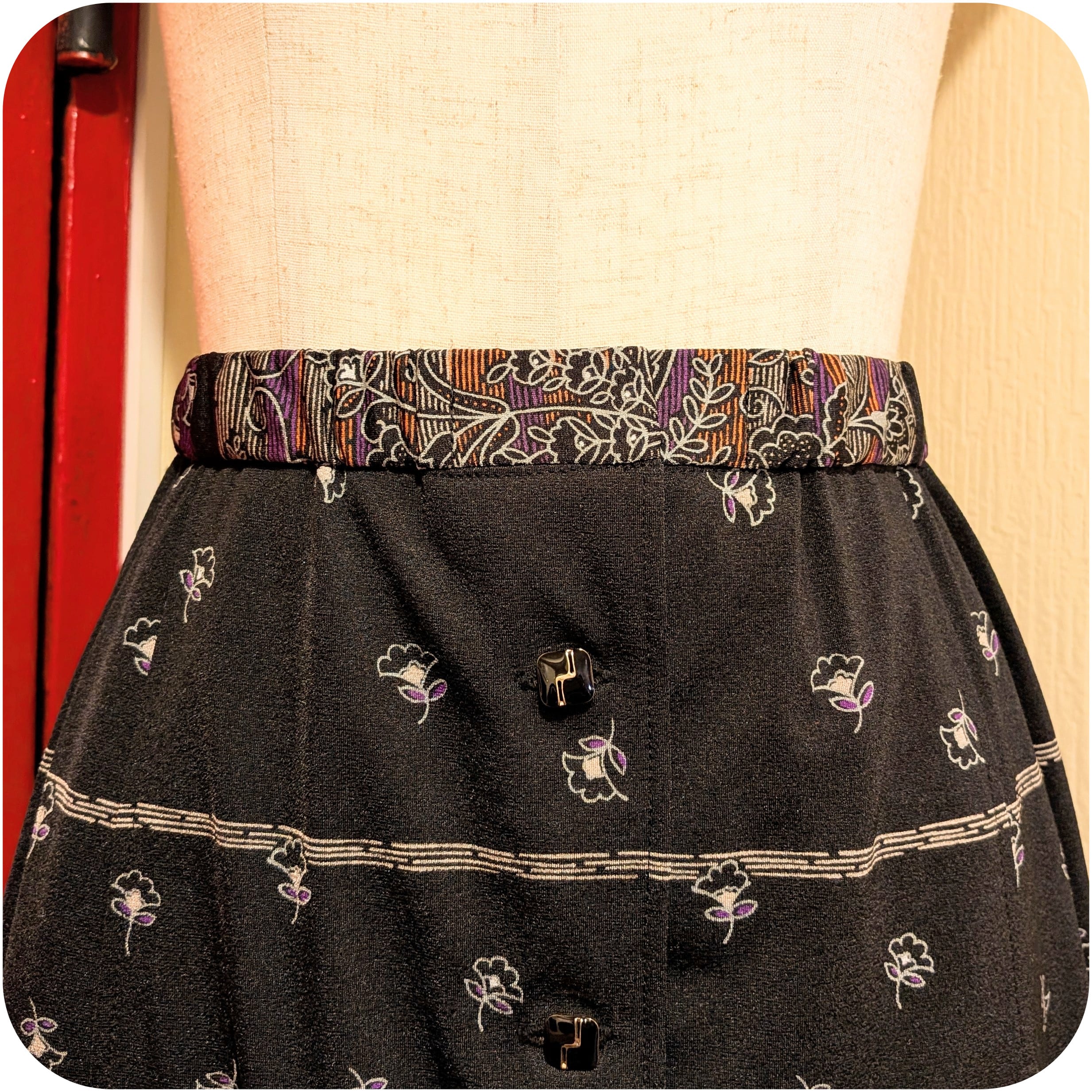 昭和レトロなブラック×オレンジ×ホワイトのフラワーパネル柄スカート