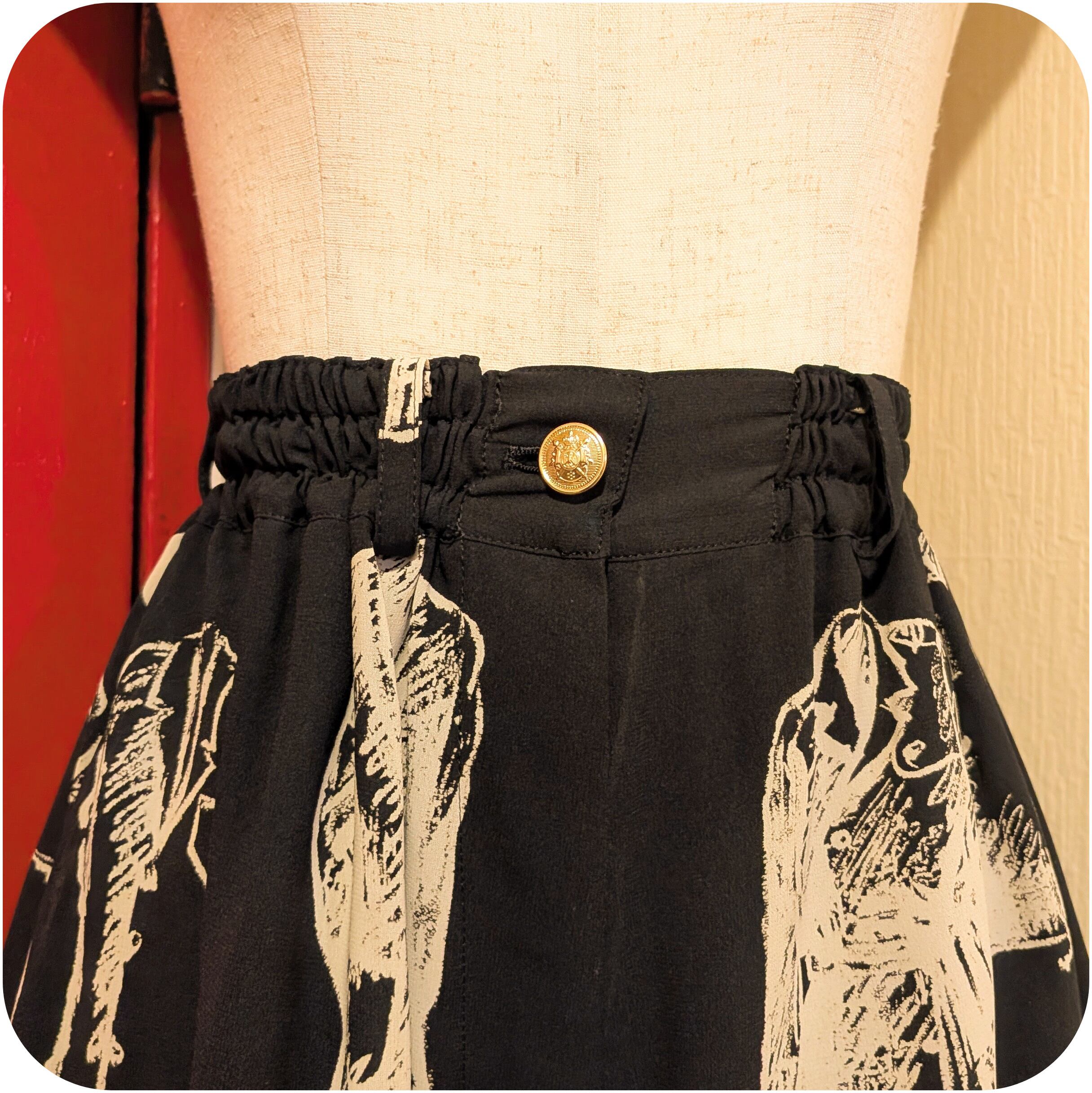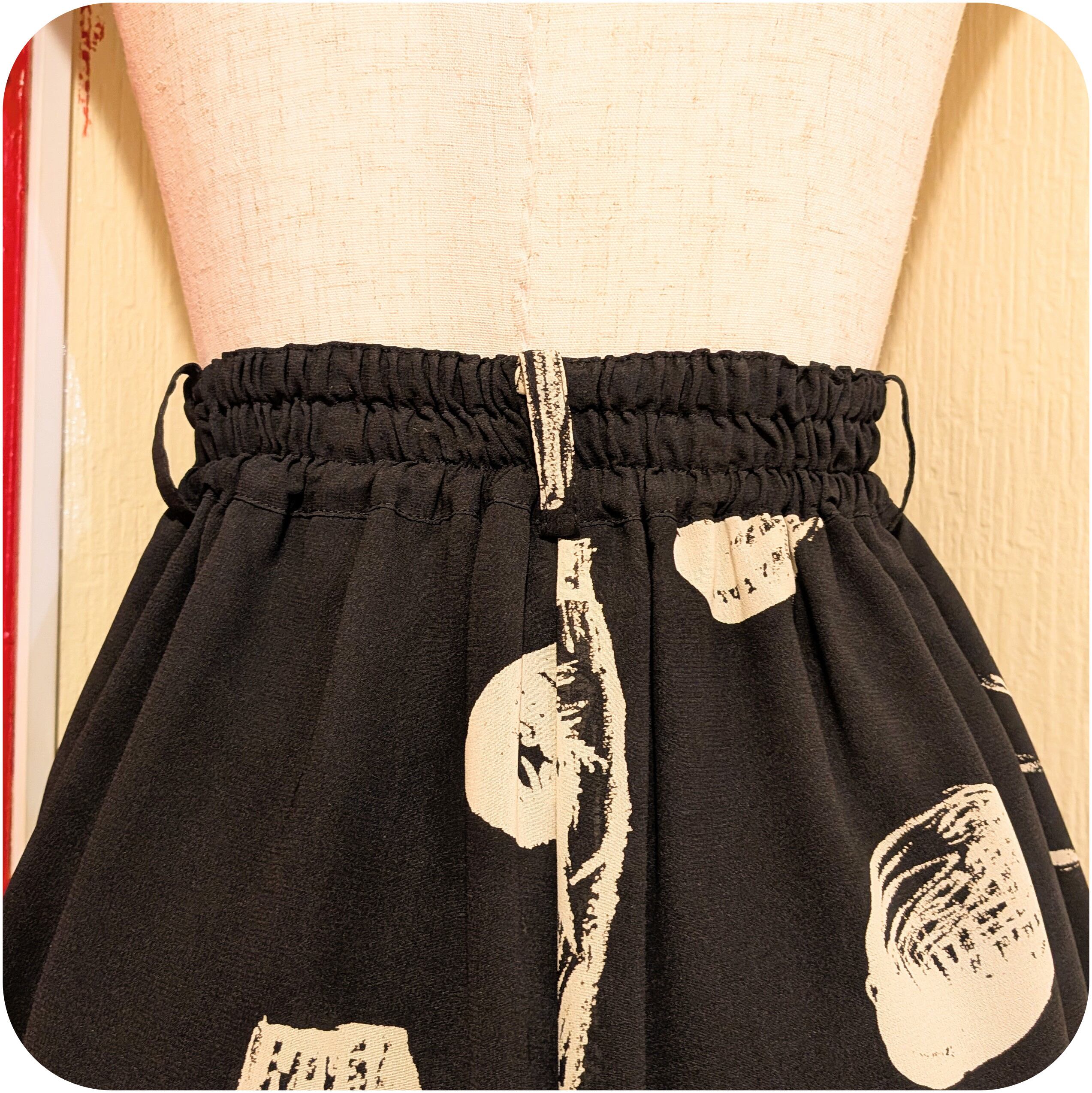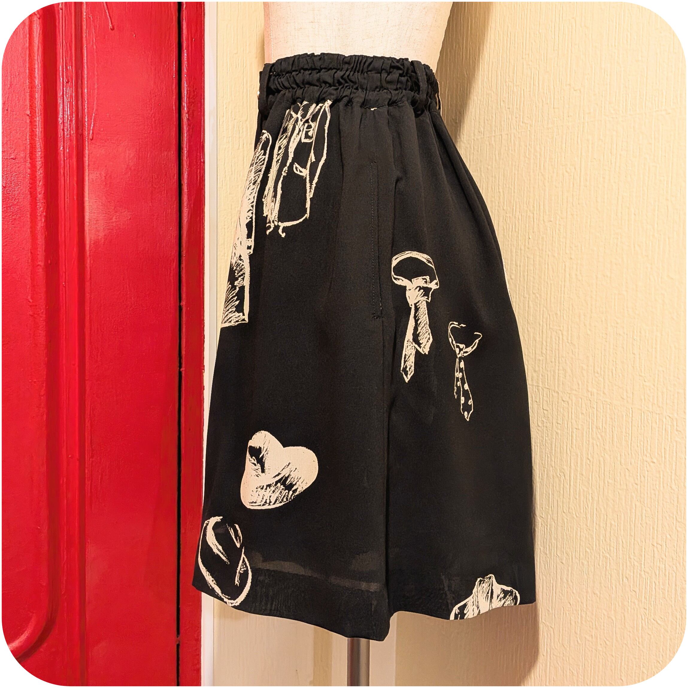 モードなブラック×アイボリーのワードローブ柄キュロットです。