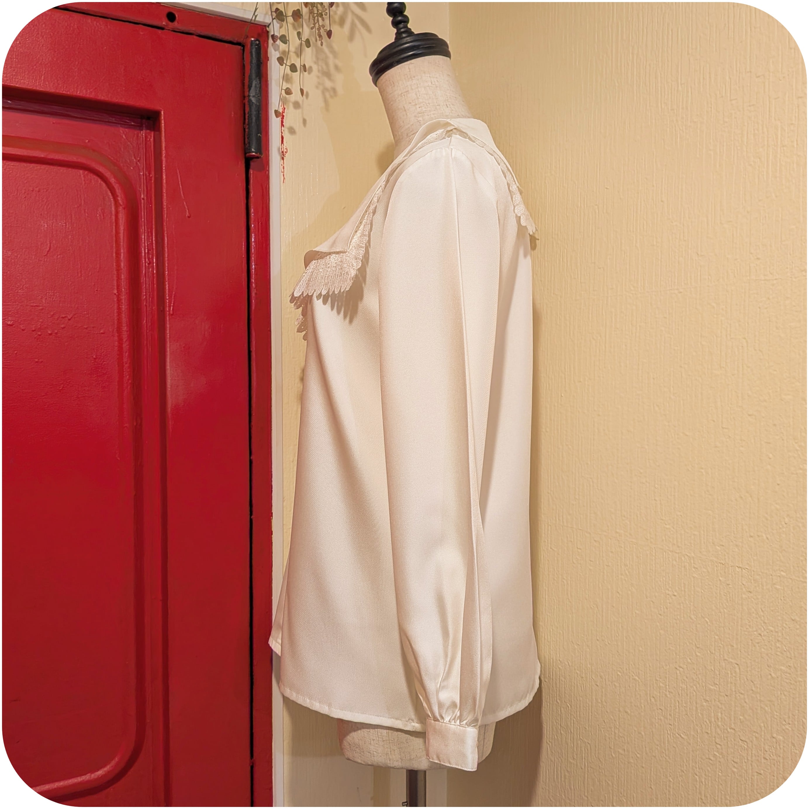 エレガントなオフホワイトのレースカラーデザインブラウスです。