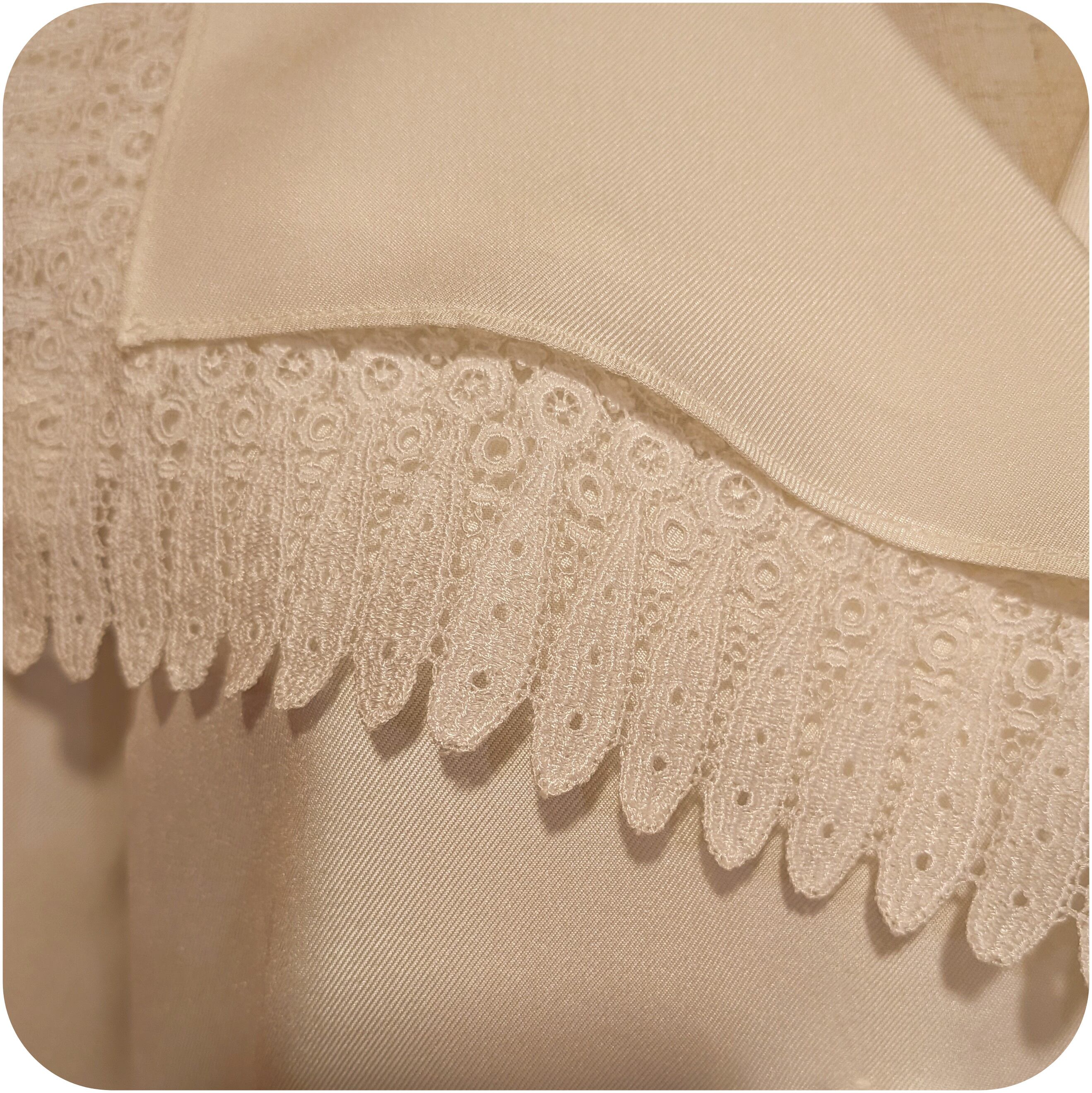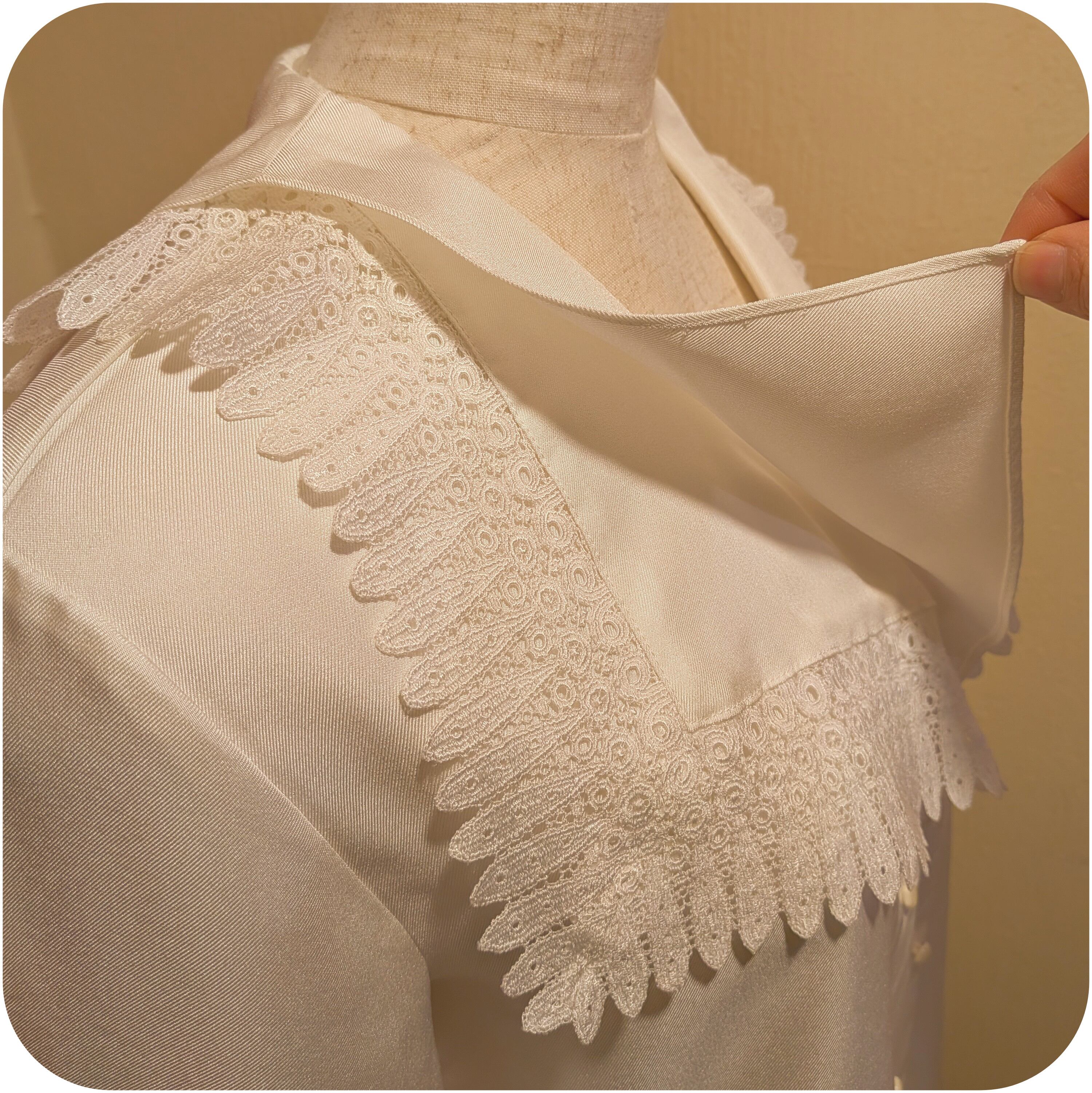 エレガントなオフホワイトのレースカラーデザインブラウス