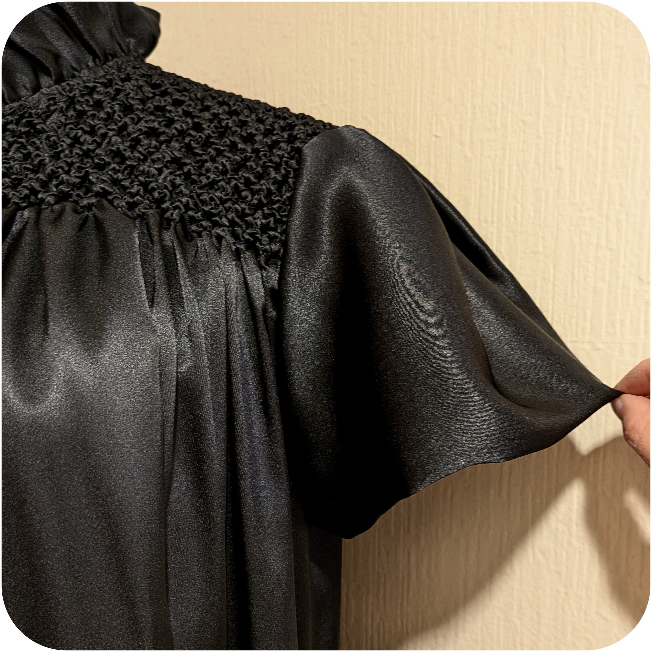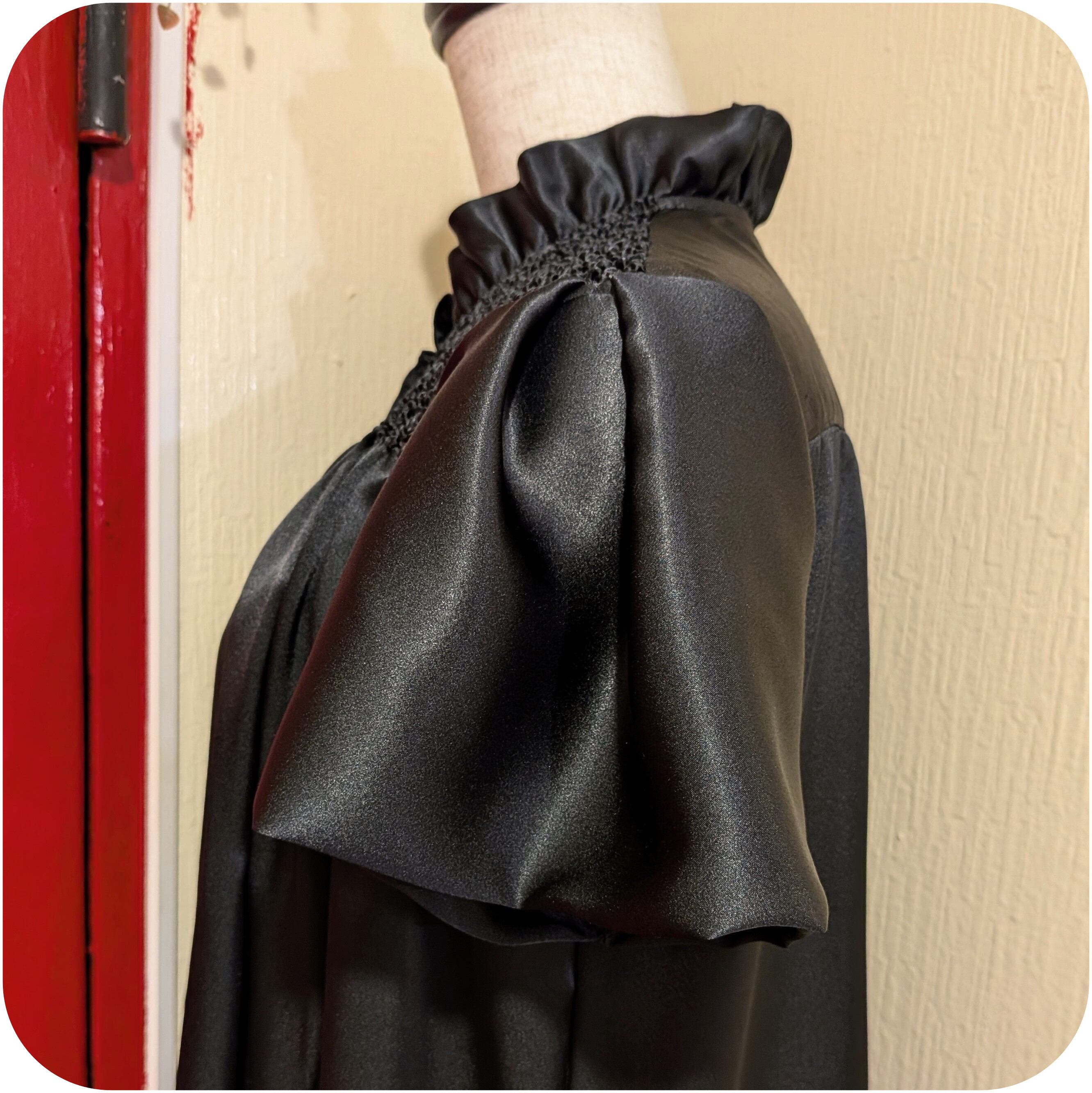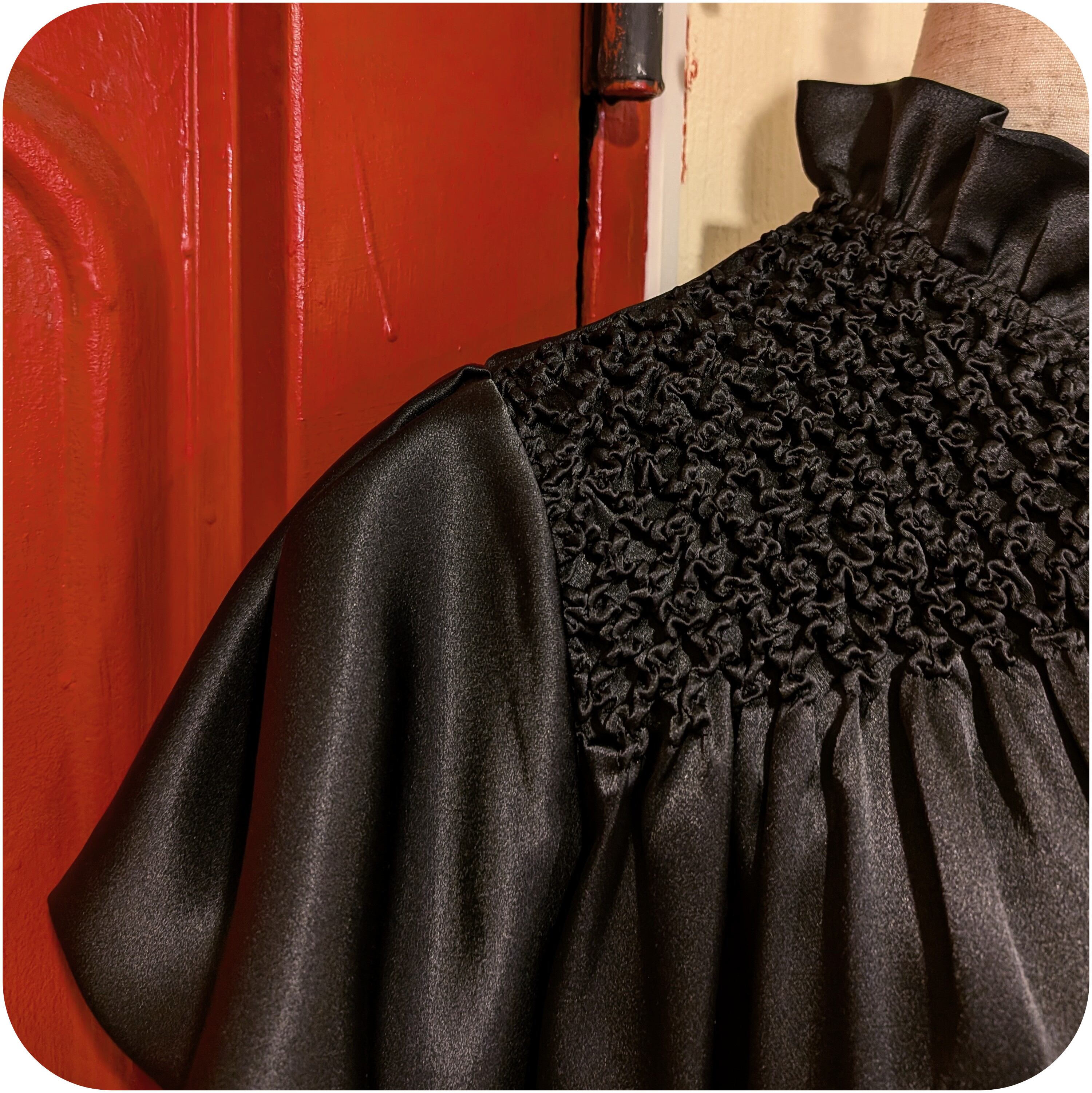 フロントにあしらわれたゴージャスな飾り縫いと、ふんわりとしたほどよいサイズ感のシルエットがとっても素敵。