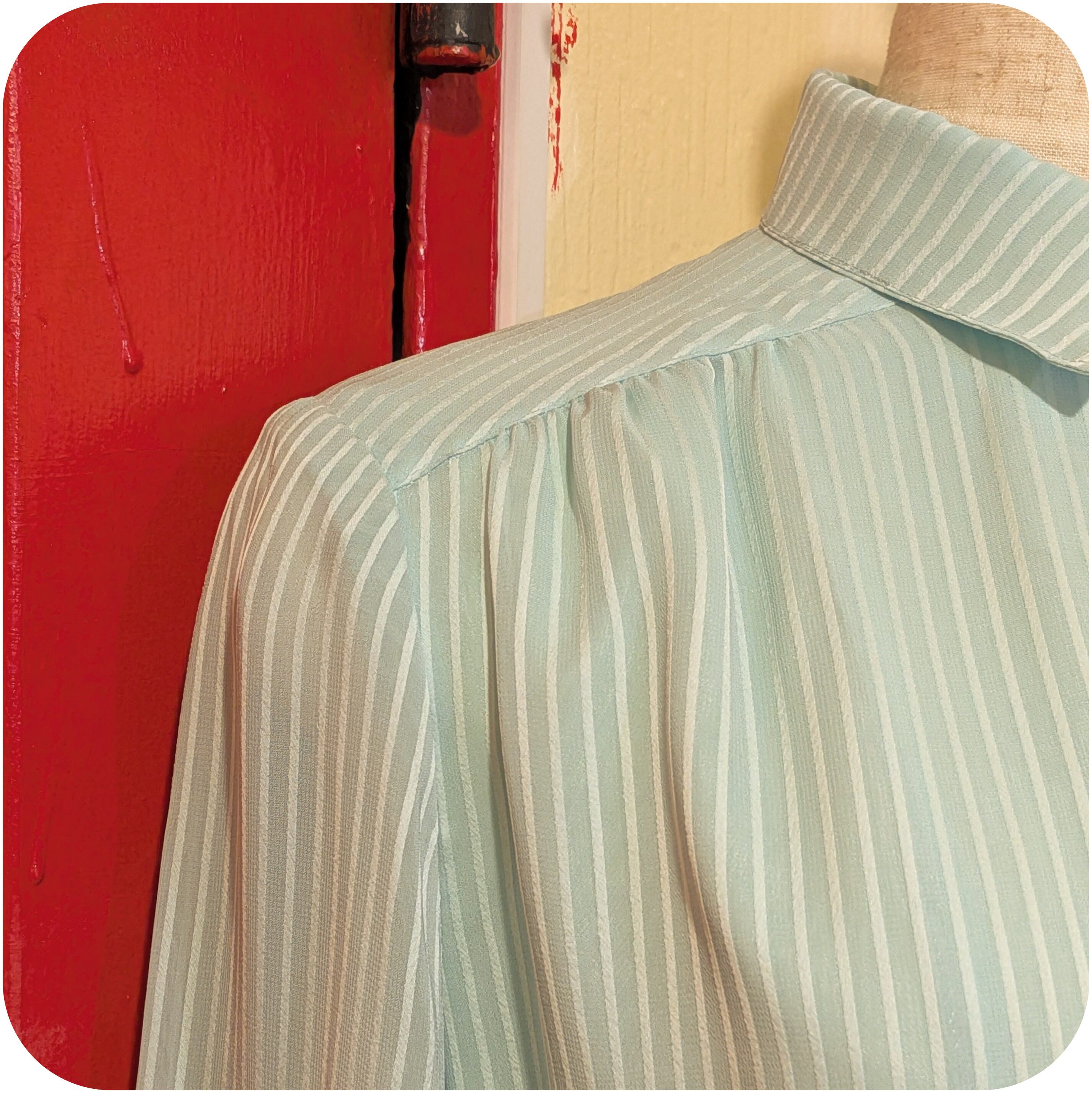 古着ならではのユニークなパネル柄と、歩くたび美しく揺れるプリーツスカートがとっても素敵。
