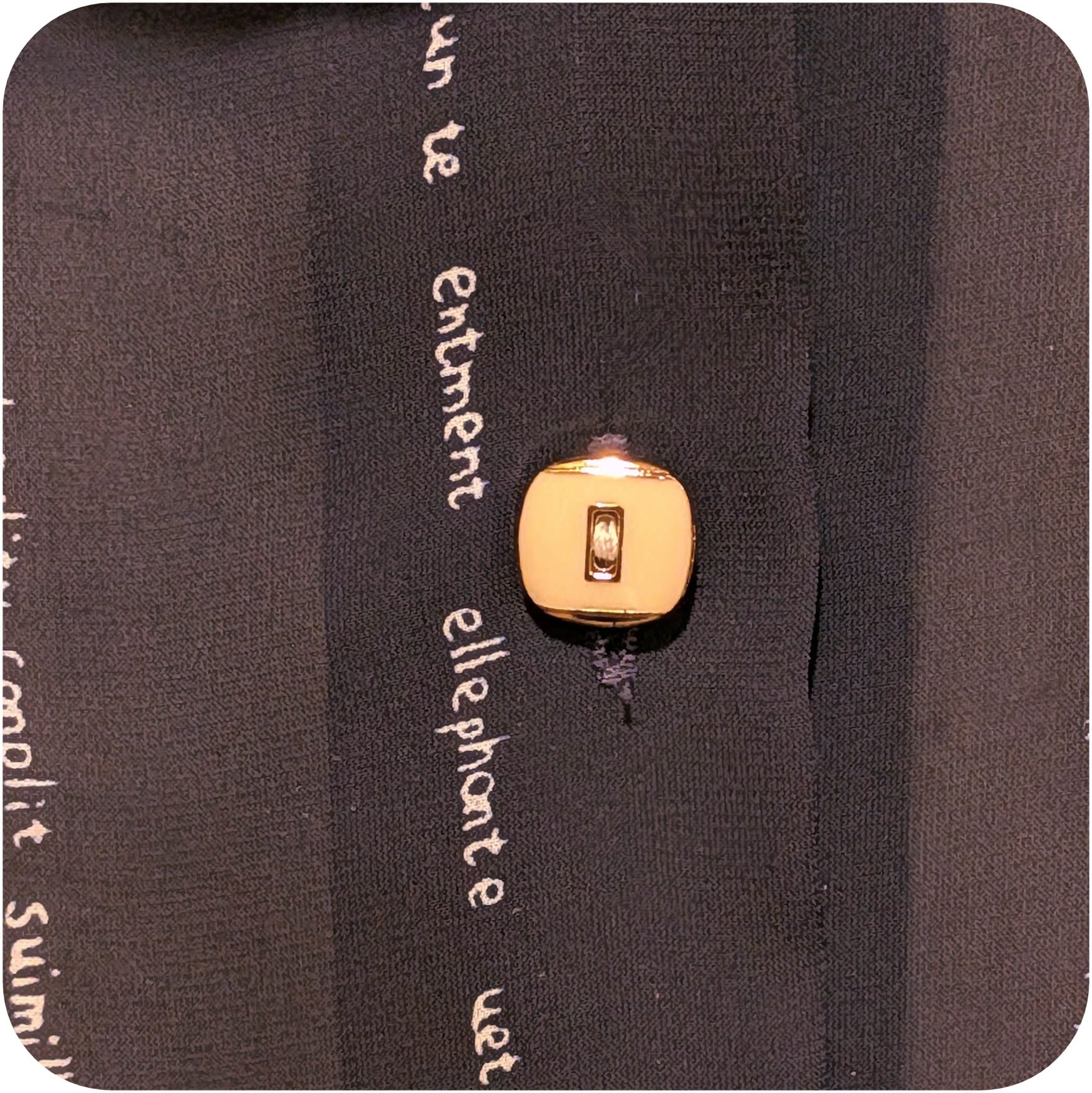 古着ならではのユニークなプリント柄と、レトロなスクエアモチーフボタンがとっても素敵。