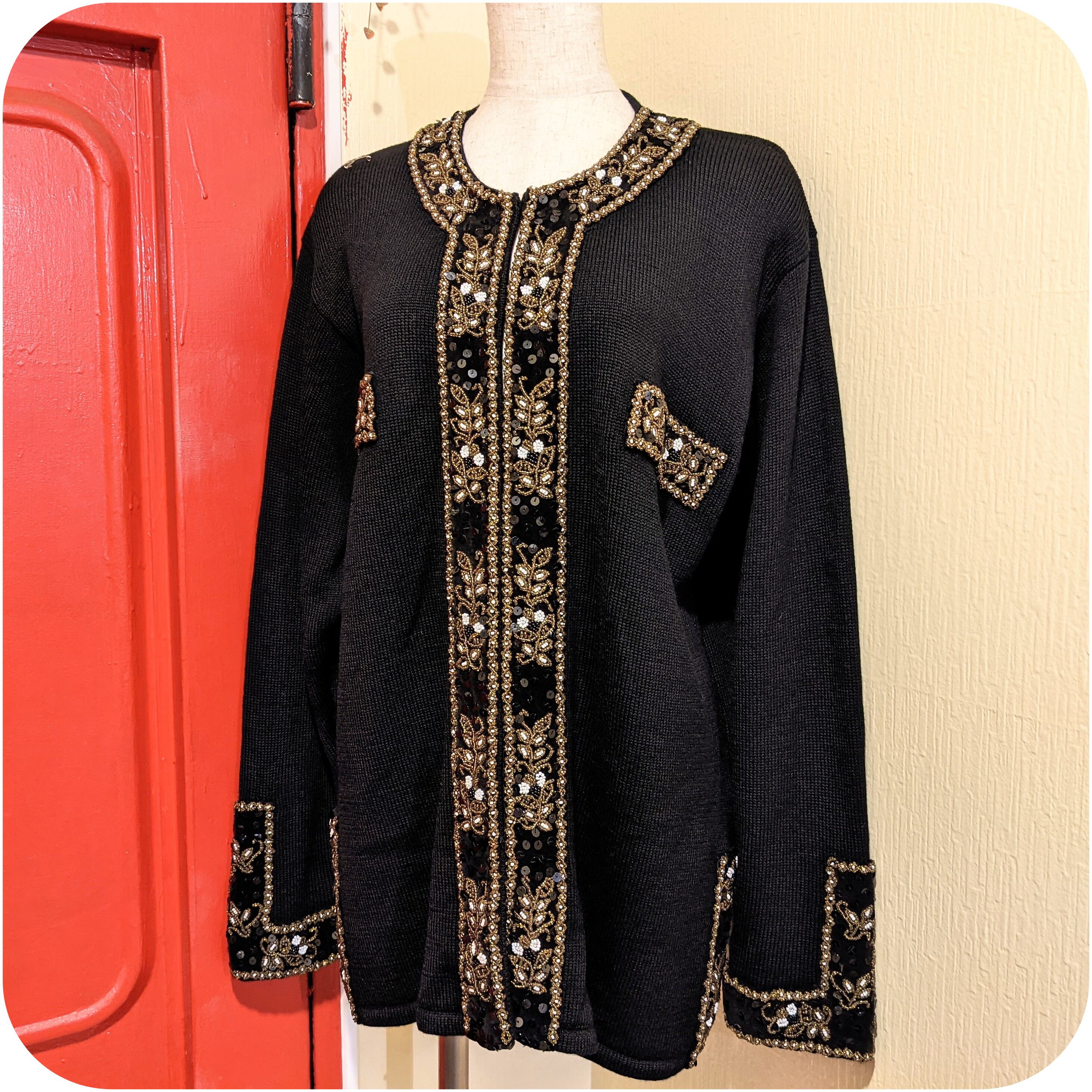 エレガントなビジュー刺繍のロングニットカーディガンです。