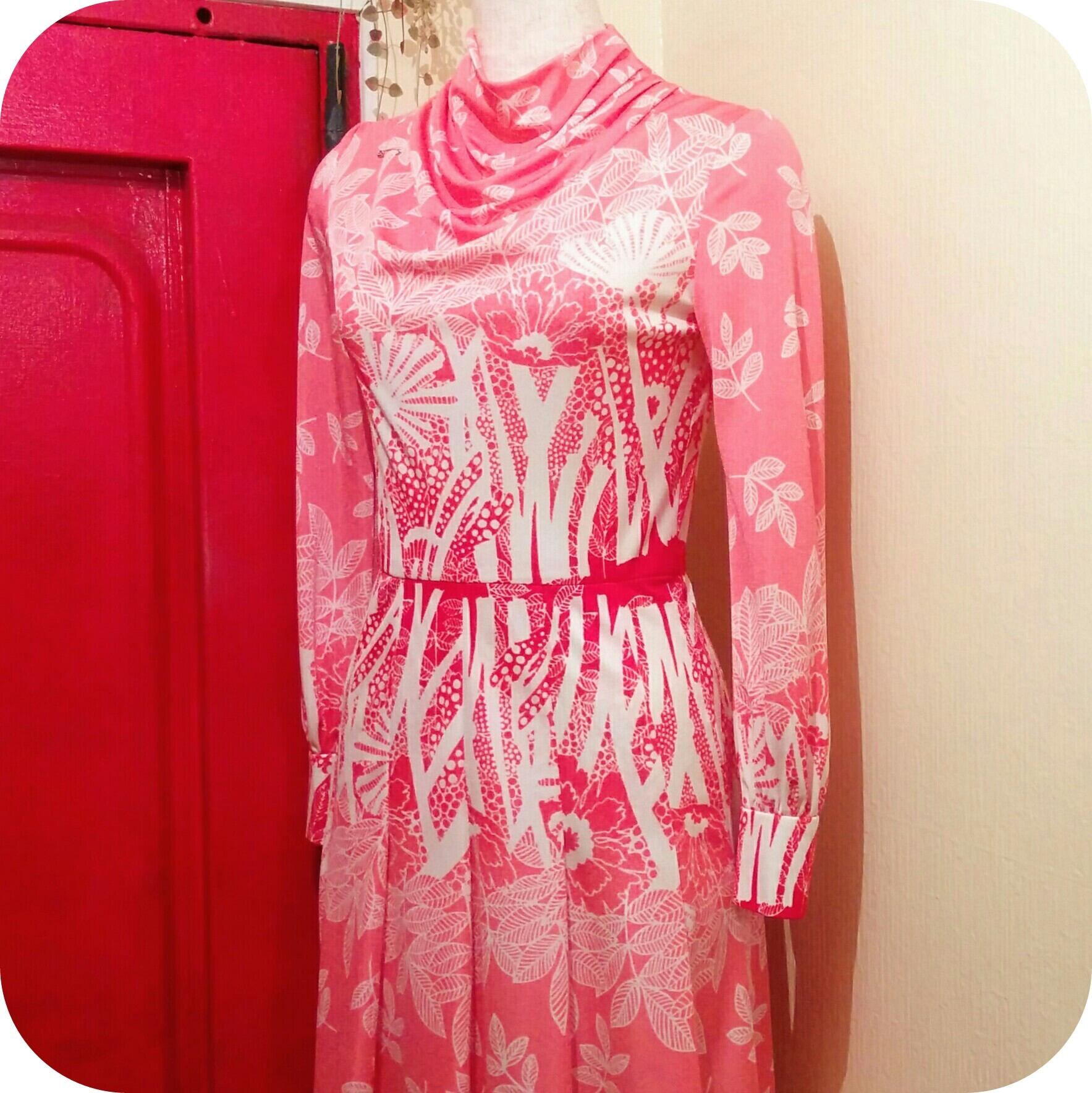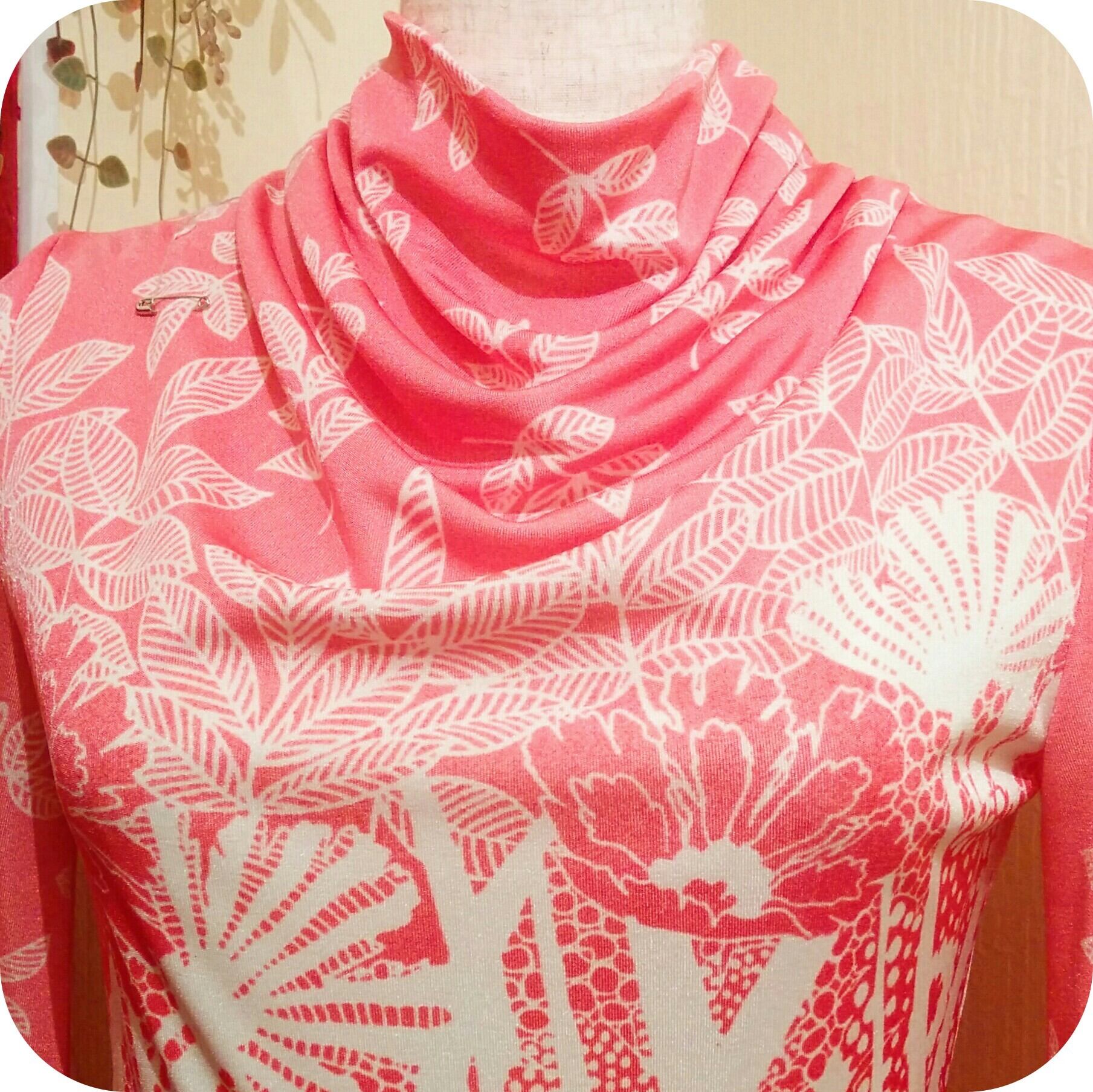 クラシカルなコーラルピンクのドレープネックワンピースです。