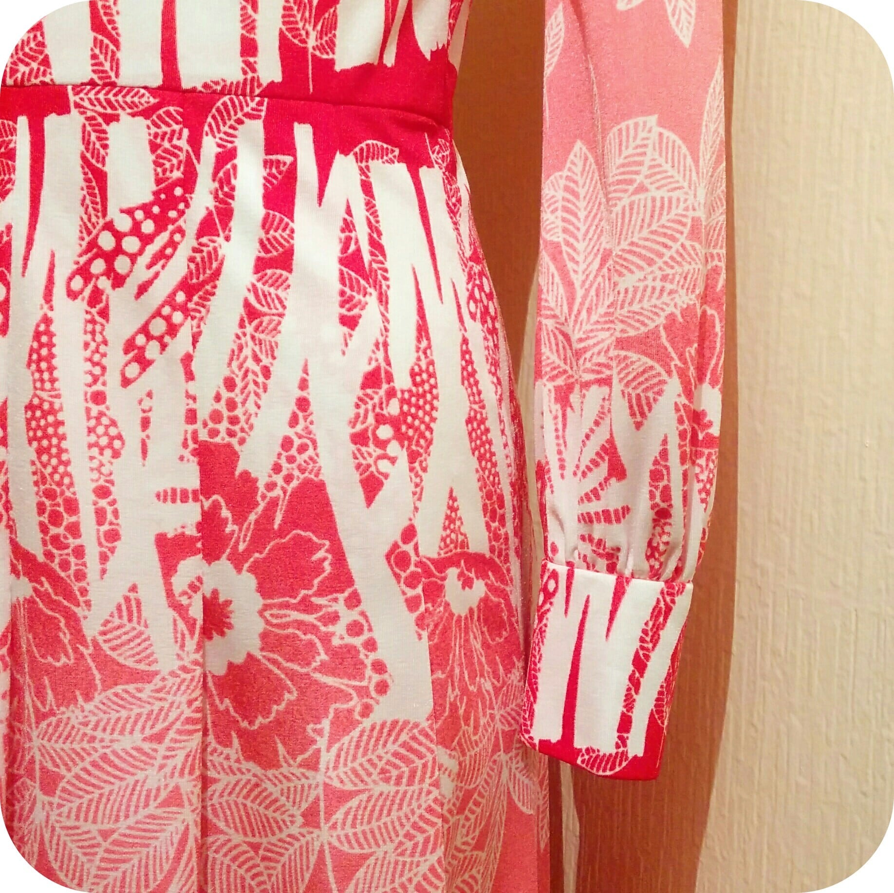 コーラルピンク×レッドのグラデーションになった花柄がとっても素敵。