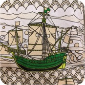 レトロなベージュ×グリーンのセーリングボート柄ブラウスです。