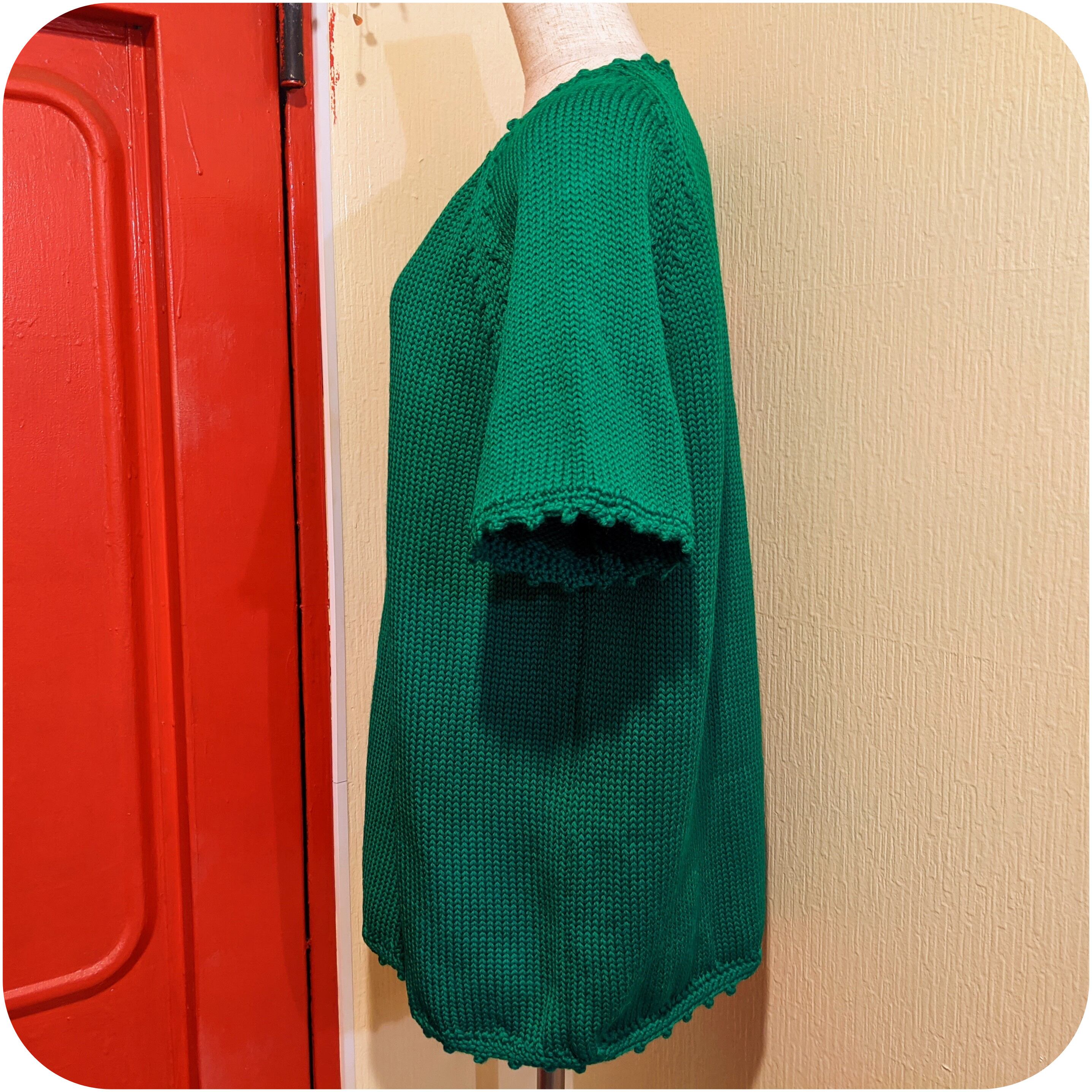 サイケなフラワー刺繍入りグリーンニットです。