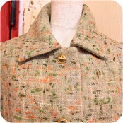 淡い色味のライトグリーンのウール地にほどこされたオレンジやブルーの鮮やかなカラーネップがとっても素敵。