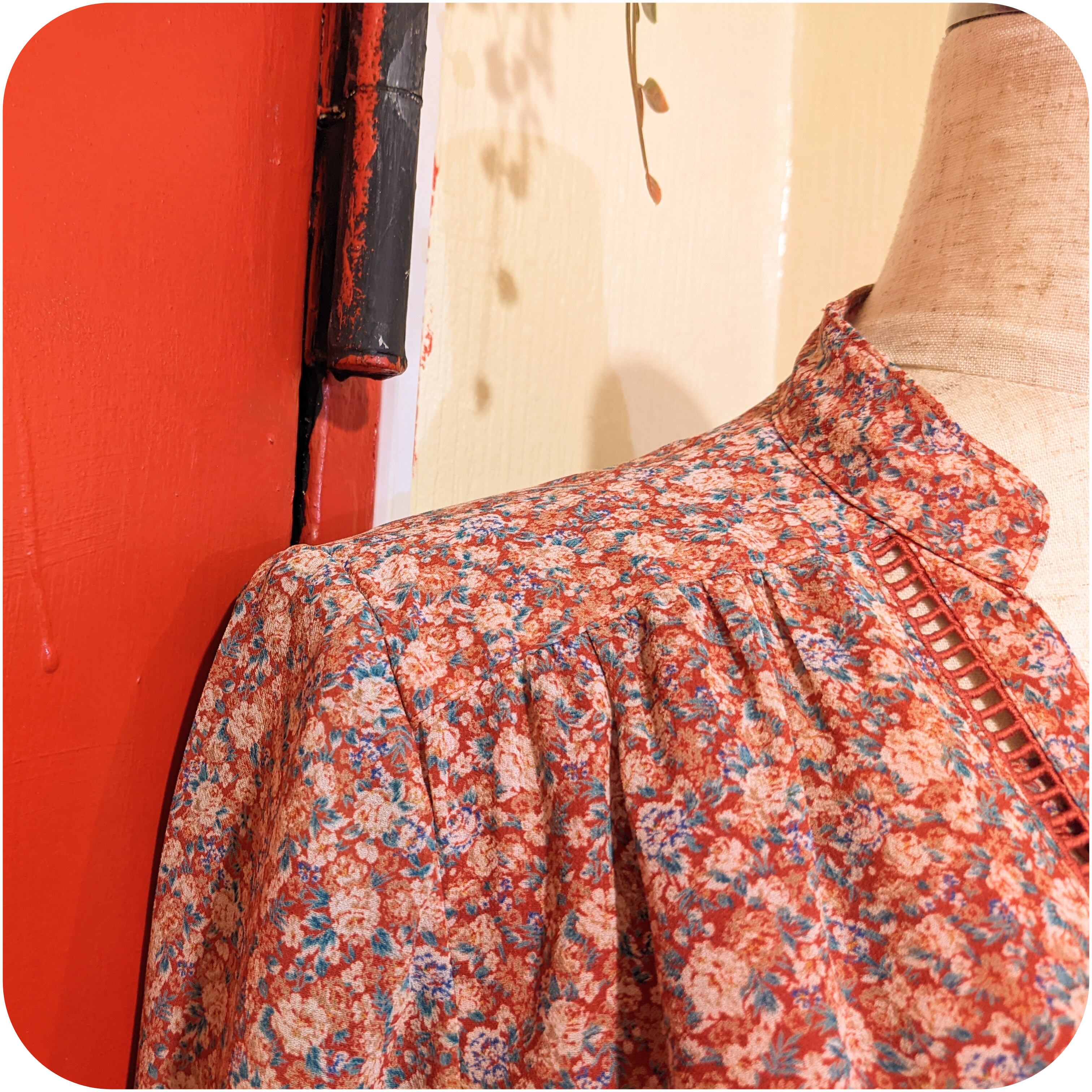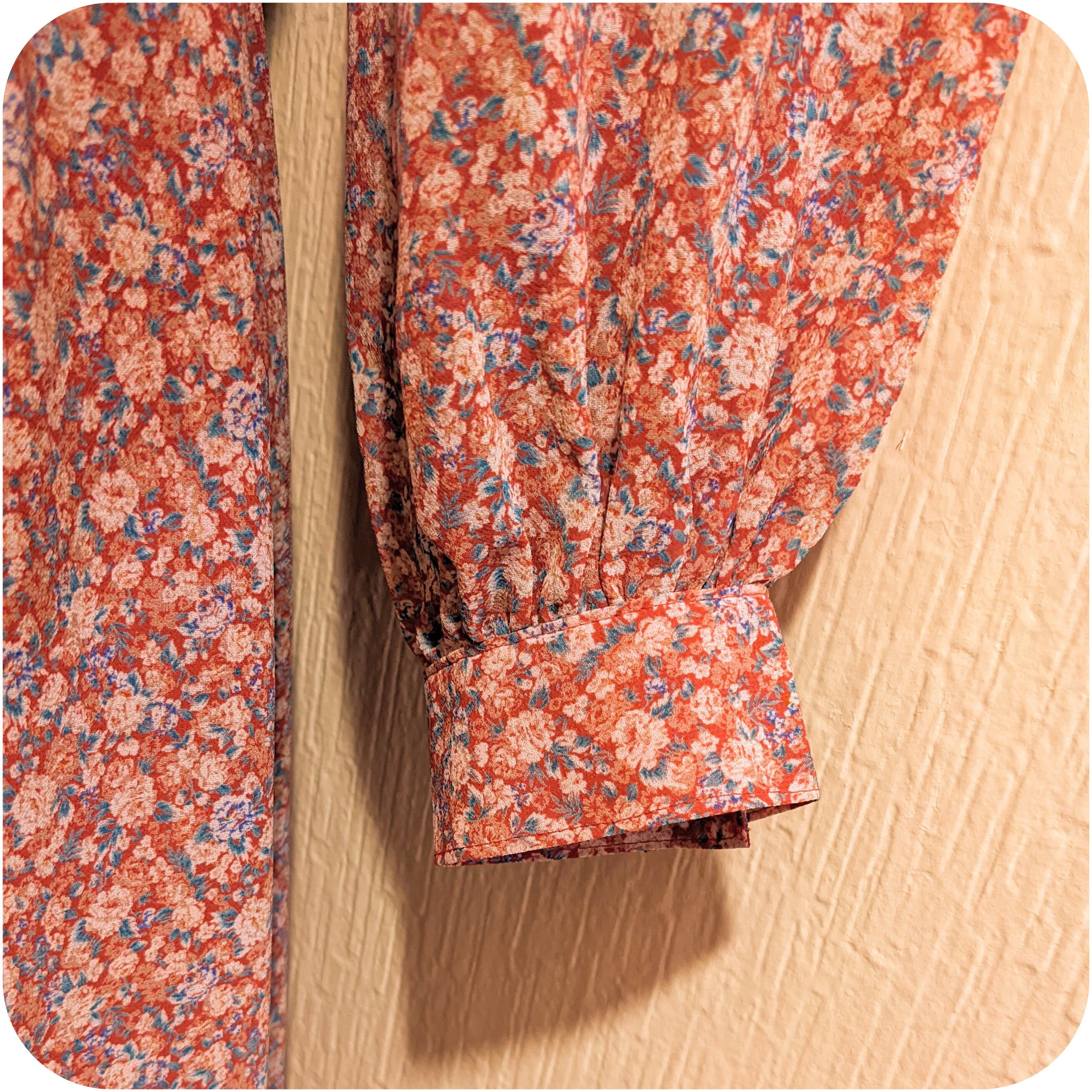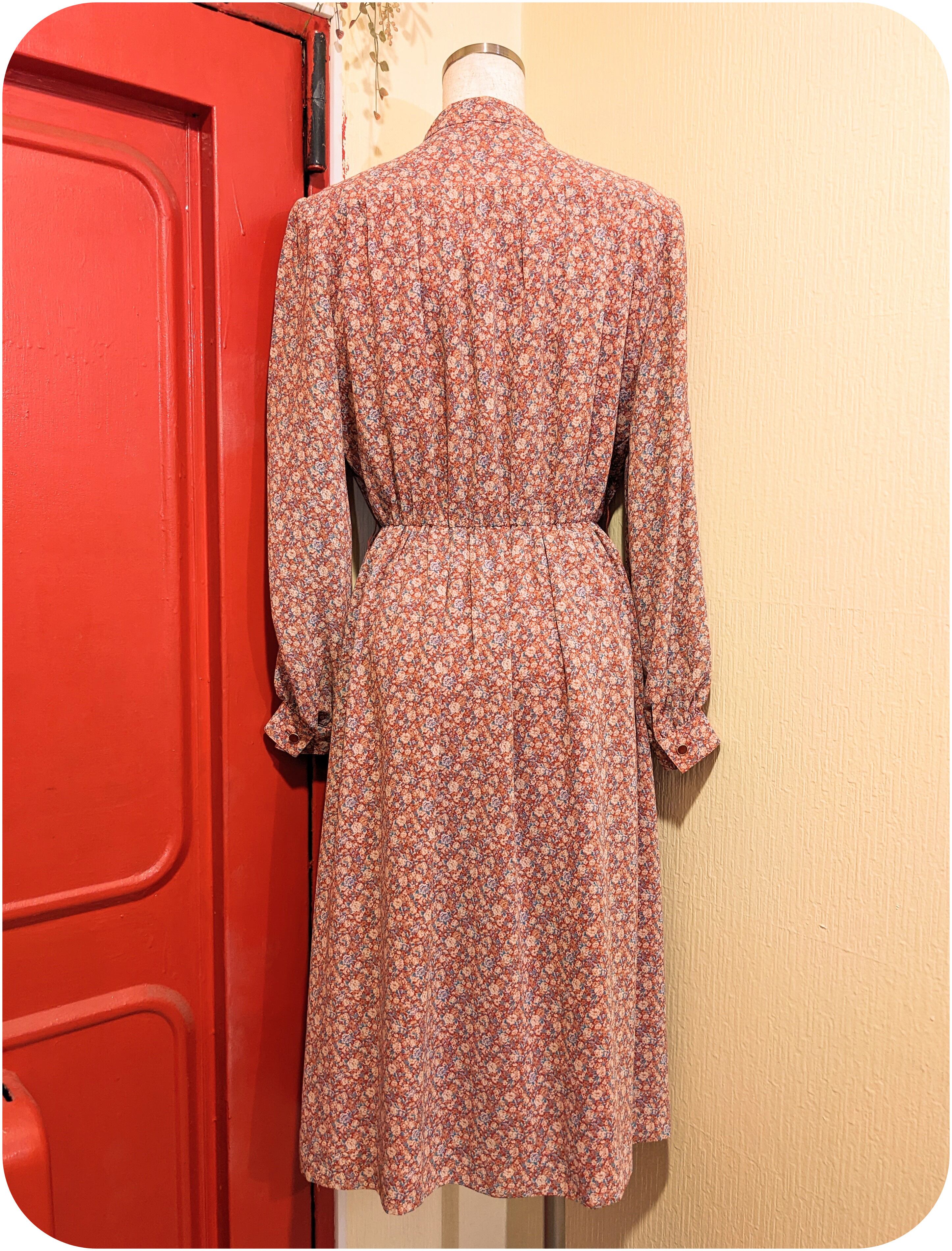 クラシカルなレッド×ホワイト×ブルーグリーンのフラワープリントワンピースです。
