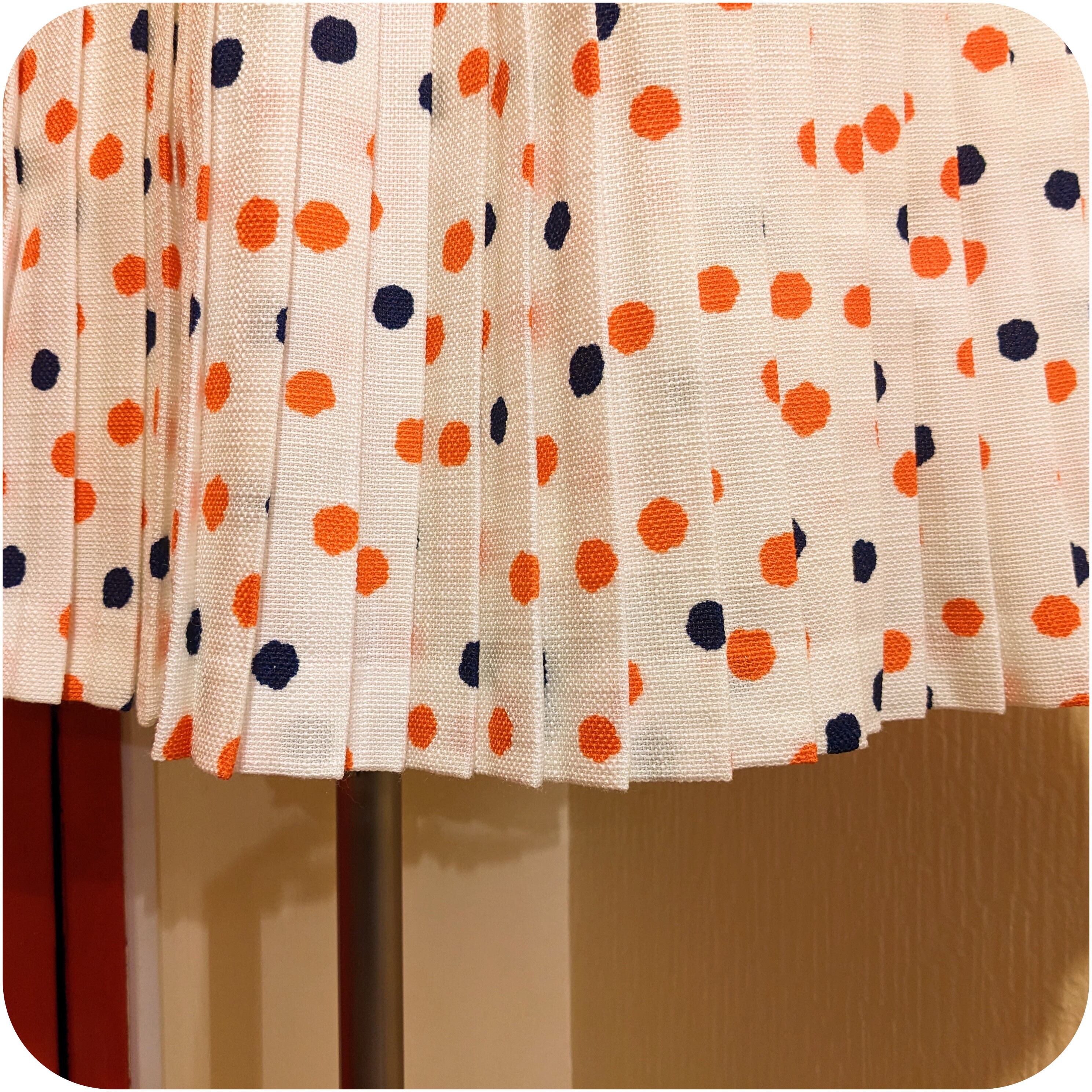 まるで手描きで描かれたようなユニークなドット柄と、やや厚手のボリューム感のあるプリーツデザインがとっても素敵。