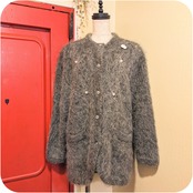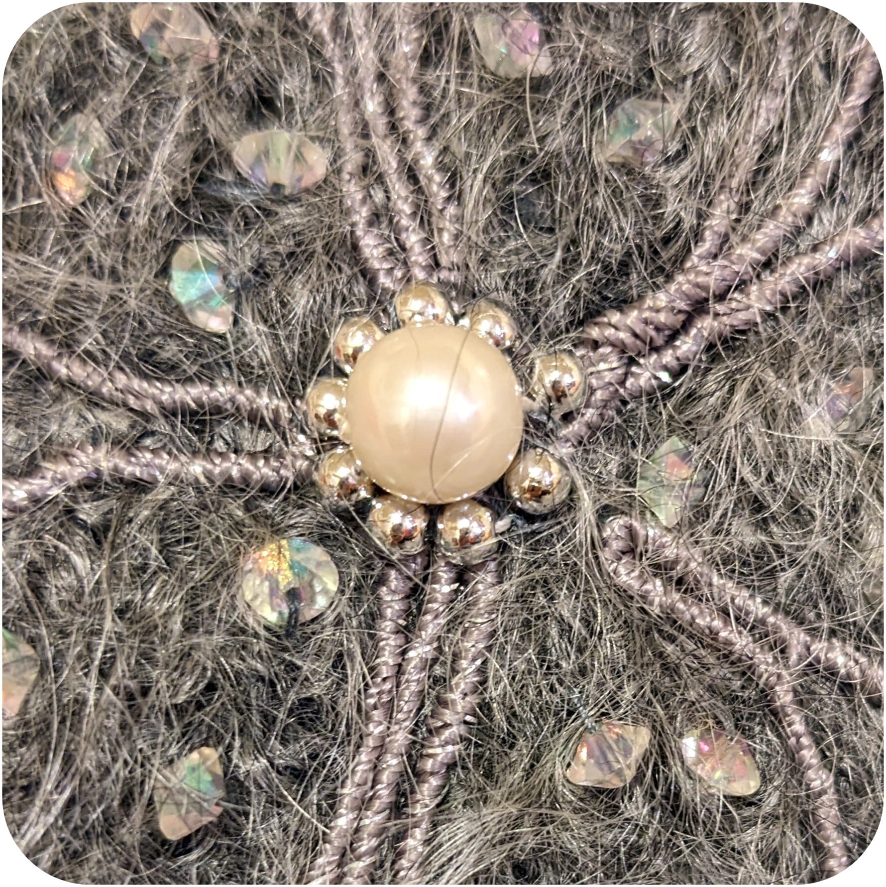 エレガントなライトグレーのビジュー刺繍入りシャギーカーディガンです。