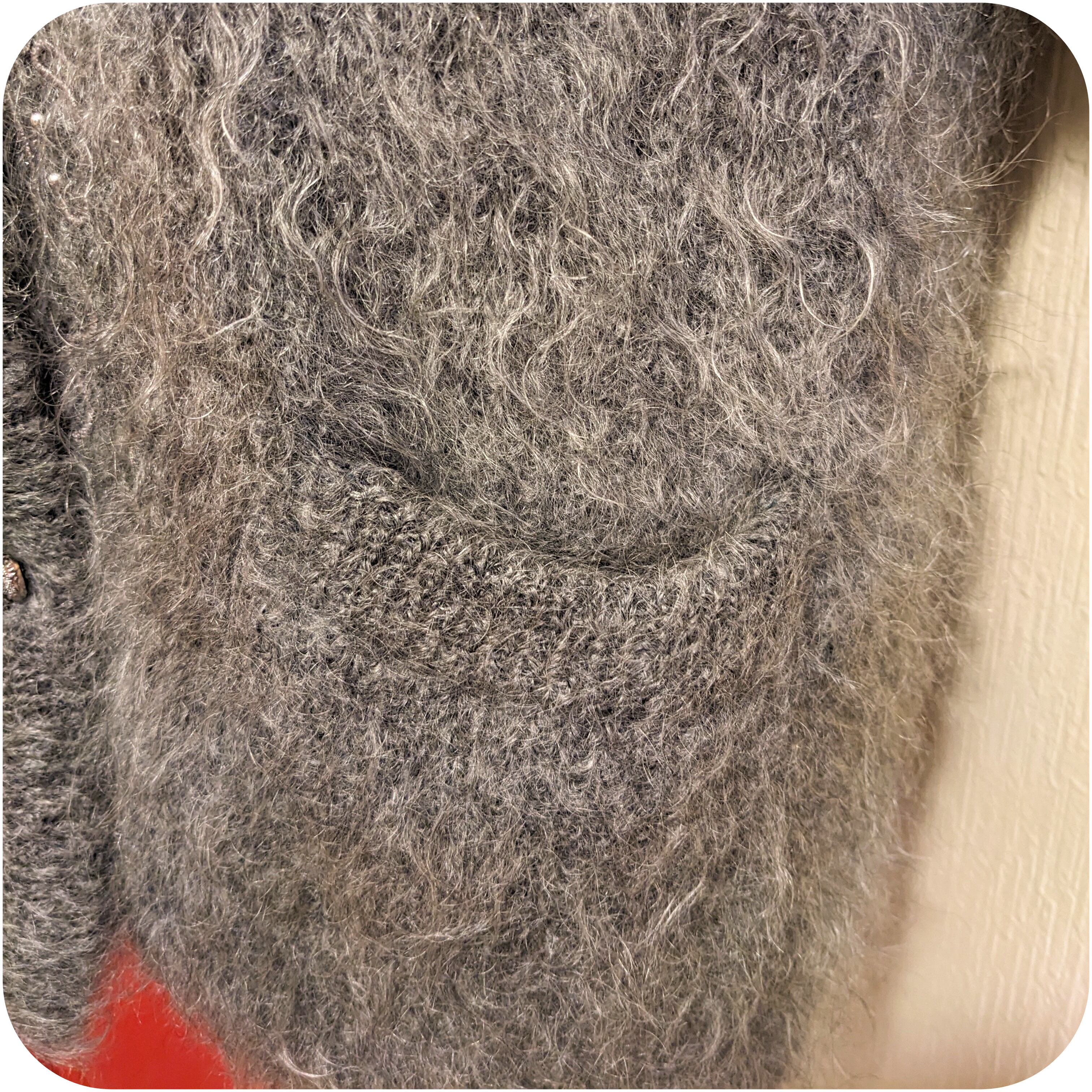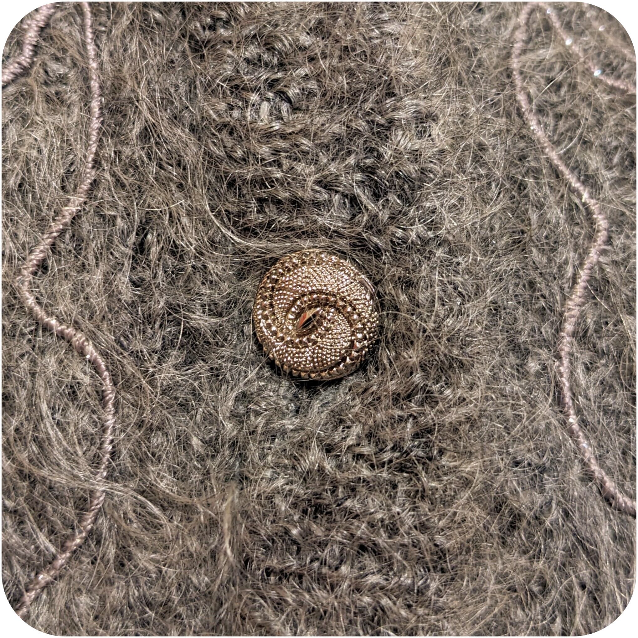 エレガントなライトグレーのビジュー刺繍入りシャギーカーディガン