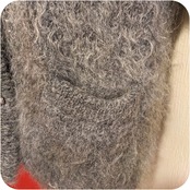 フロントにあしらわれたシャイニーなビジュー刺繍と、毛足の長いシャギー素材ならではのふんわりとした上品なシルエットがとっても素敵。